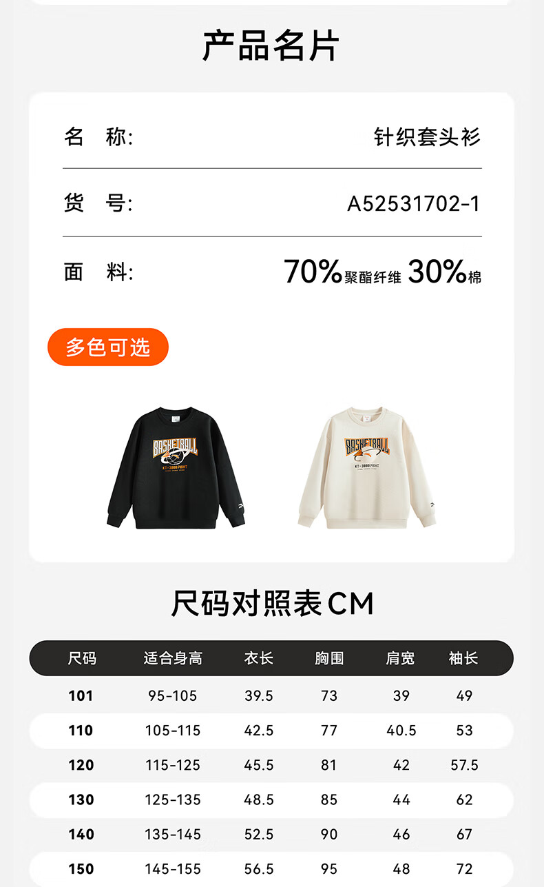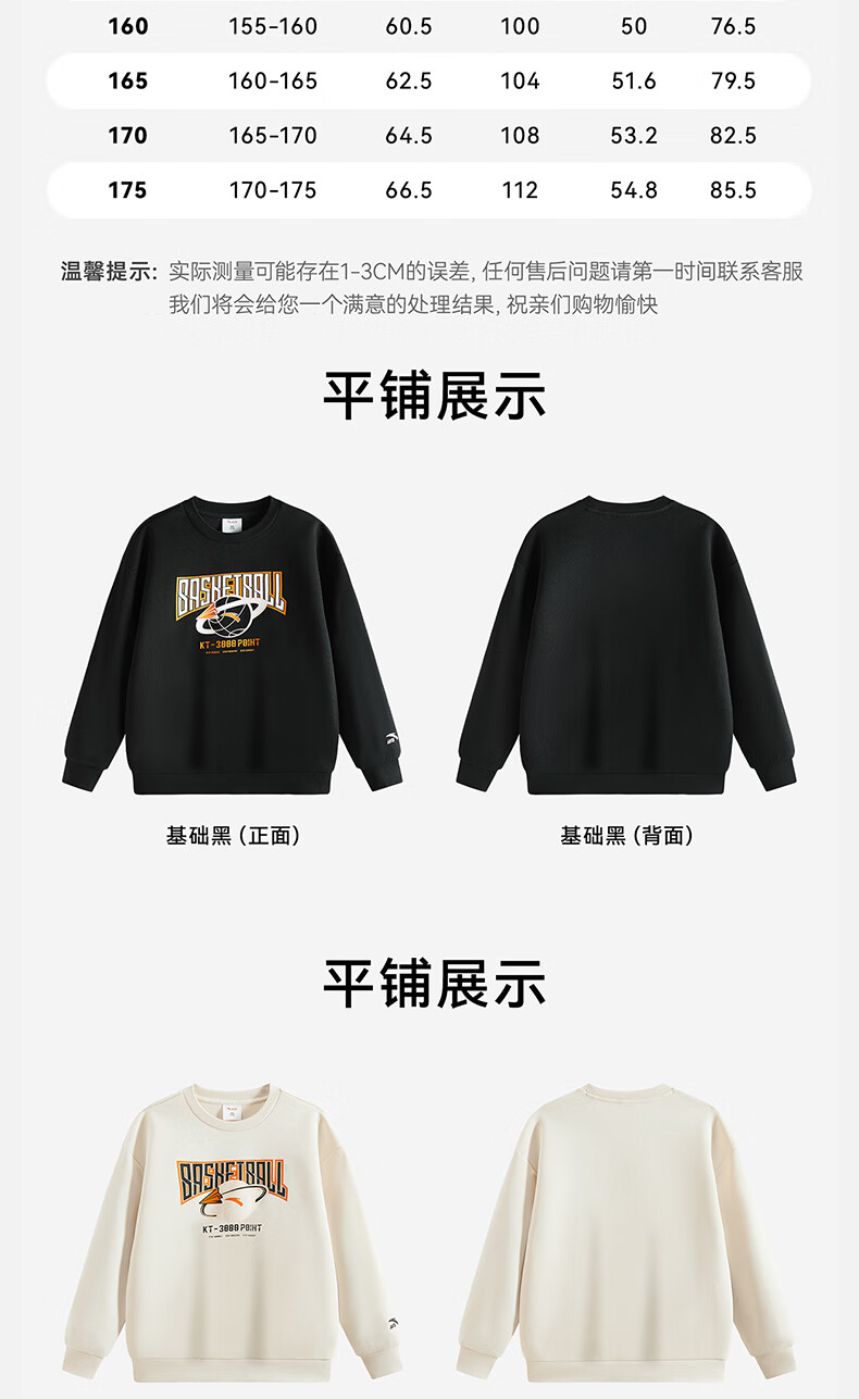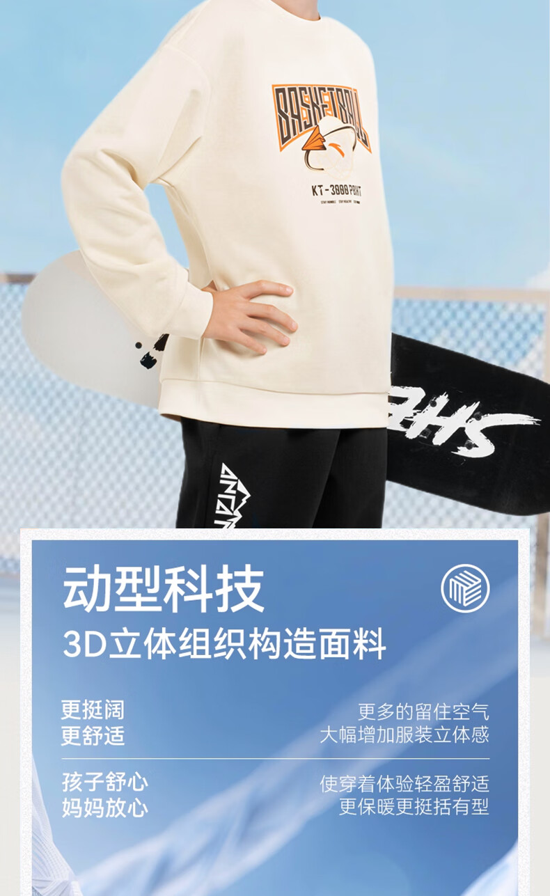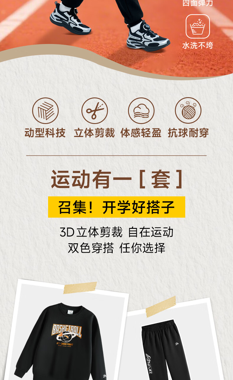 安踏儿童针织运动套装秋季男大童字母印花两件套中大童优可丝运动套装 基础黑【裤子优可丝】 165