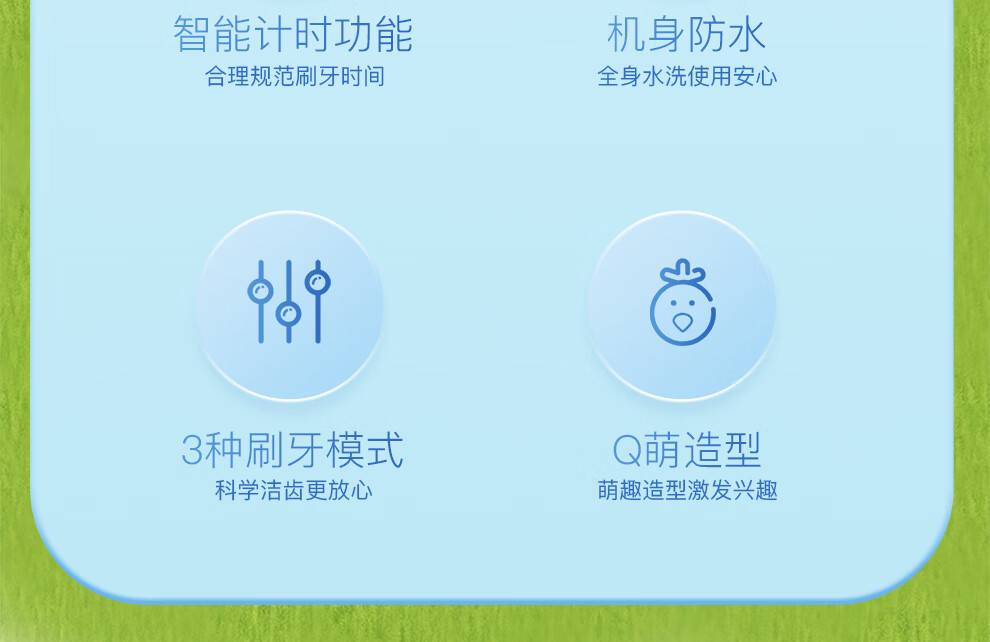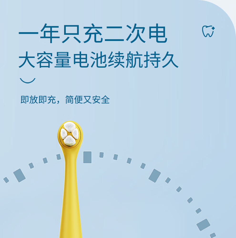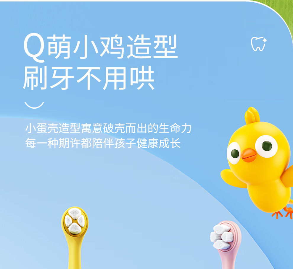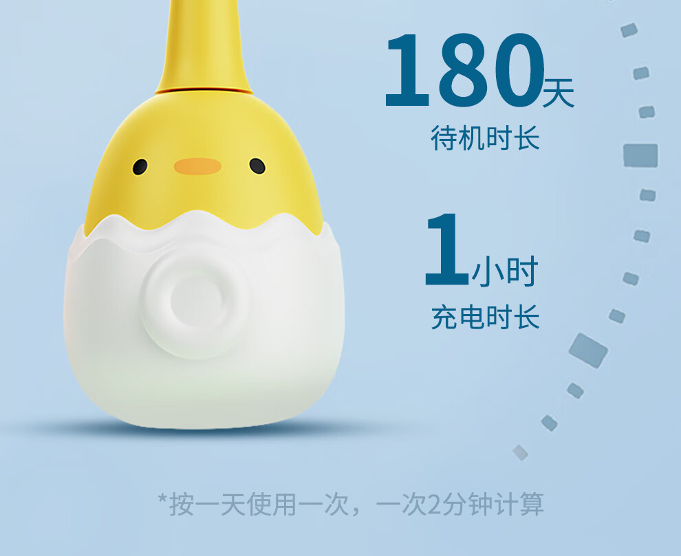 牙宜生儿童电动牙刷充电式三档智声波振动能防水硅胶自带软毛牙刷2只3-6-12岁宝宝萌趣动物中秋礼品礼盒 蓝色萌鸡C1(1大1小两只刷头)