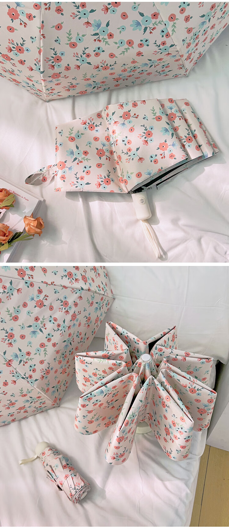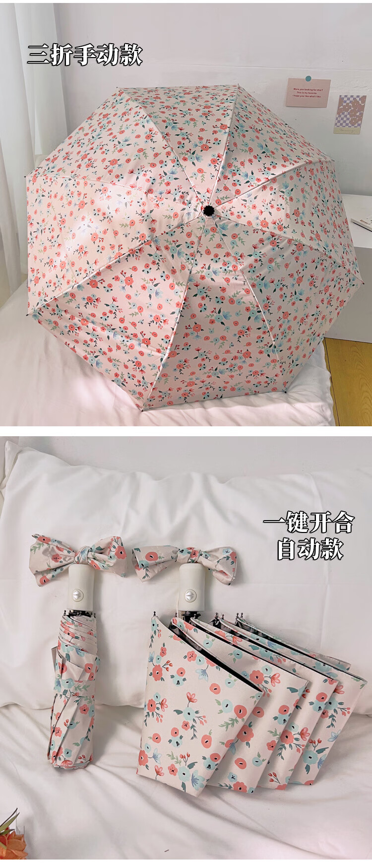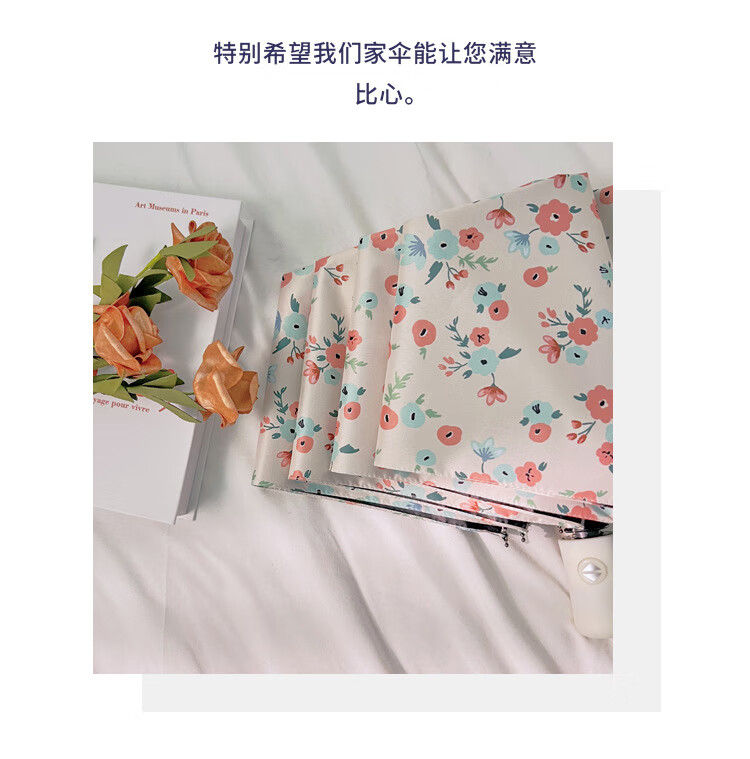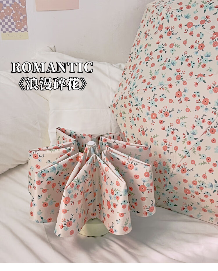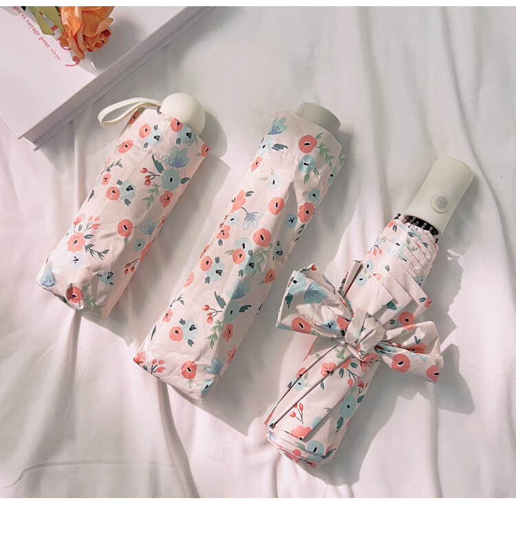 爱诺威【优选好物】清新碎花晴雨两用遮阳伞折叠自动雨伞女感防晒太阳 7骨银胶手动伞