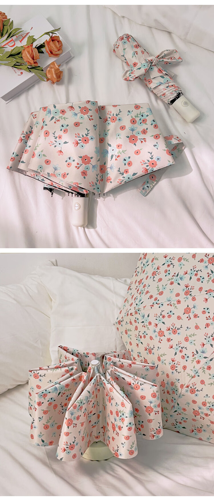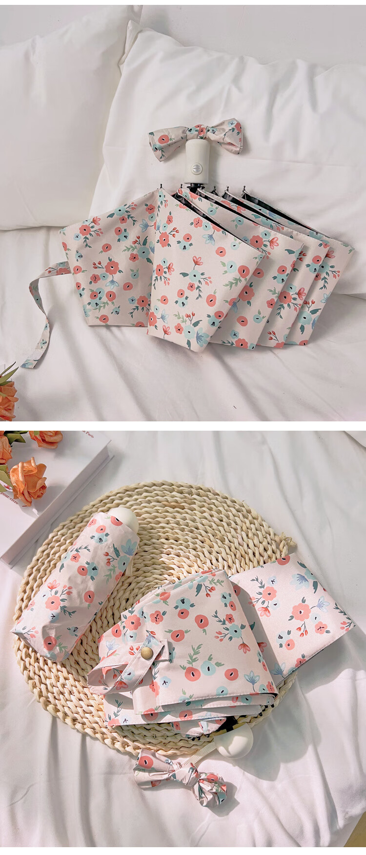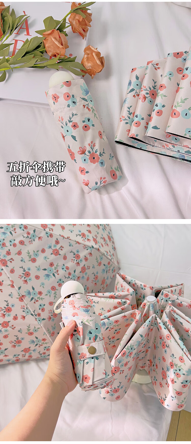 爱诺威【优选好物】清新碎花晴雨两用遮阳伞折叠自动雨伞女感防晒太阳 7骨银胶手动伞