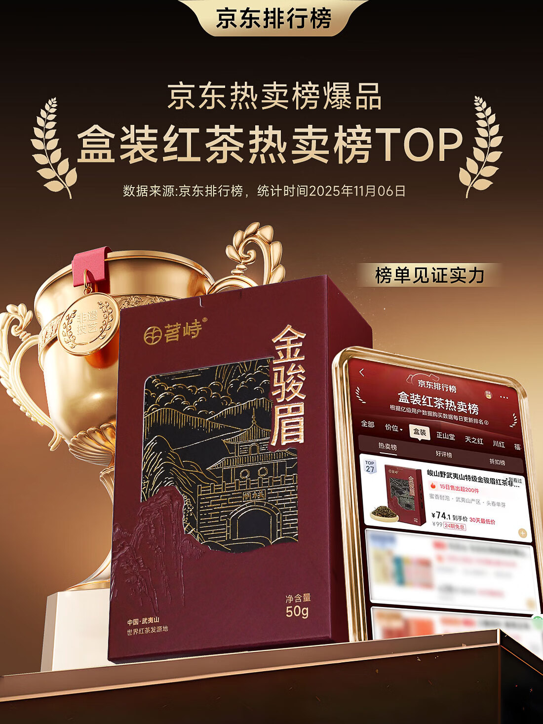 峻山野武夷山特级金骏眉红茶非遗技艺礼盒装自己喝茶叶50g*1盒蜜香送礼 武夷山特级金骏眉50g