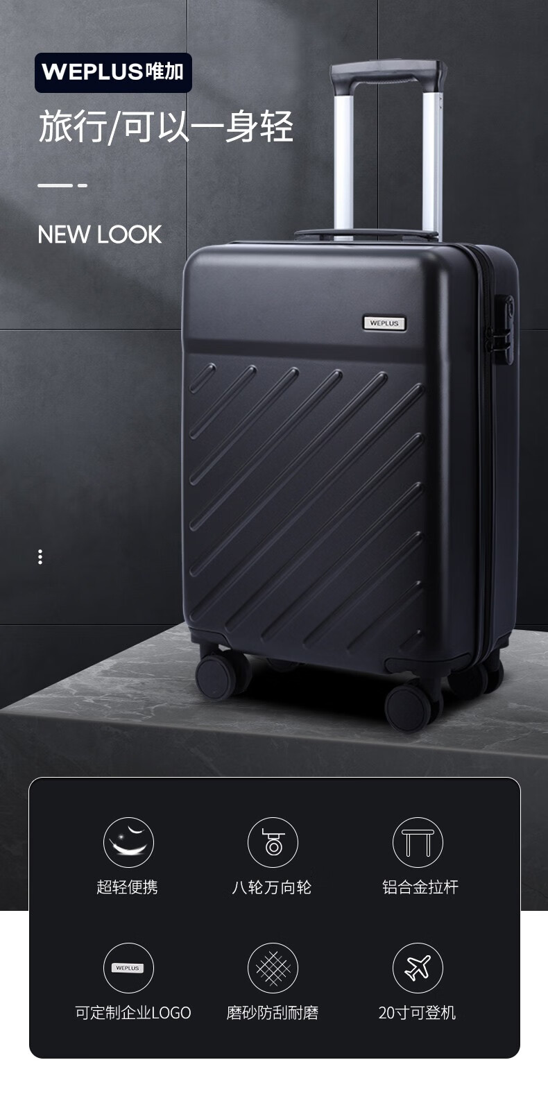 WEPLUS唯加20英寸旅行箱 万向轮拉杆箱男女登机箱学生商务出差WP2880 蓝色拉链 20英寸