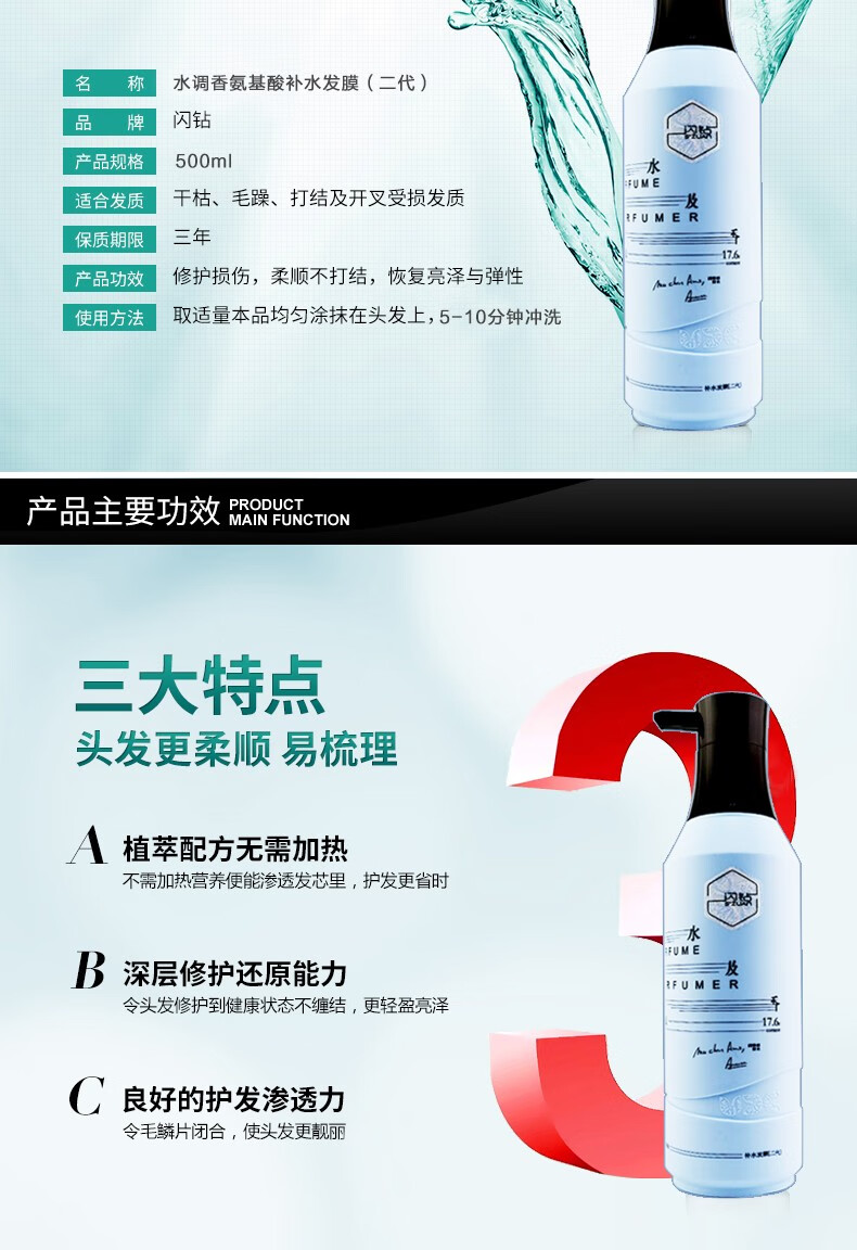 闪钻水调香氨基酸滋润洗发水500ML 洗护套装