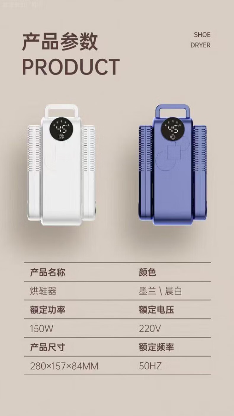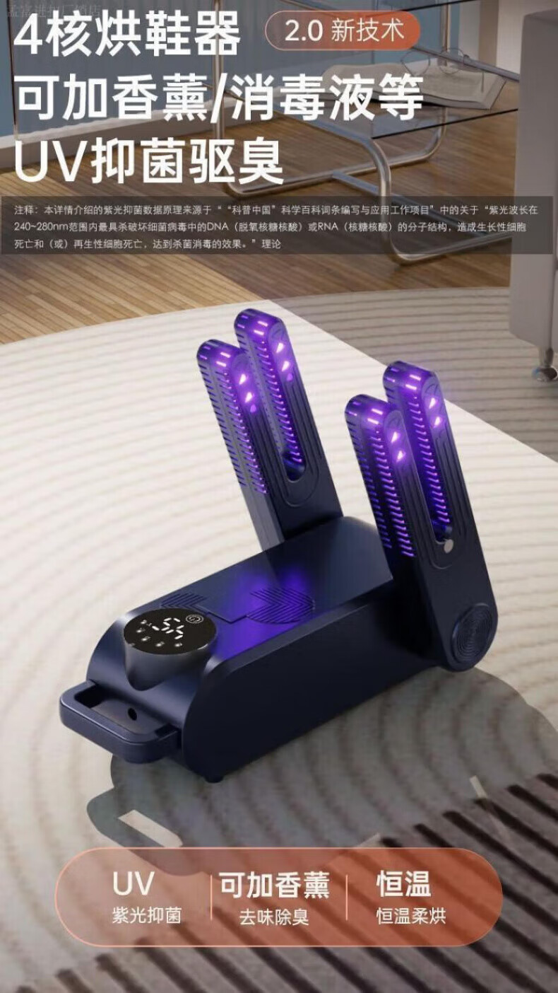 DEATKN德国品牌新款烘鞋器智能恒温鞋子烘干机除菌烘袜烘鞋干湿两用 紫色除菌除臭定时烘鞋器