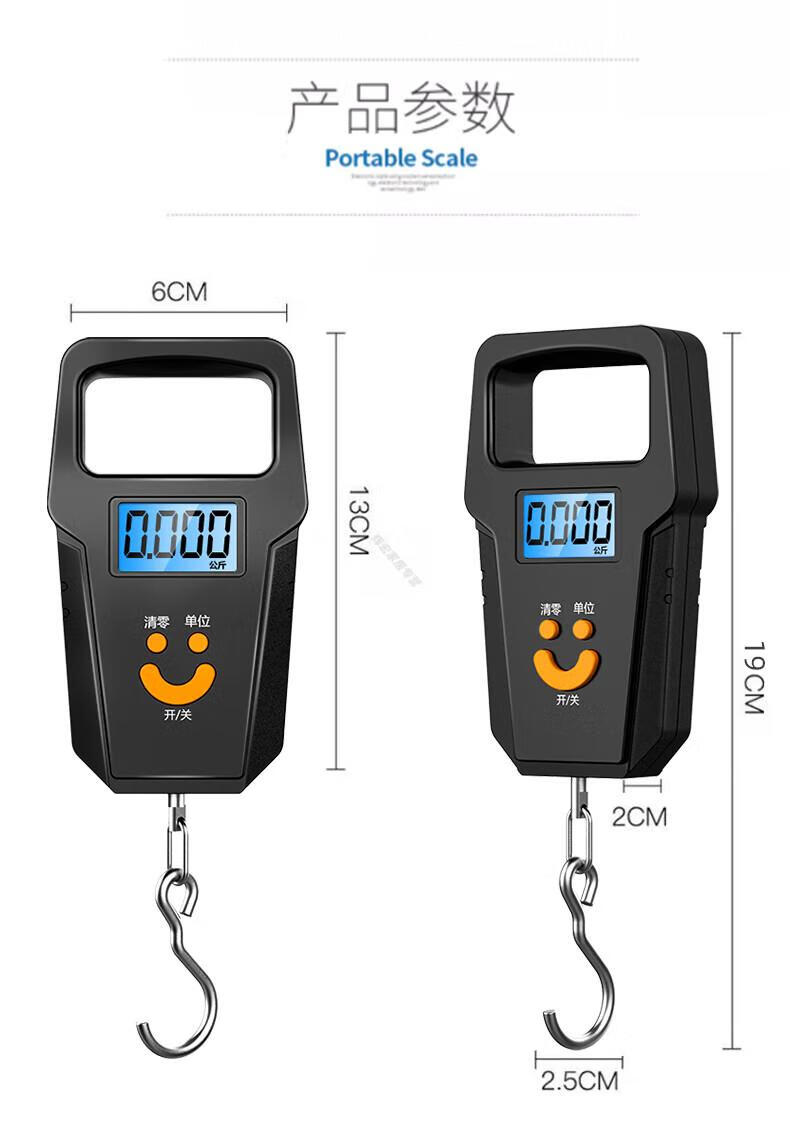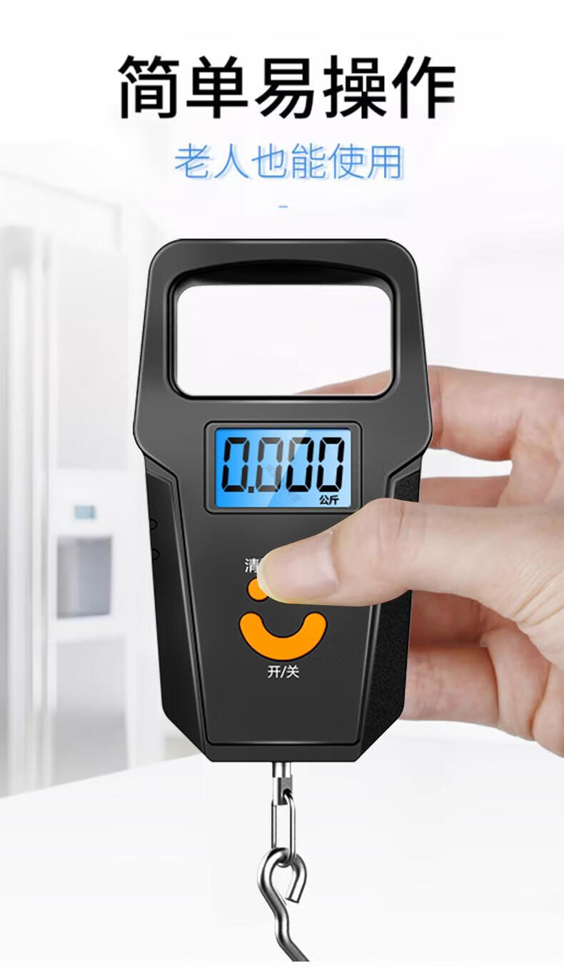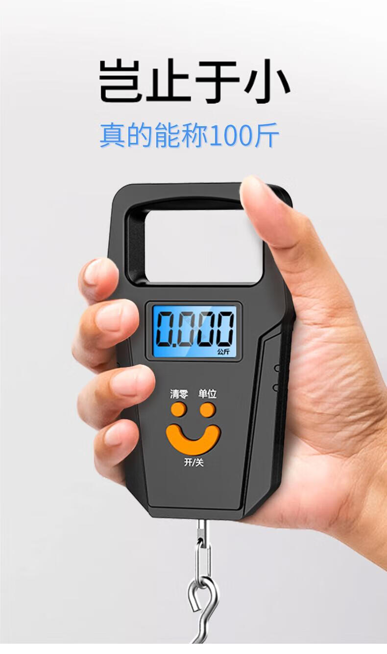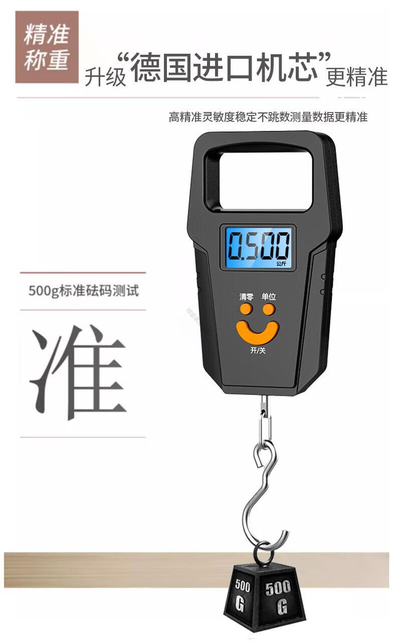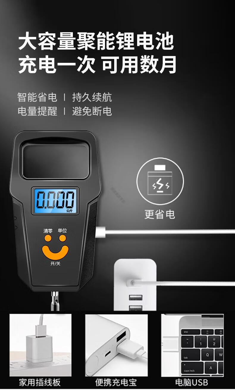 DEATKN德国品质精准迷你手提电子秤50kg便携式高精度家用快递称挂钩 【黑色充电款】(加厚加大提手+送充电线) 50kg