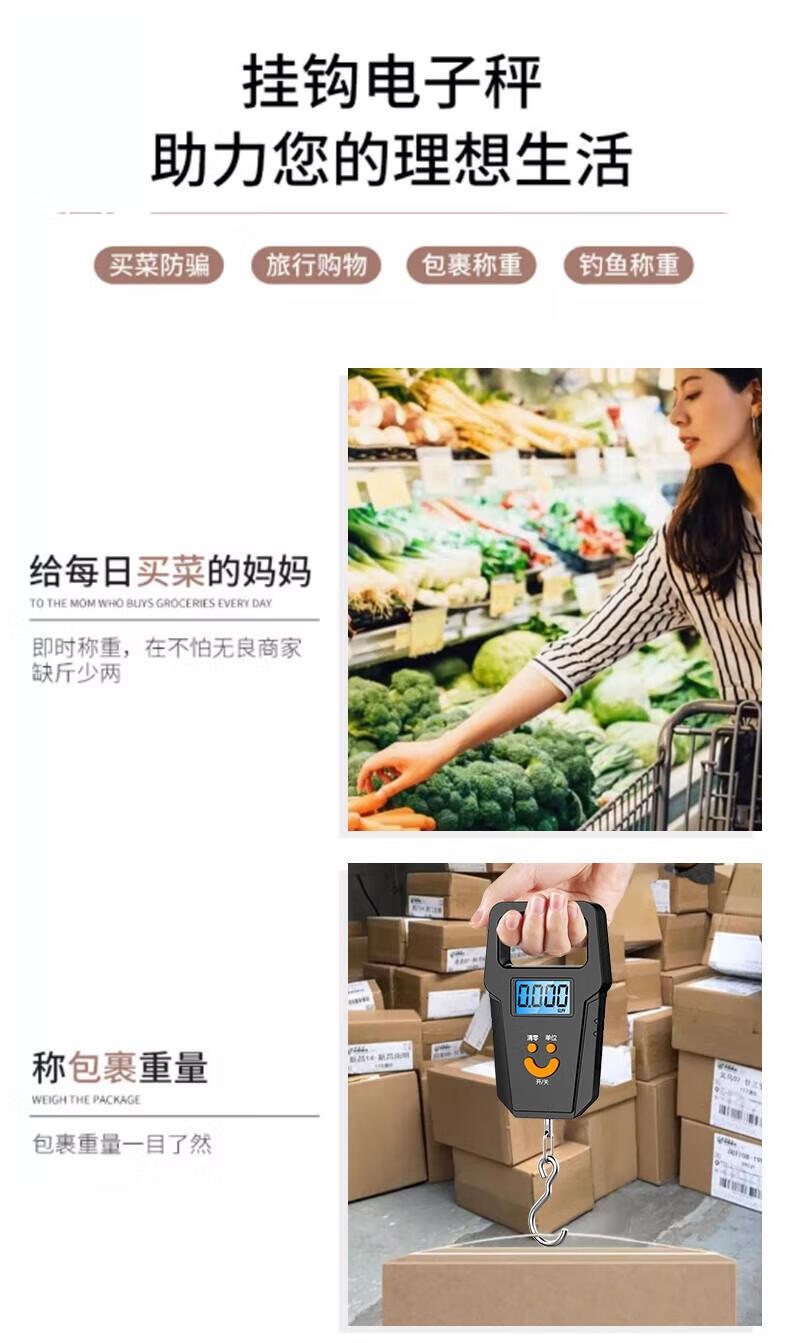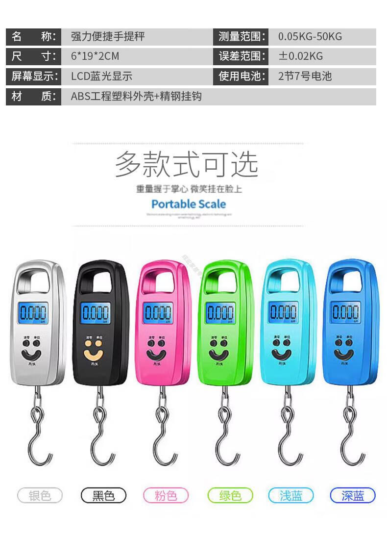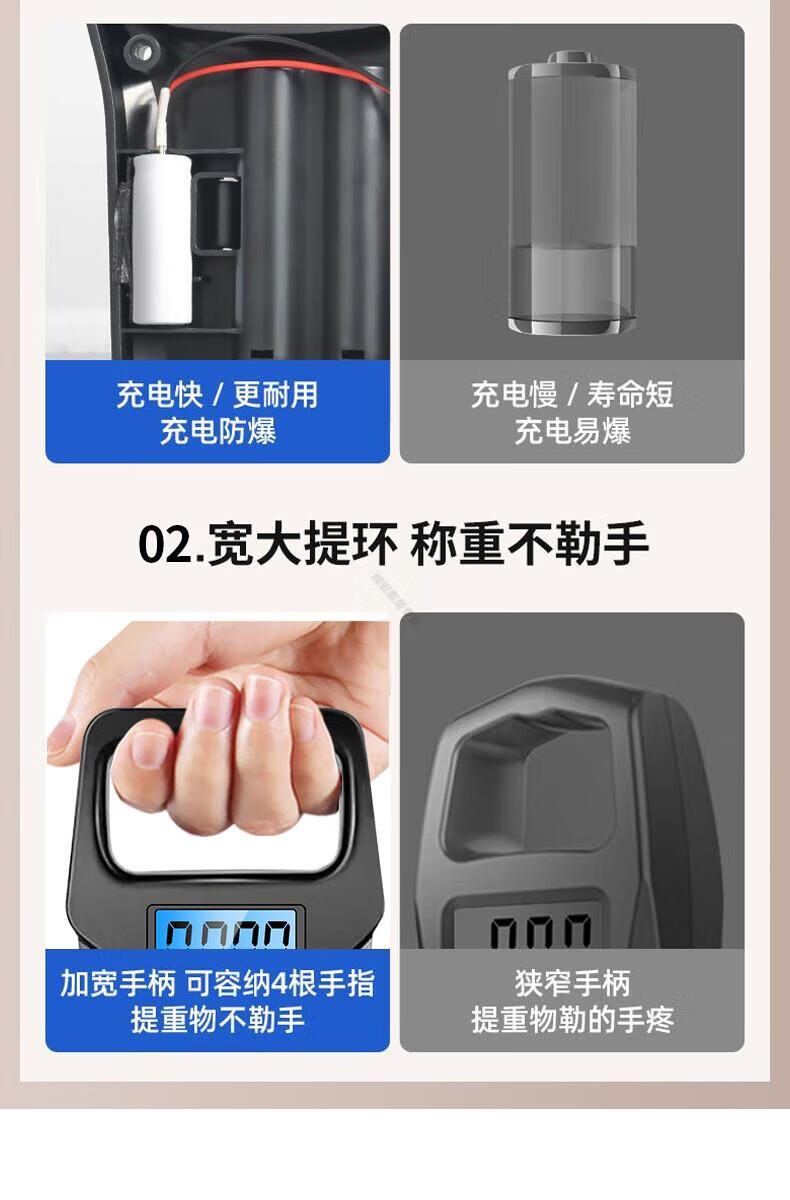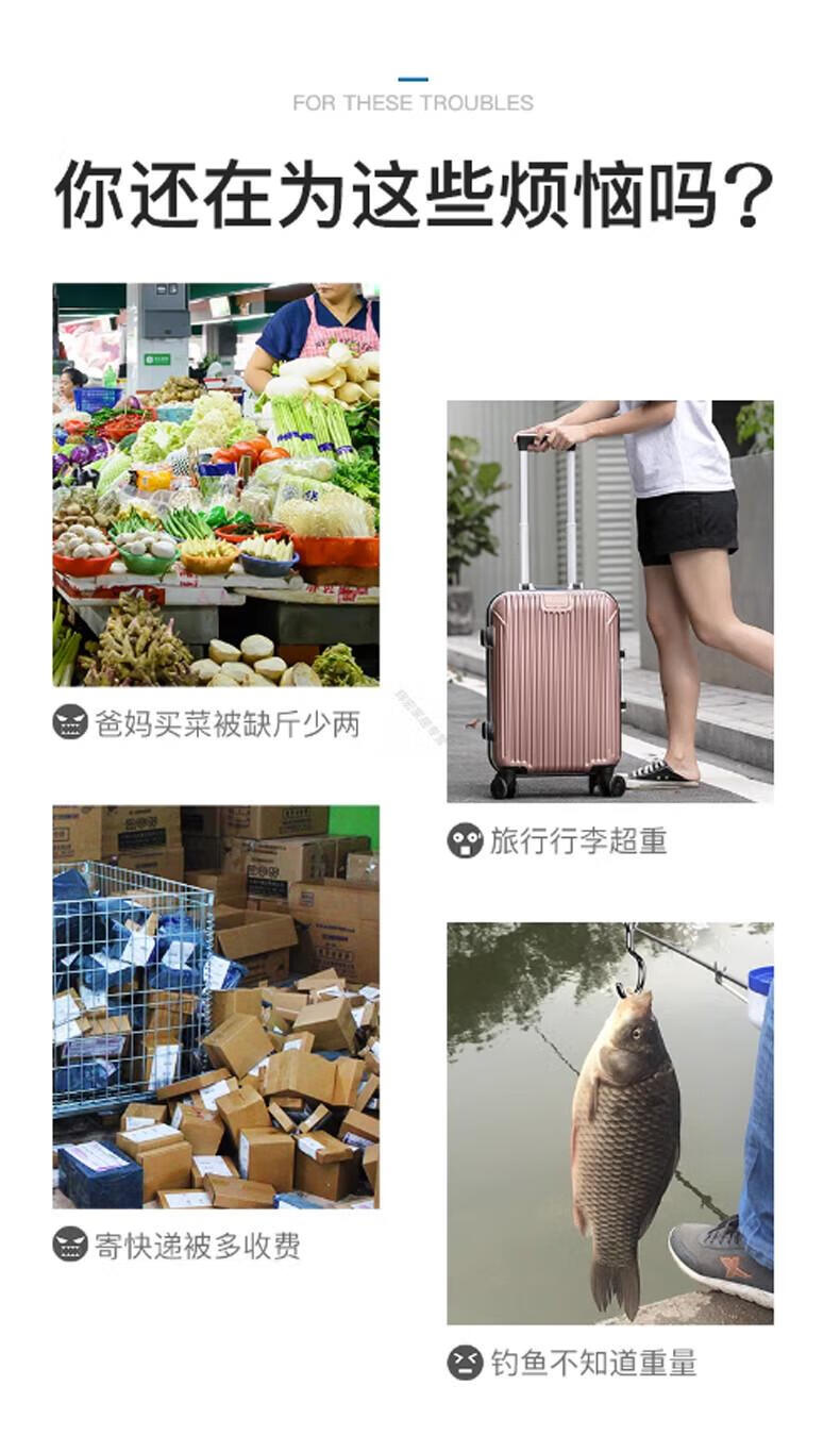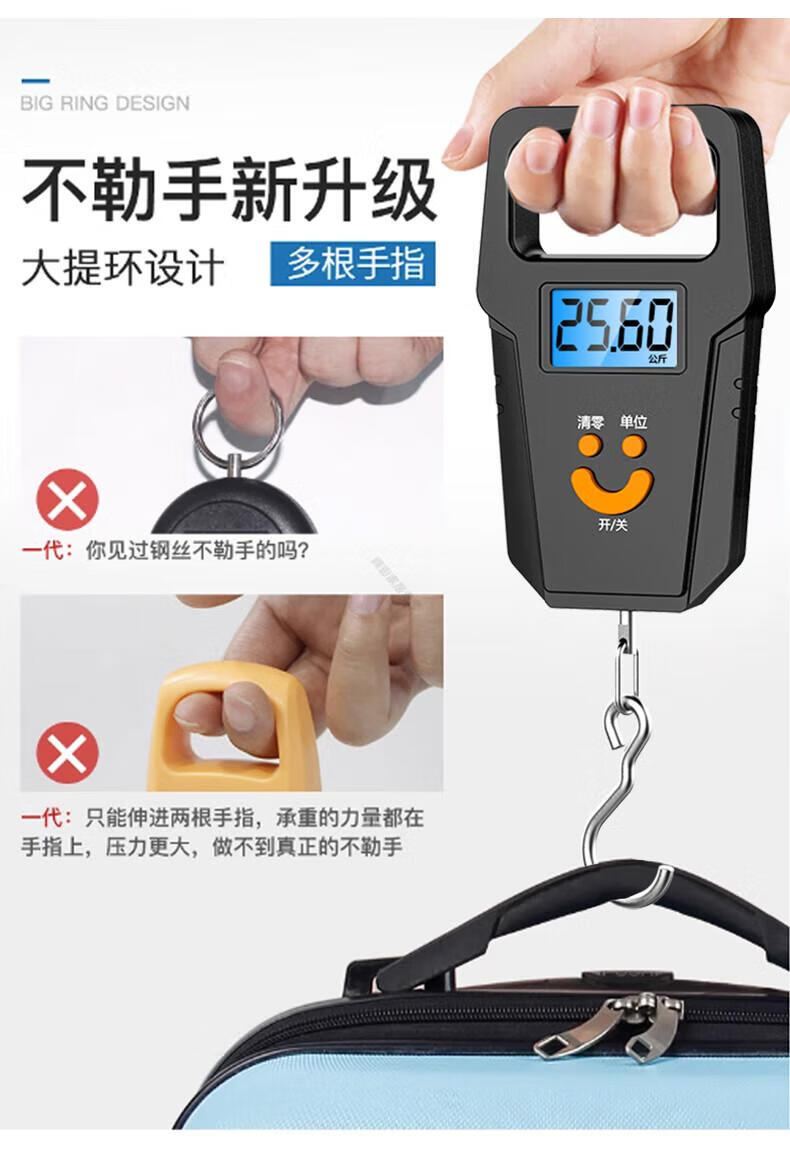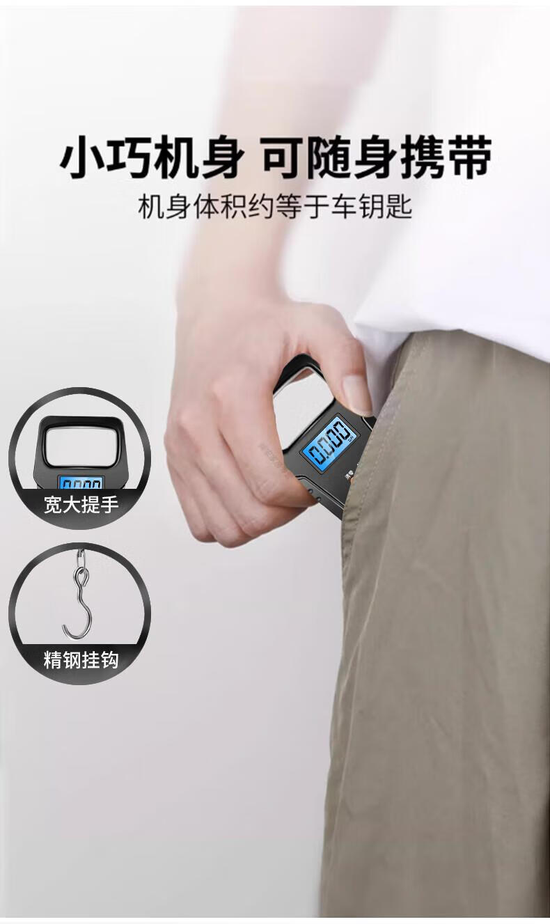 DEATKN德国品质精准迷你手提电子秤50kg便携式高精度家用快递称挂钩 【黑色充电款】(加厚加大提手+送充电线) 50kg
