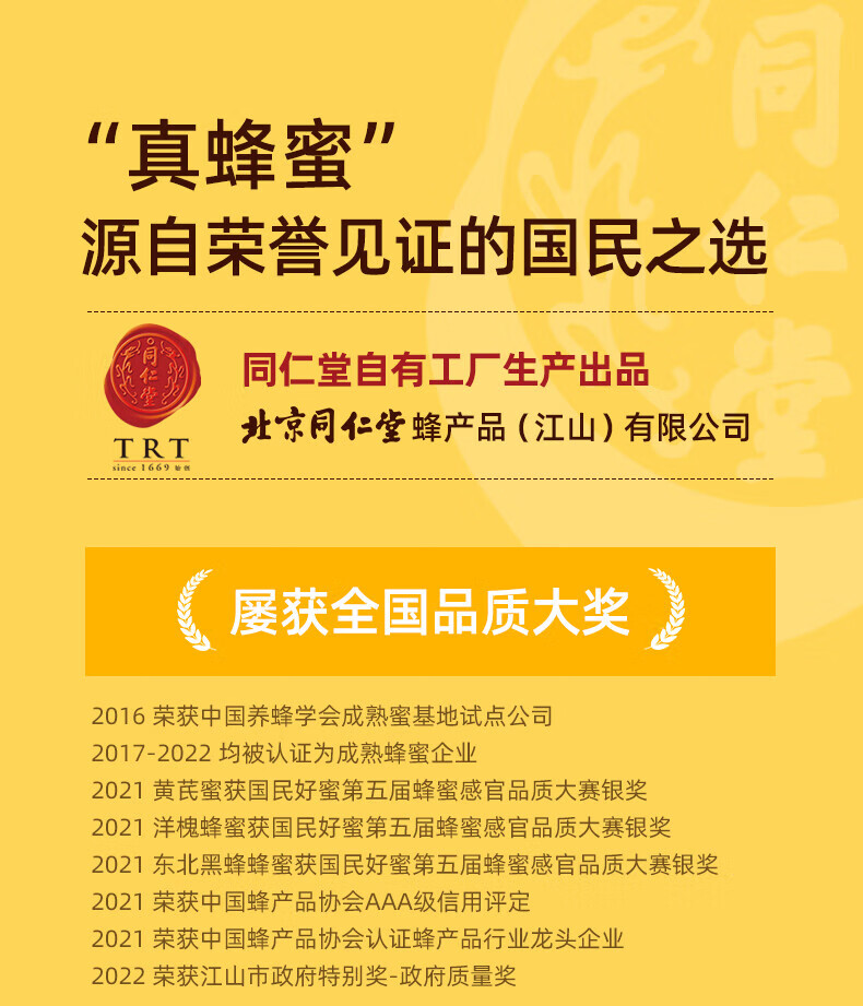 同仁堂(TRT)洋槐蜂蜜 自然花蜜真蜜无添加纯蜂蜜便携装84克