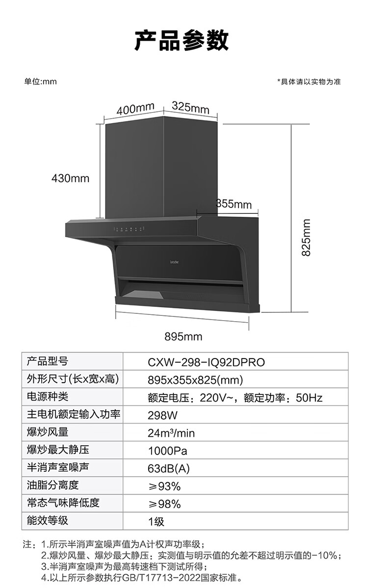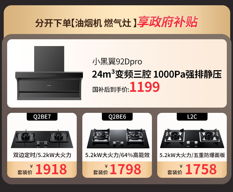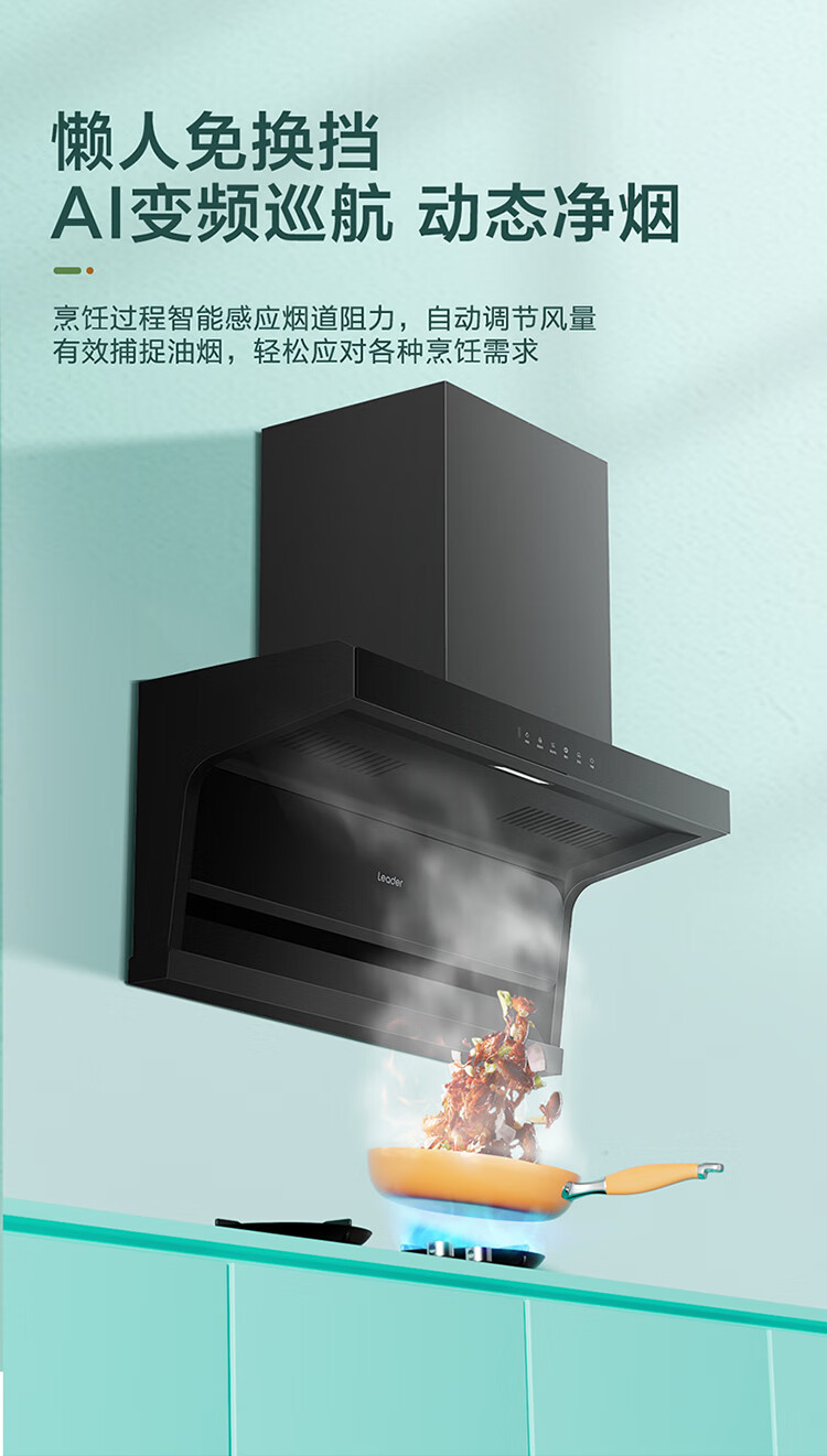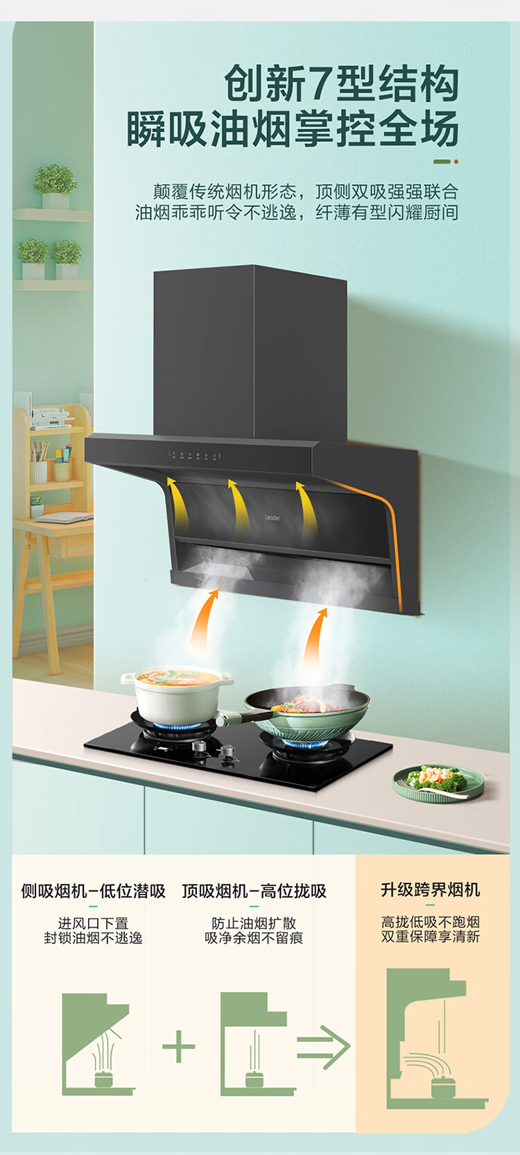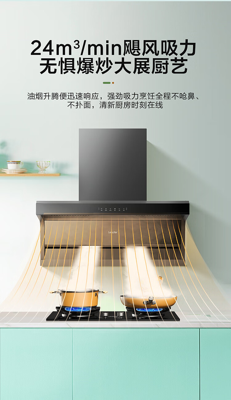 海尔(Haier)统帅(Leader)自营小黑翼92Dpro 国家补贴 顶侧双吸油烟机抽油烟机 24风量1000Pa变频 懒人油烟机