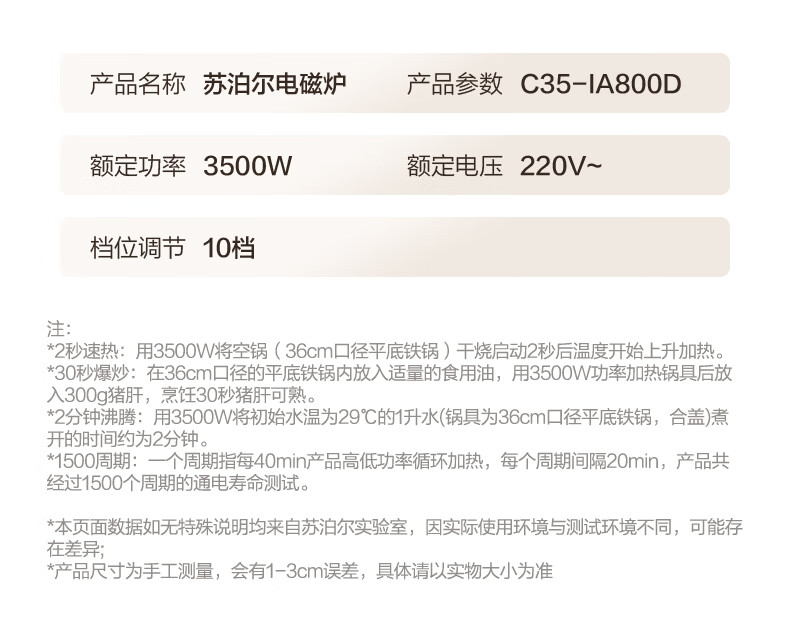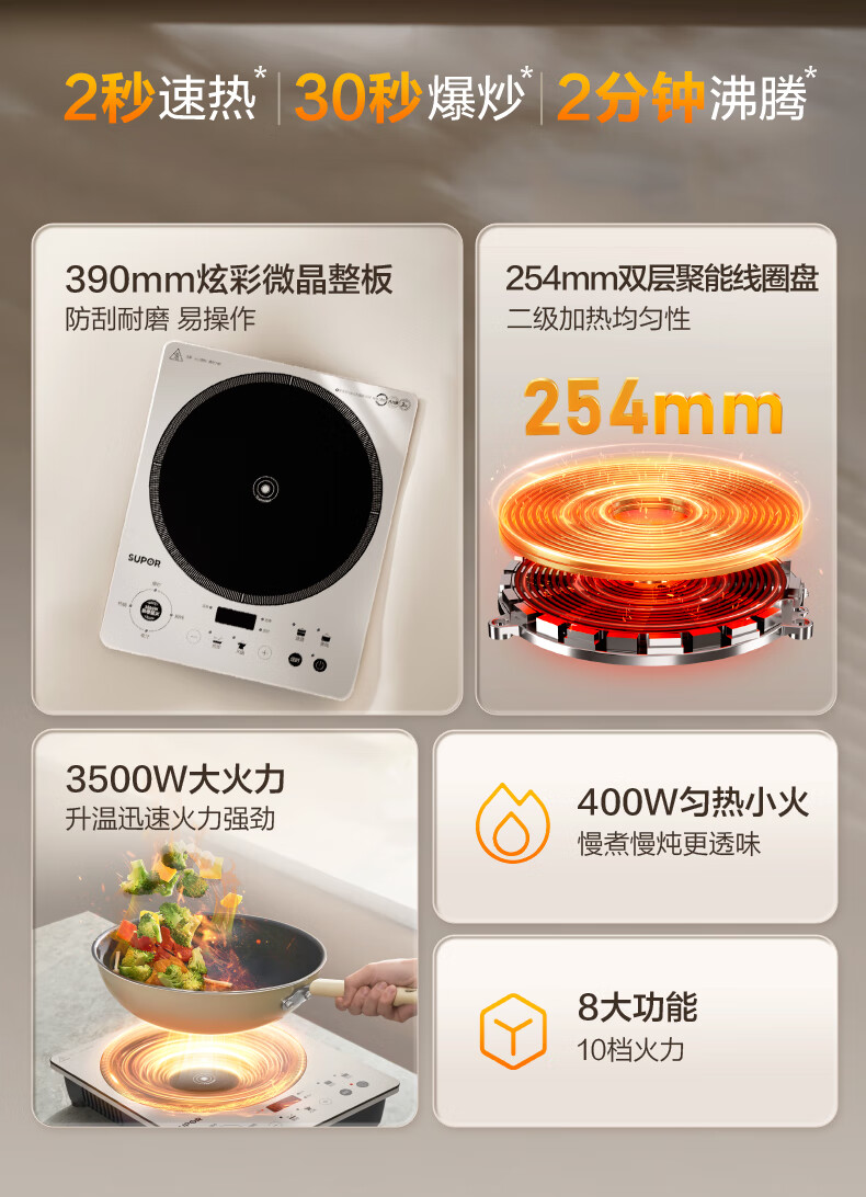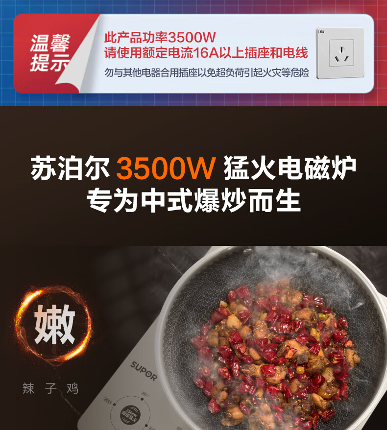 苏泊尔(SUPOR)大功率电磁炉家用商用3500W爆炒电磁灶电陶炉电池炉火锅炉炒菜定时电炉电火灶C35-IA800D