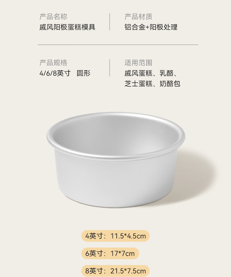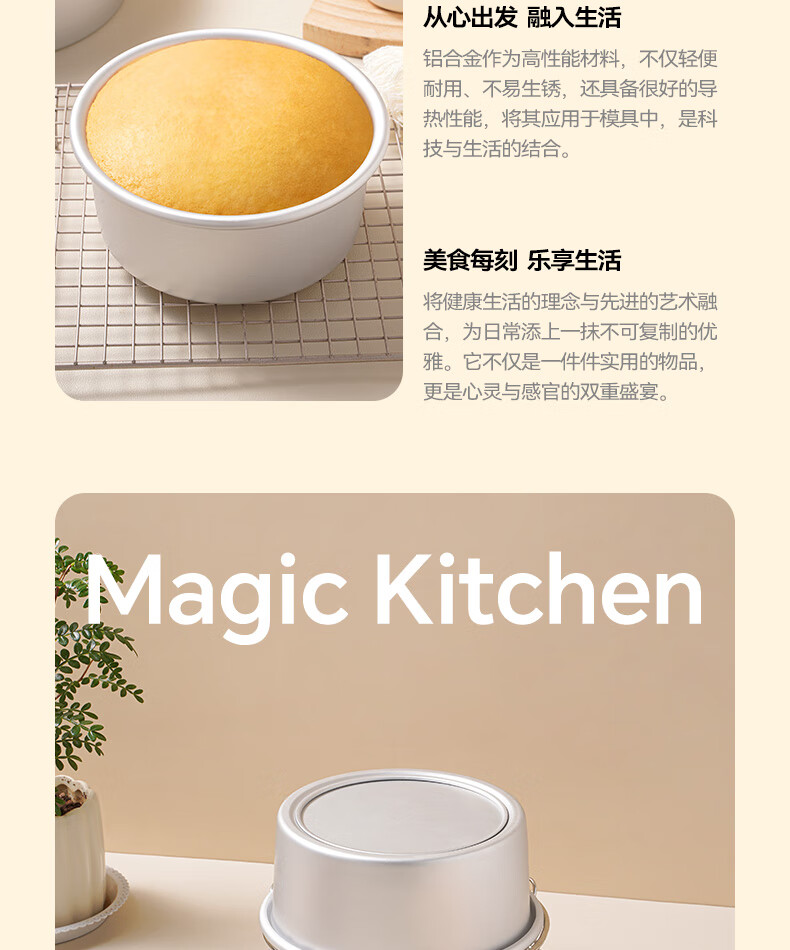 魔幻厨房戚风蛋糕模具6英寸蛋糕模圆形阳铝制极蛋糕制作模具工具烘焙模具