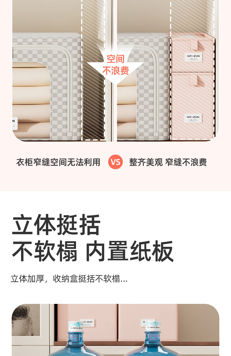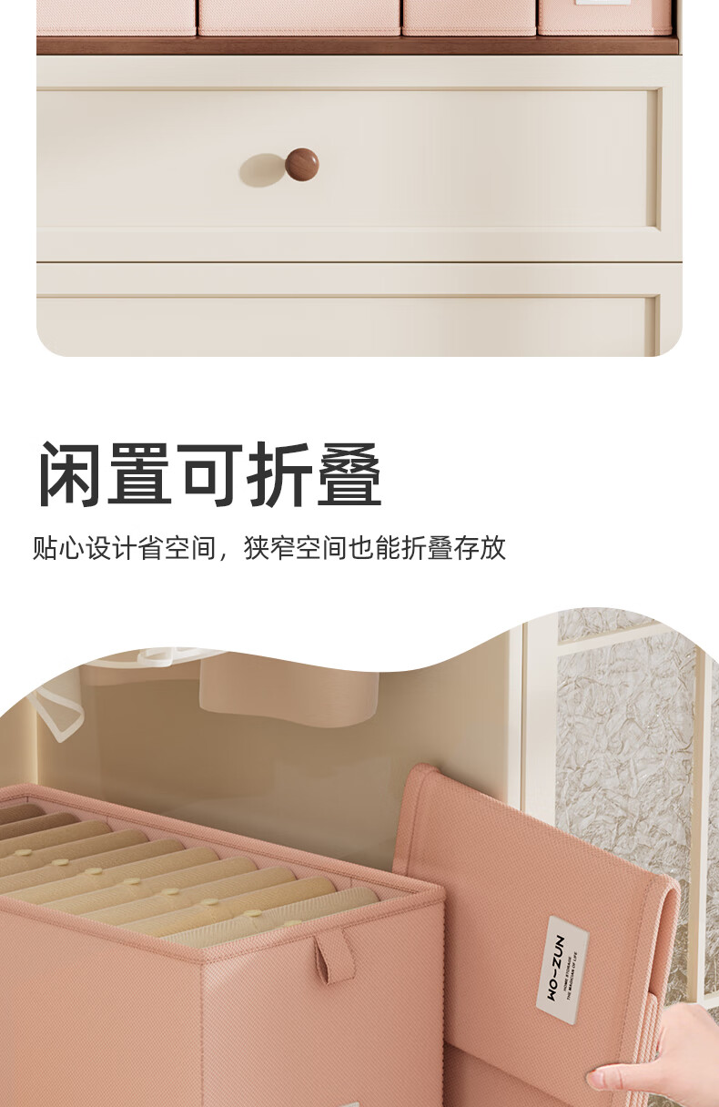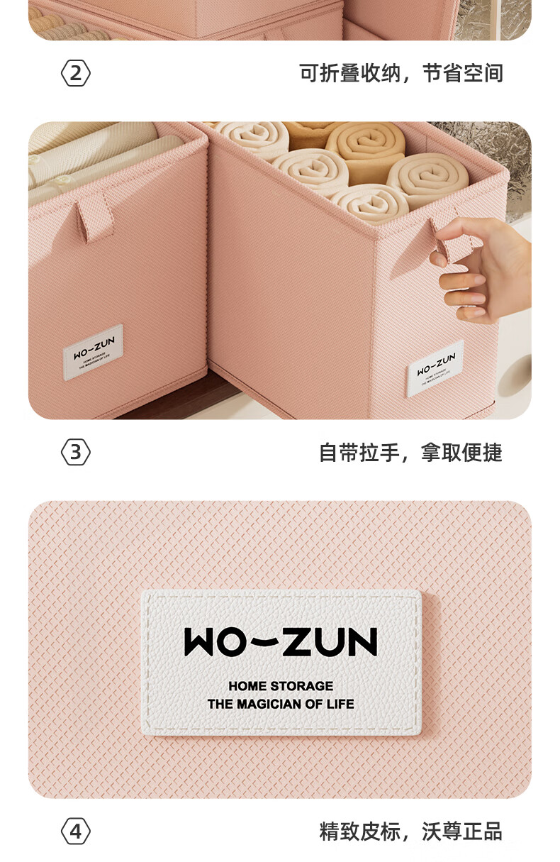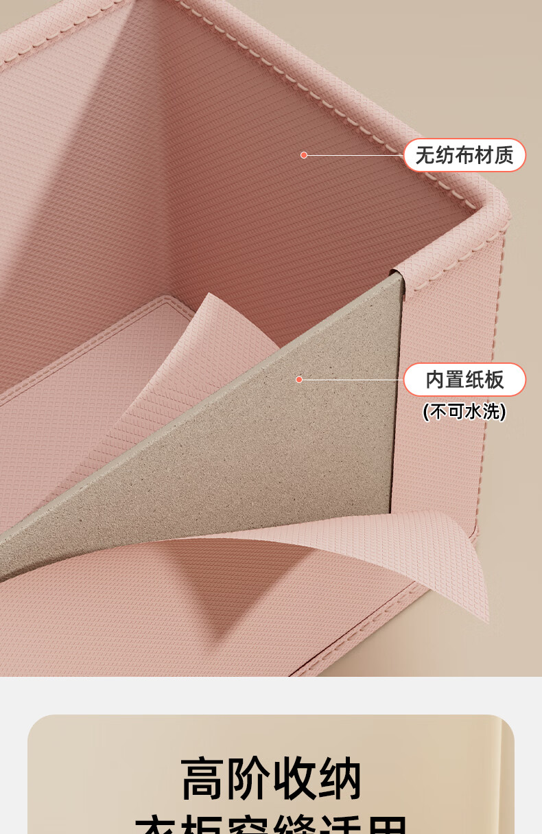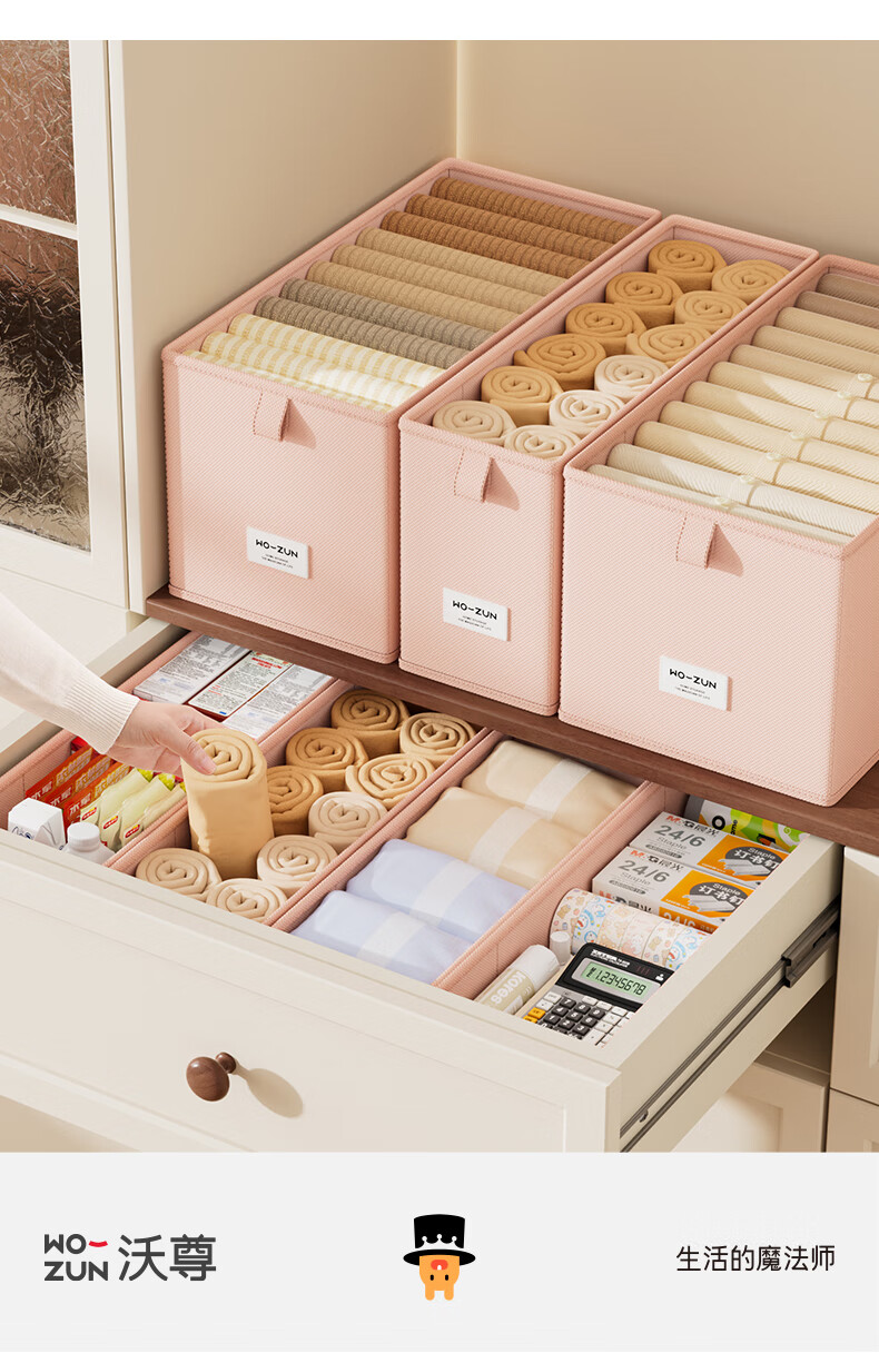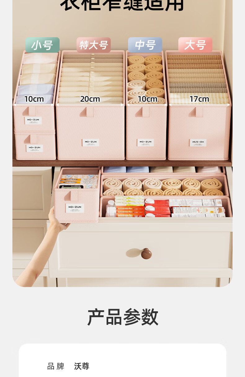 沃尊窄长型收纳盒缝隙放在衣柜整理盒裤子收纳神器深柜窄款衣物收纳盒 粉色小号【深47*宽10*高10】