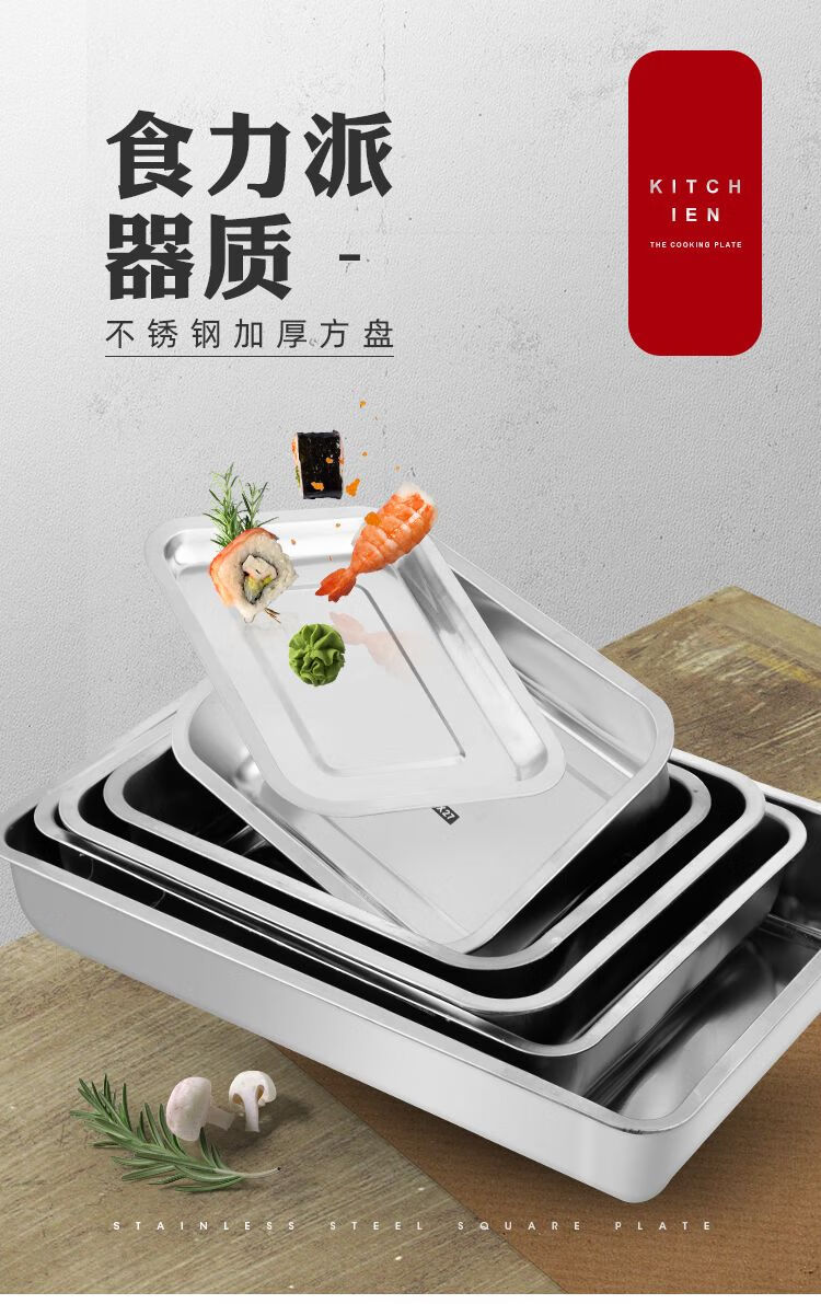 DEATKN德国不锈钢盘子托盘长方形凉菜盘餐盘菜盘饺子盘家用鱼盘商用烧烤 薄款27*20浅盘2cm【10个装】