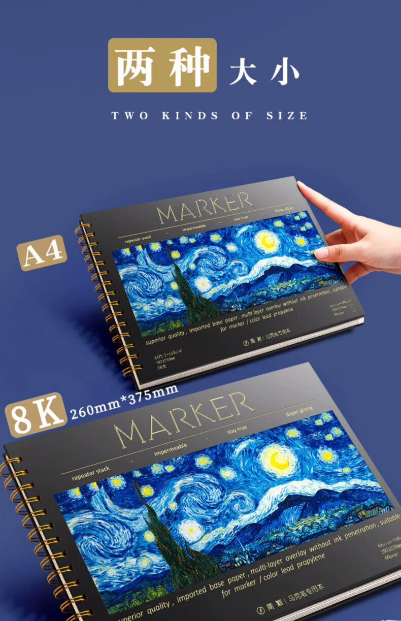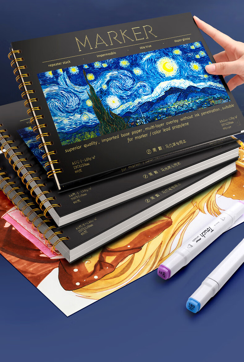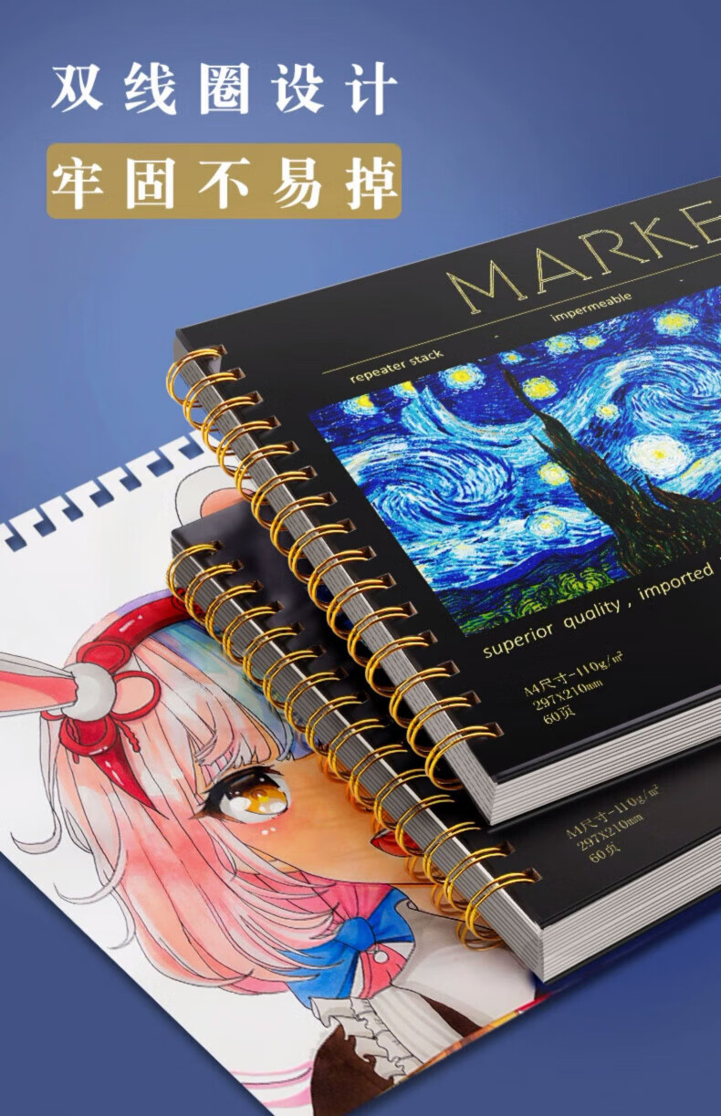 DEATKN德国麦克笔画 画本画 画画 画本小学生绘画 画本A4画 画画 画本子丙烯麦克笔图画 画本幼儿园美术 【1本】A4-星空_60张_加厚130g