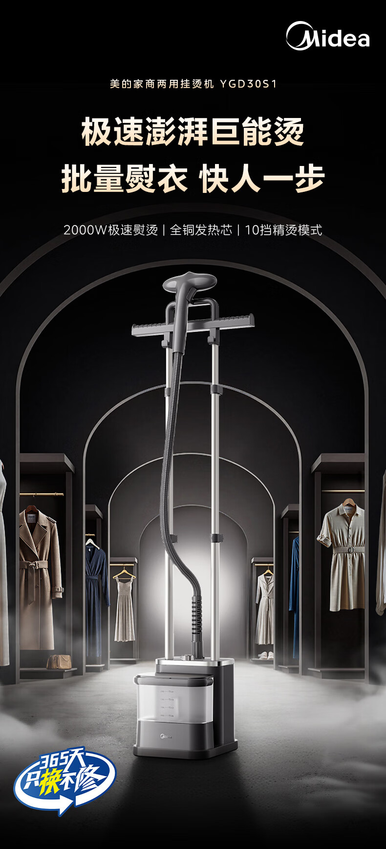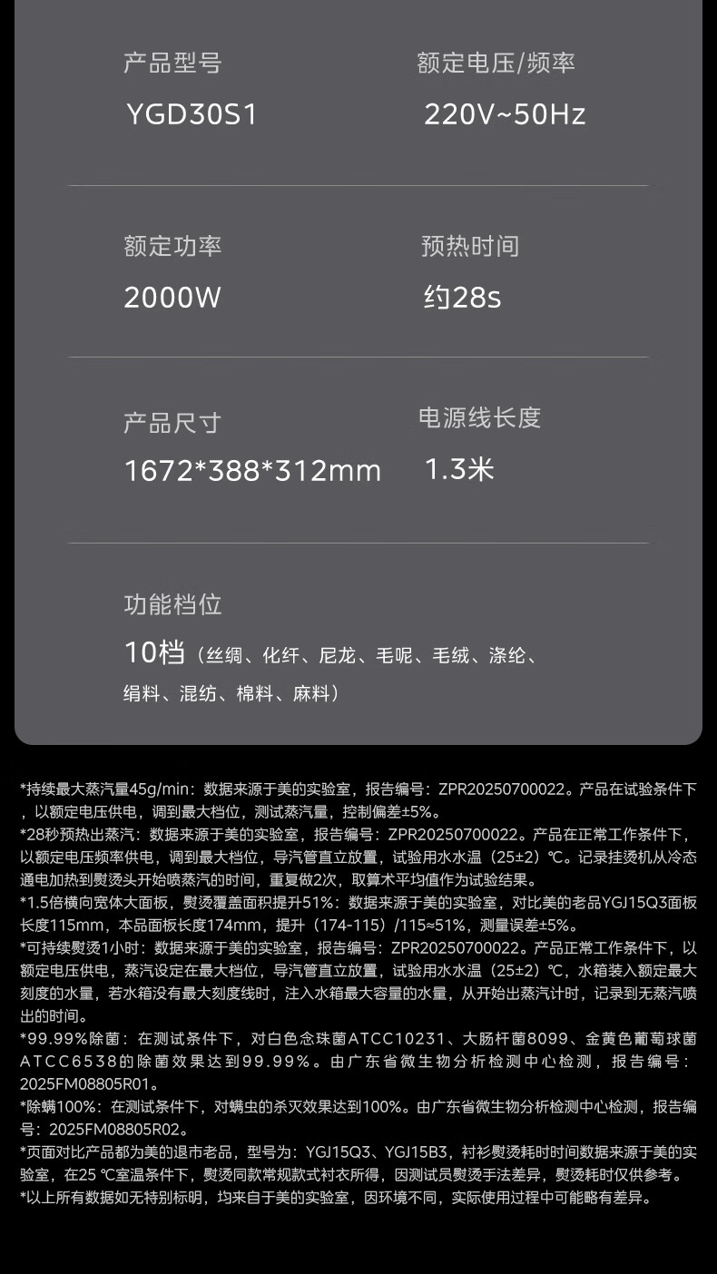 美的(Midea)【创新升级】挂烫机家用/2025新款熨烫机/小型手持大蒸汽电熨斗/服装店专用商用蒸汽熨斗/YGD30S1