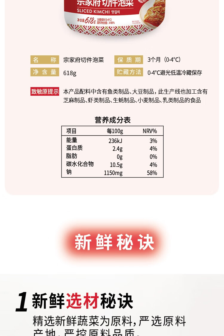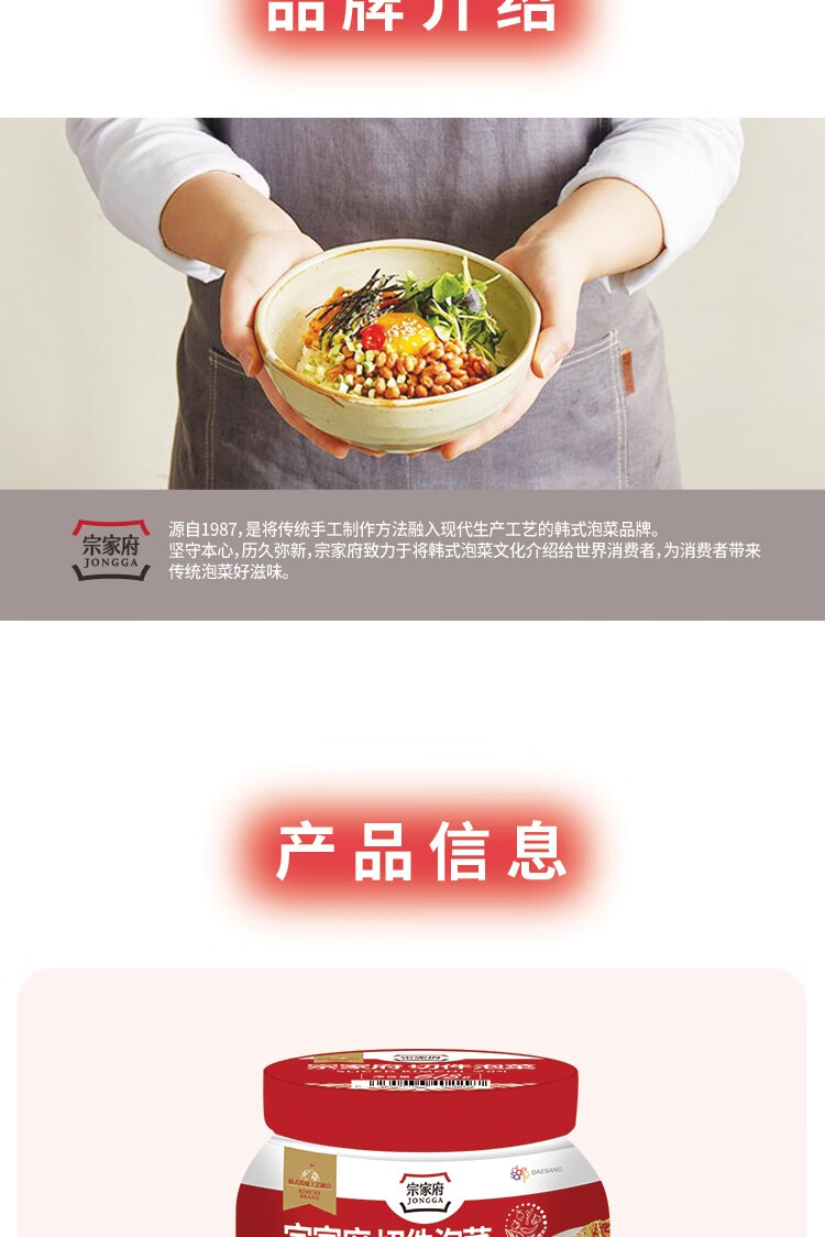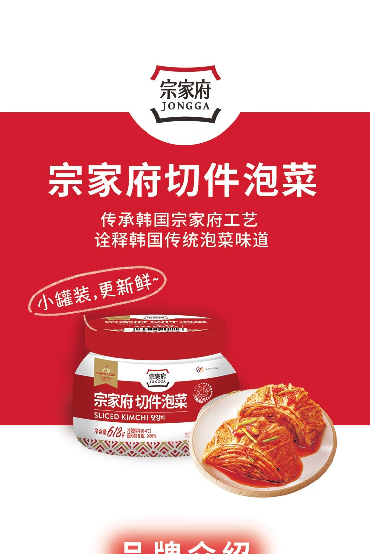 清净园宗家府切件泡菜 618g 瓶装 韩国泡菜辣白菜酱菜咸菜下饭菜