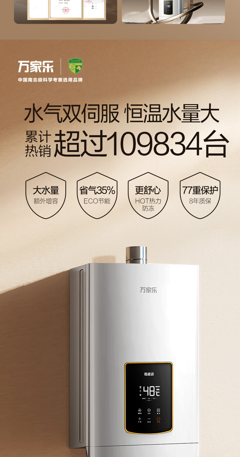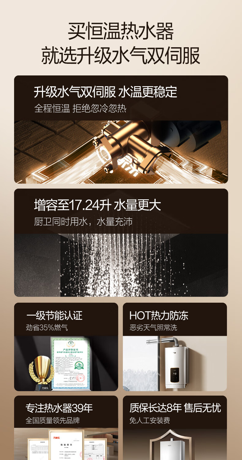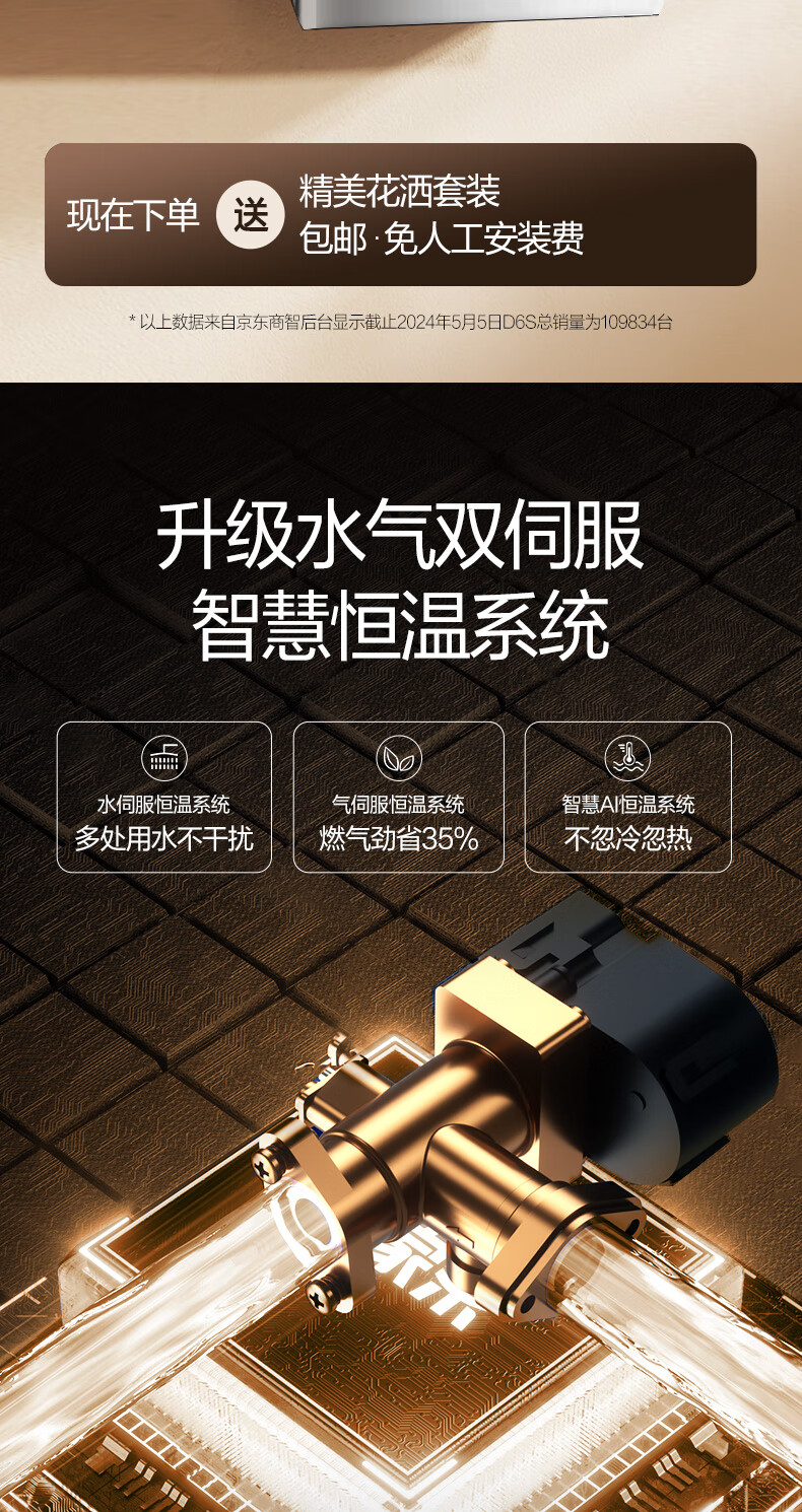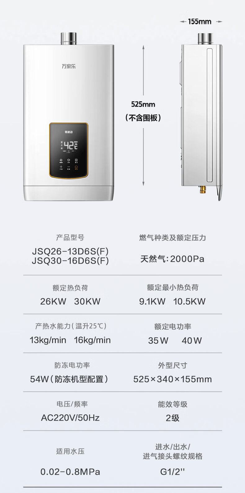 万家乐【恒温王D6S(F)·增容大水量】16升燃气热水器天然气水量伺服器智能恒温变升一级节能防冻以旧换新