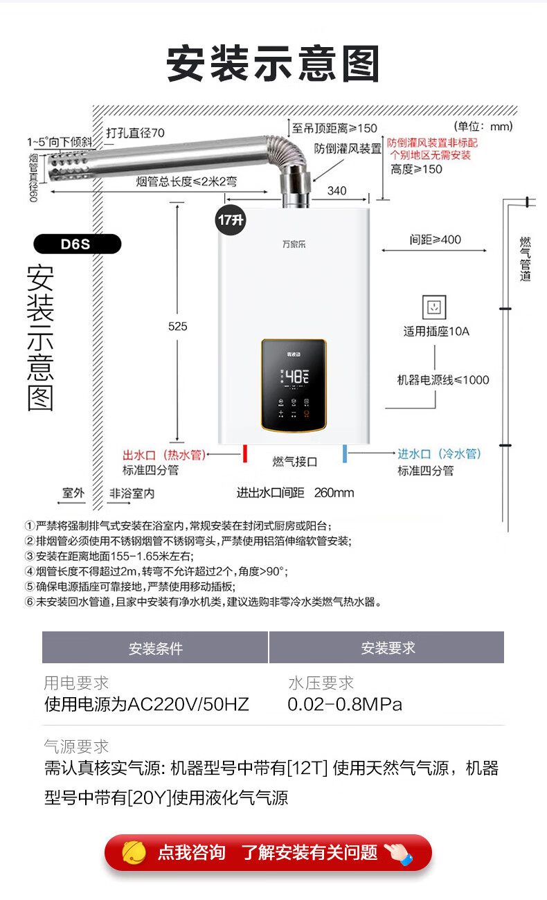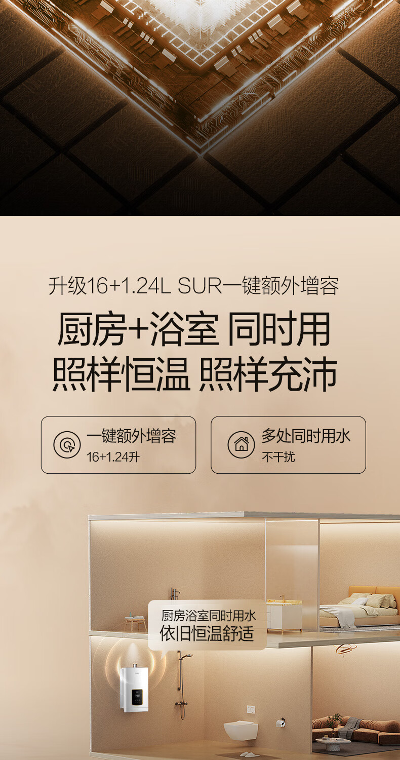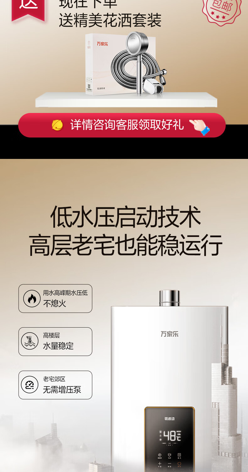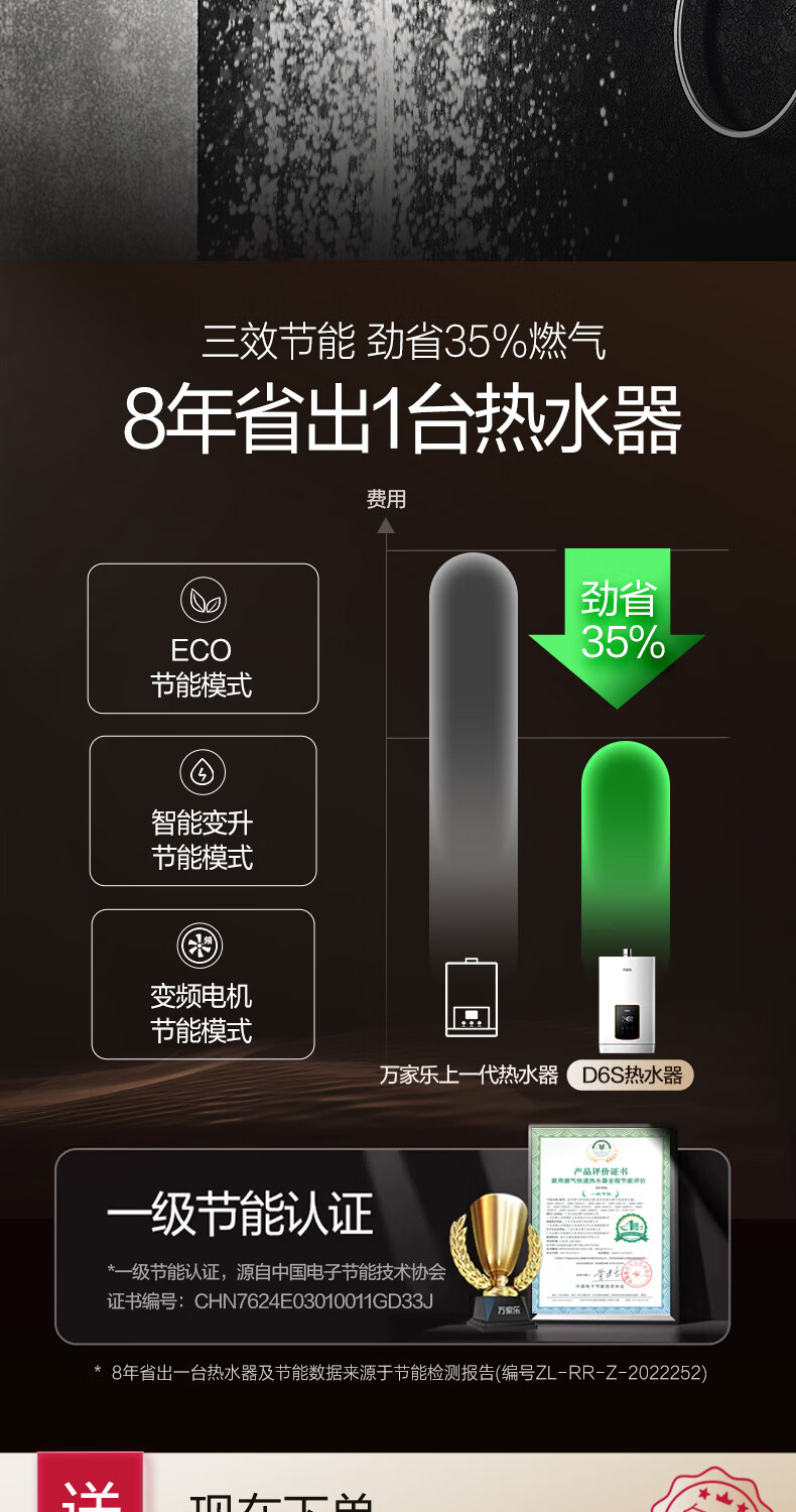 万家乐【恒温王D6S(F)·增容大水量】16升燃气热水器天然气水量伺服器智能恒温变升一级节能防冻以旧换新