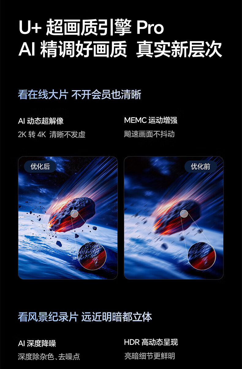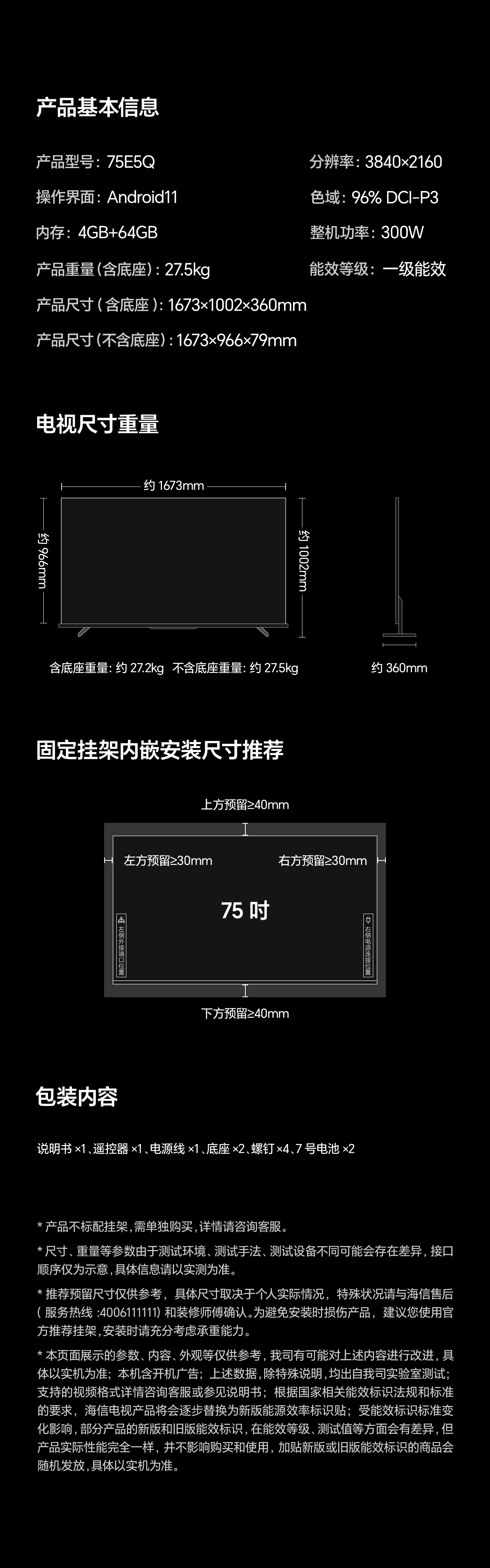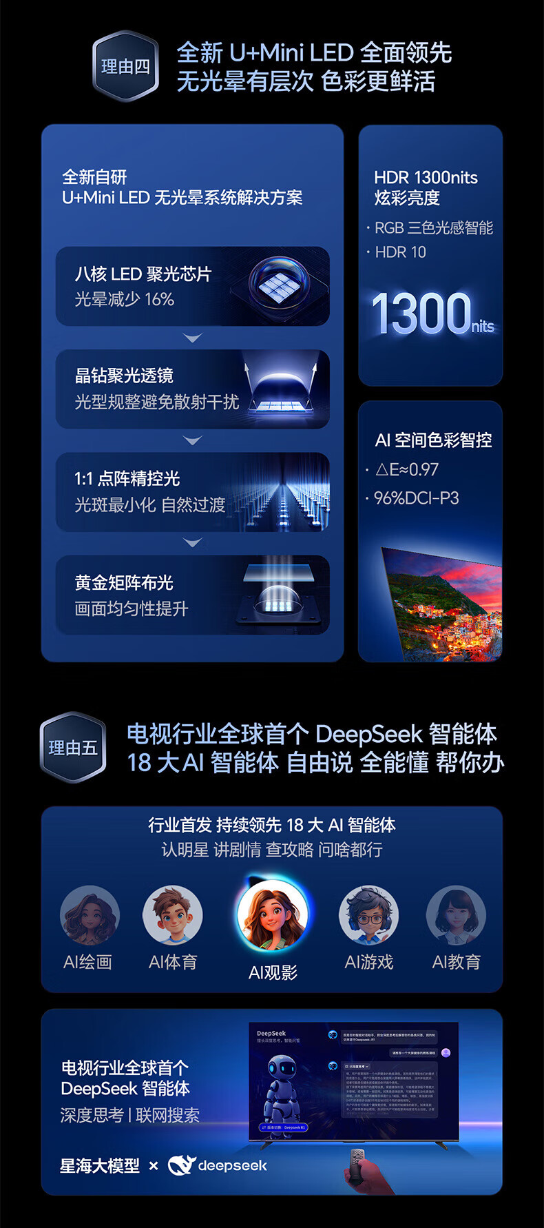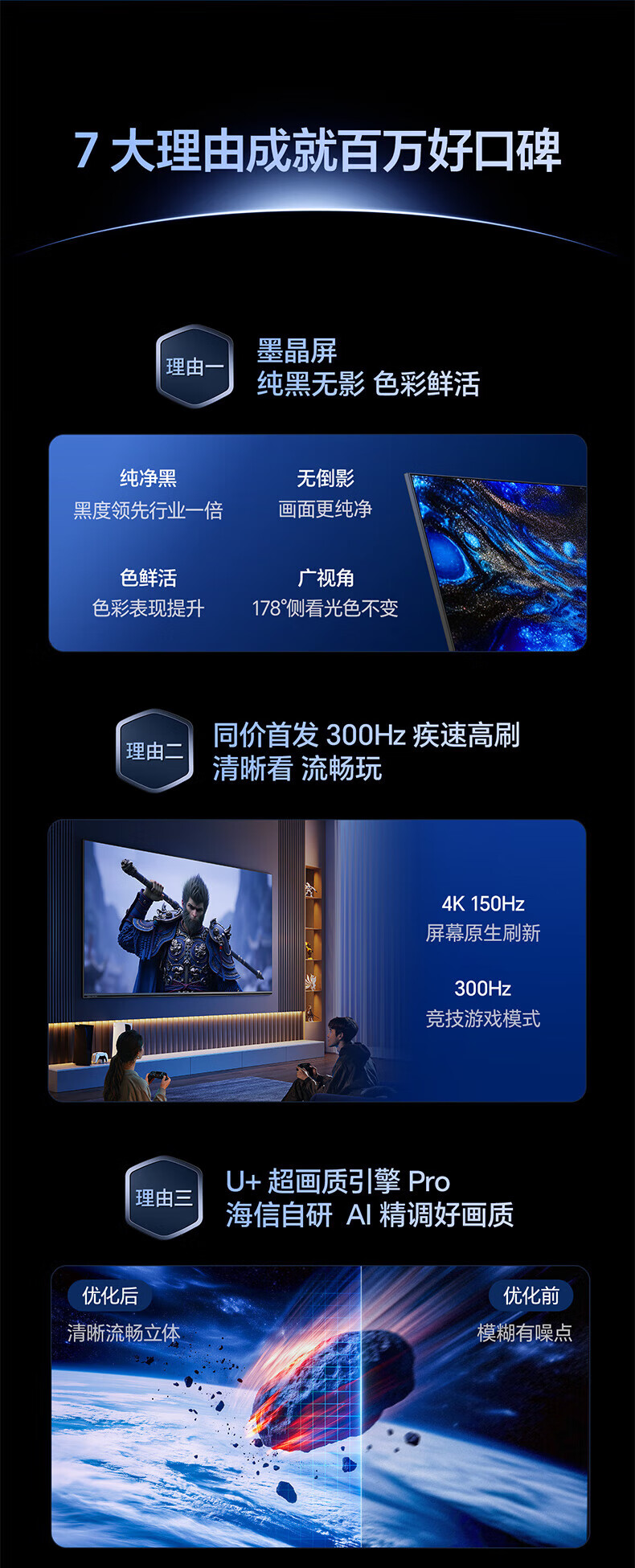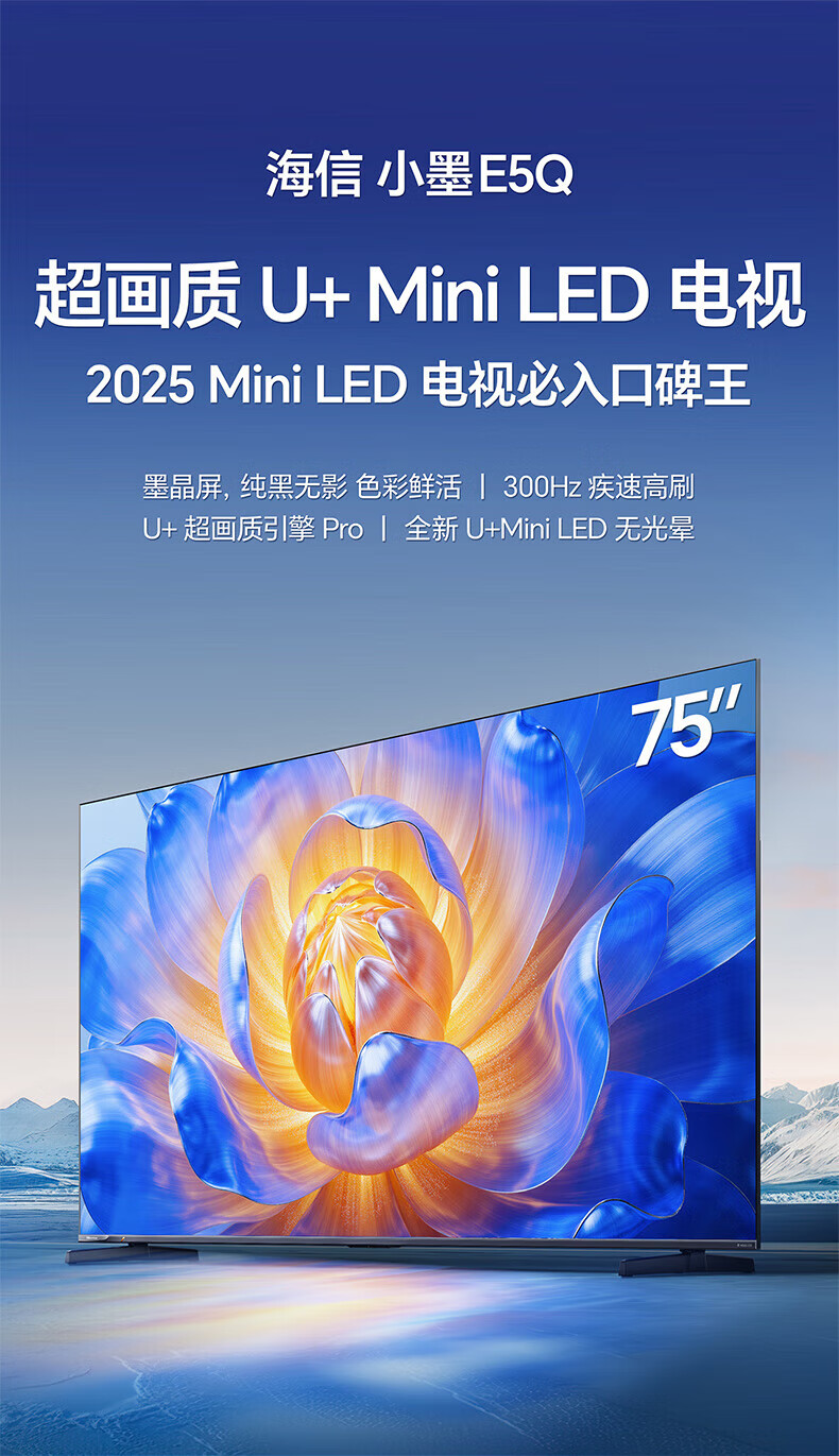 海信电视小墨75E5Q 75英寸 超画质U+Mini LED 墨晶屏 300Hz高刷 DeepSeek AI智能 E5N升级 国家补贴 75英寸