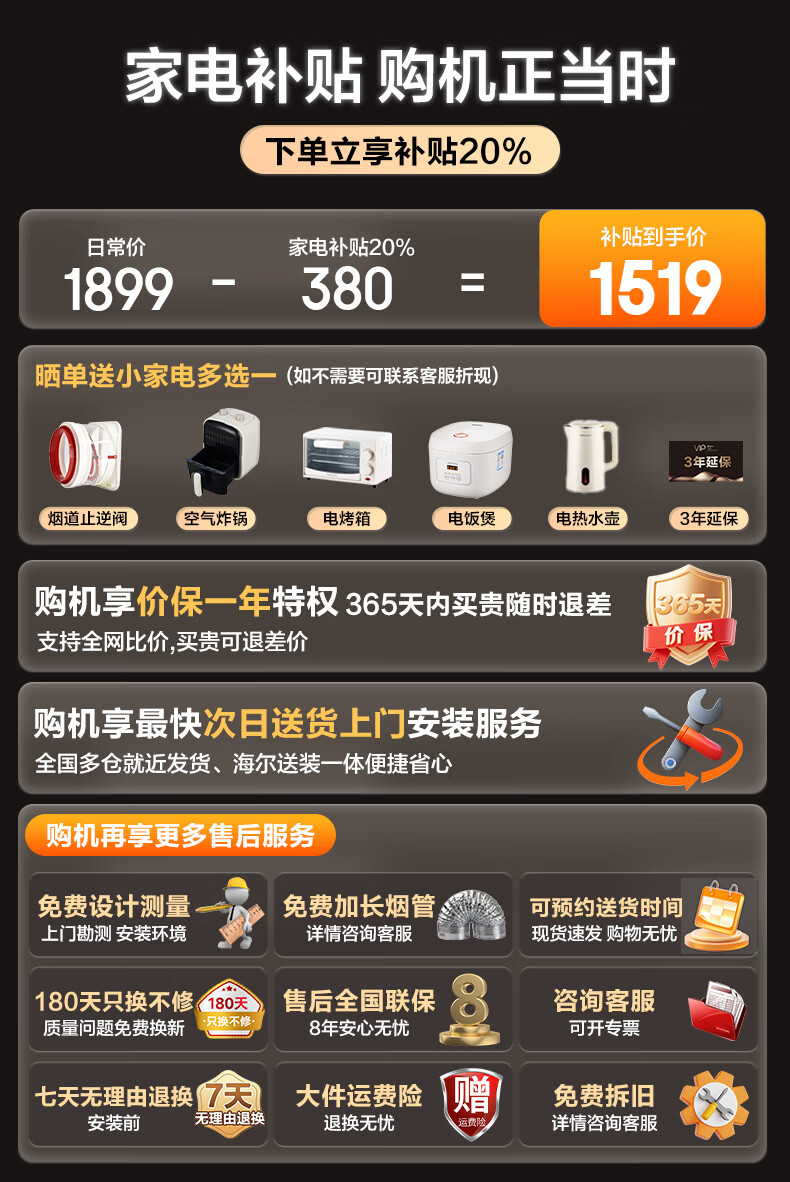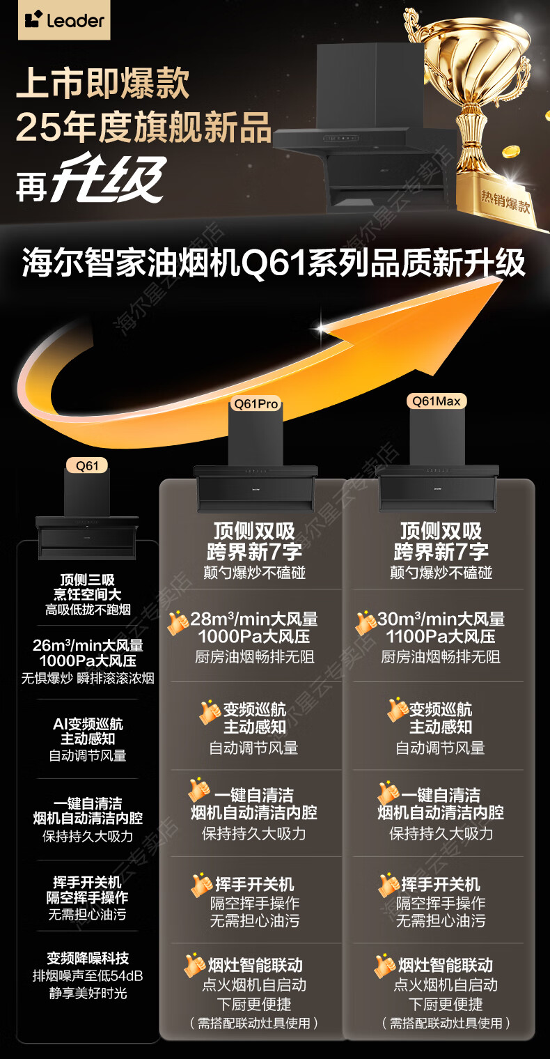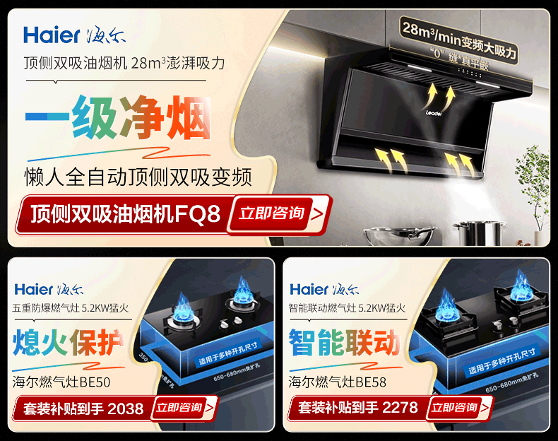 海尔(Haier)国家补贴20% 抽油烟机大吸力静音一级能效 28m³顶侧双吸油烟机 免拆洗FQ8油烟机燃气灶热水器套装 【旗舰新品】28m³变频FQ8-全国仓
