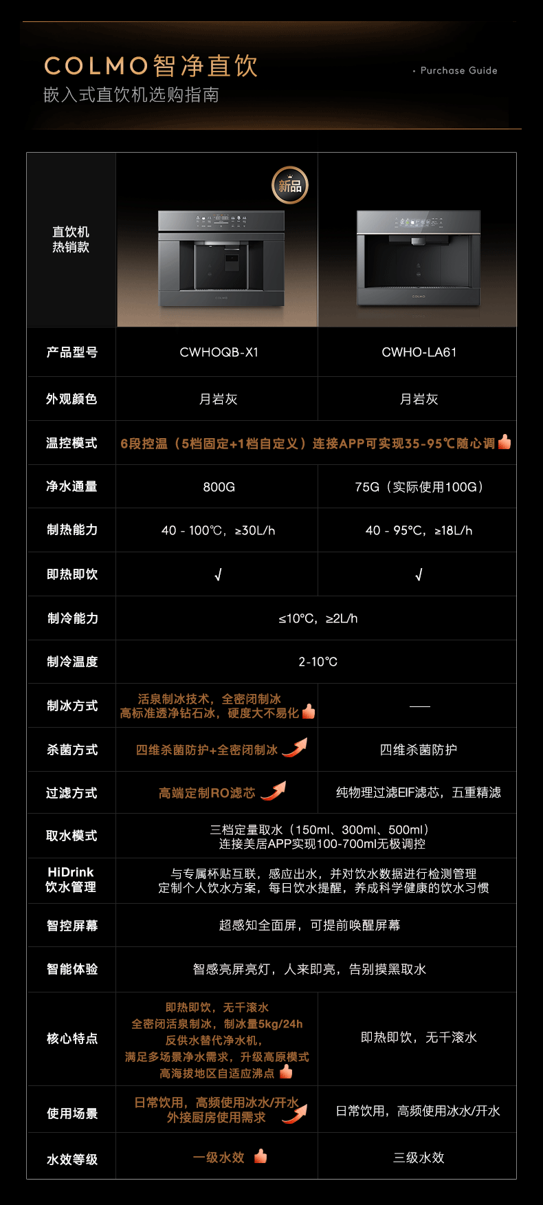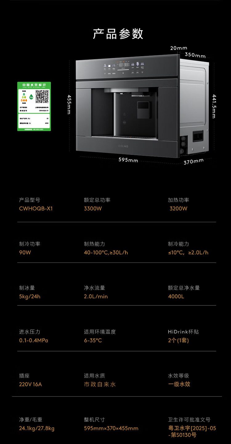 COLMO嵌入式净饮机X1家用制冰机政府补贴 即热直饮机制冷净水器 800G通量5年长效RO制热真沸腾