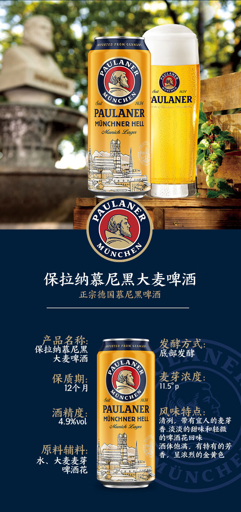 保拉纳(Paulaner)柏龙 慕尼黑大麦啤酒 500ml*24听 德国进口京东自营 饮料