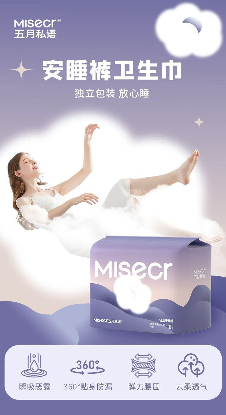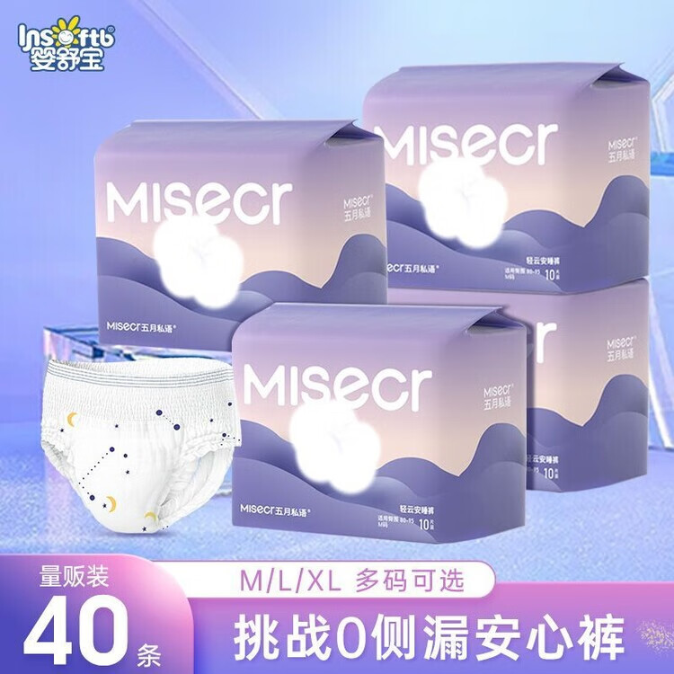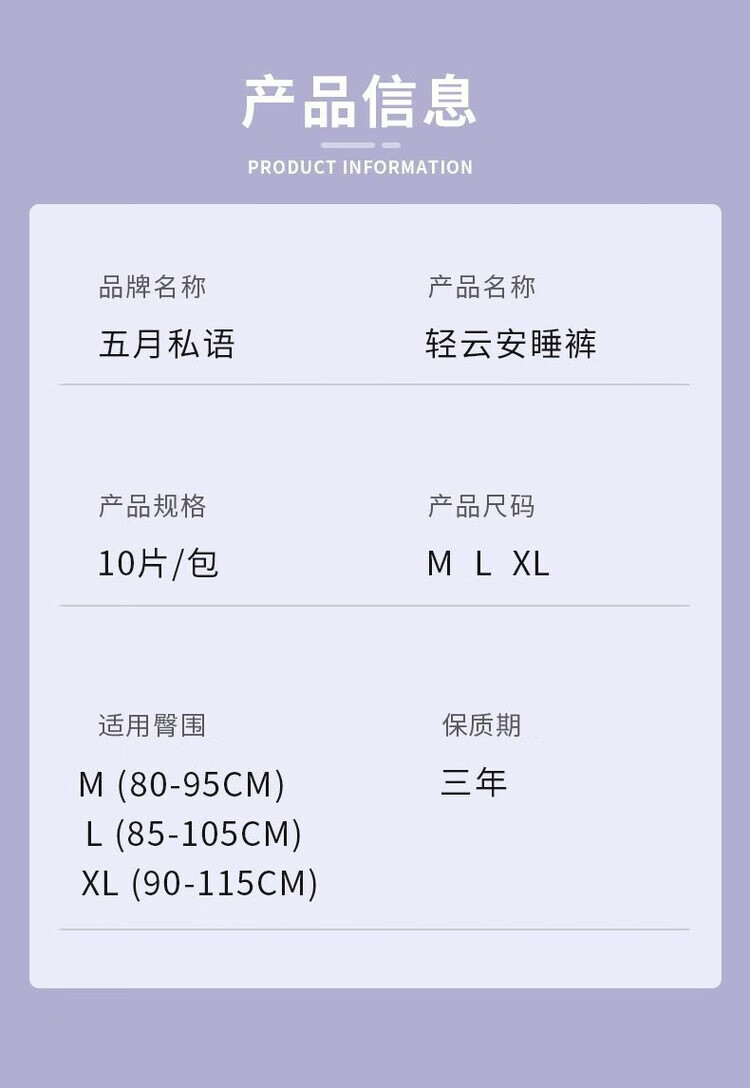 AILUKI婴舒宝×五月私语安心裤超薄透气干爽超熟睡防漏生理安全期一次性 20条【2大包】热卖装 M码:建议80-110斤