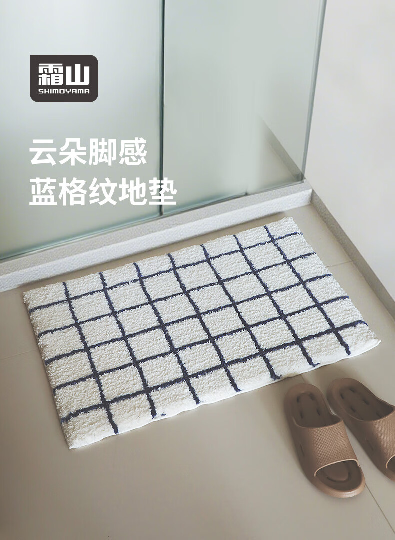 霜山卫生间地垫吸水防滑脚垫家用卧室客厅地毯简约格纹可机洗地垫 【简约格纹】大号-长76*宽48*厚1.5cm