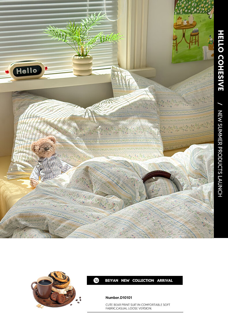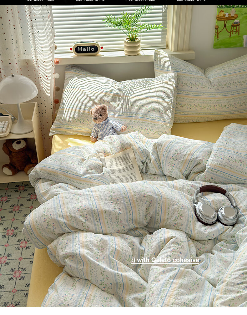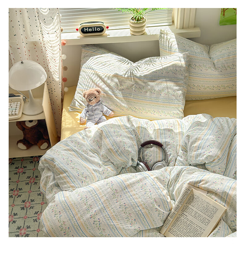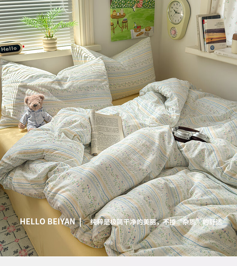 DEATKN德国2025新款A类棉双层纱布四件套全棉被套床上学生宿舍三件套被 徘徊兔兔【A类母婴级_亲肤柔软】 床单款 1.8m床四件套【被套200x230cm】