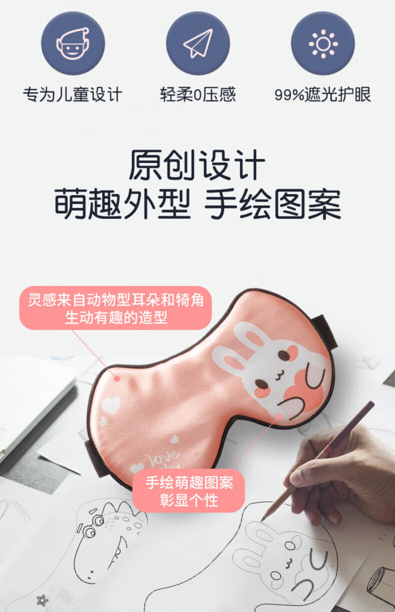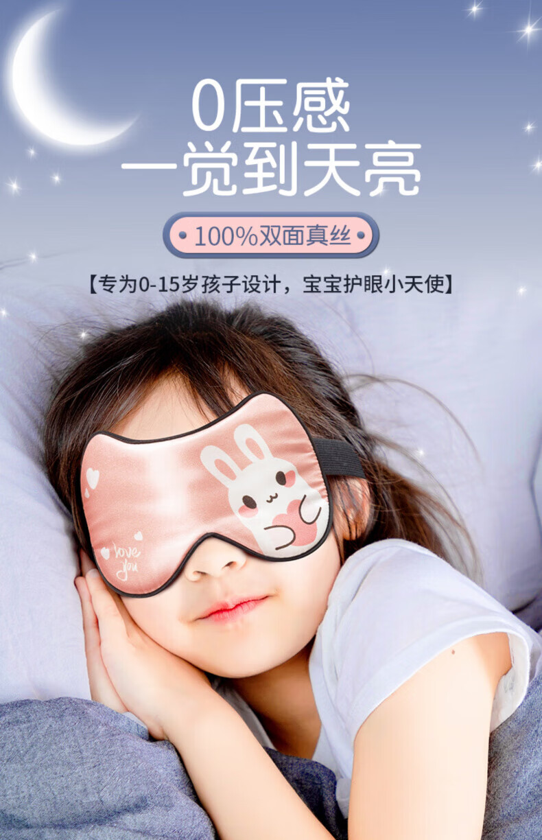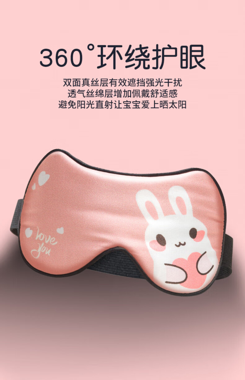 AILUKI日本护理工具儿童眼罩真丝睡眠专用遮光女童男孩小学生宝宝午睡觉 【粉兔兔】