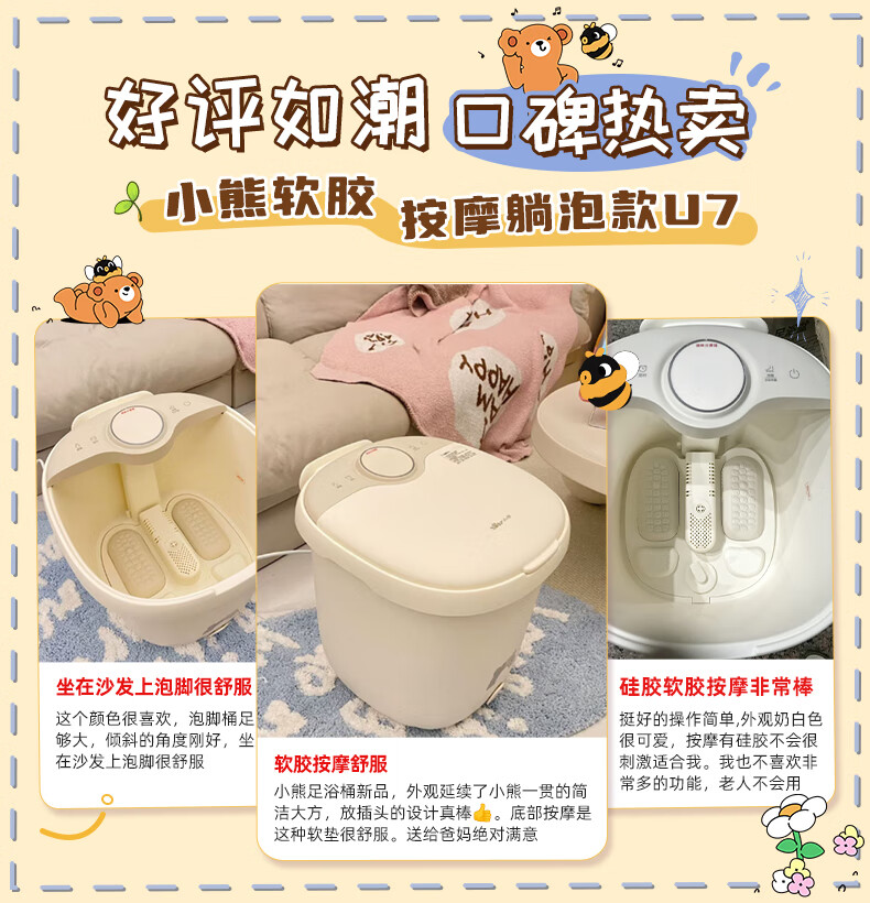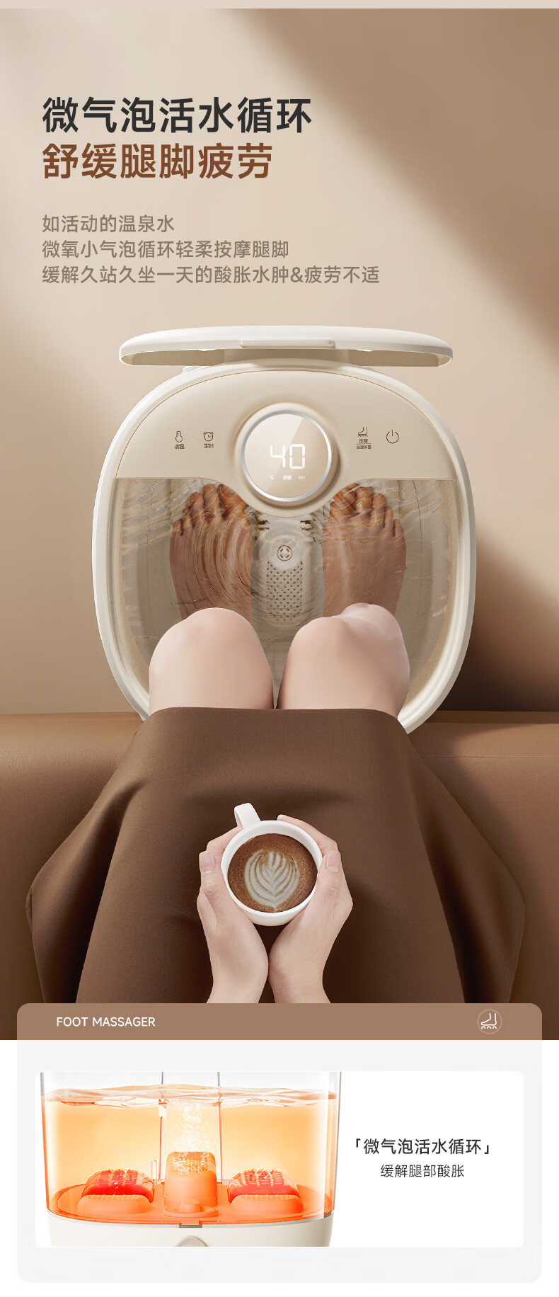 小熊(Bear)泡脚桶全自动按摩恒温加热躺泡小白桶足浴盆杀菌洗脚桶软胶洗脚盆高深桶过小腿送父母礼物国家补贴