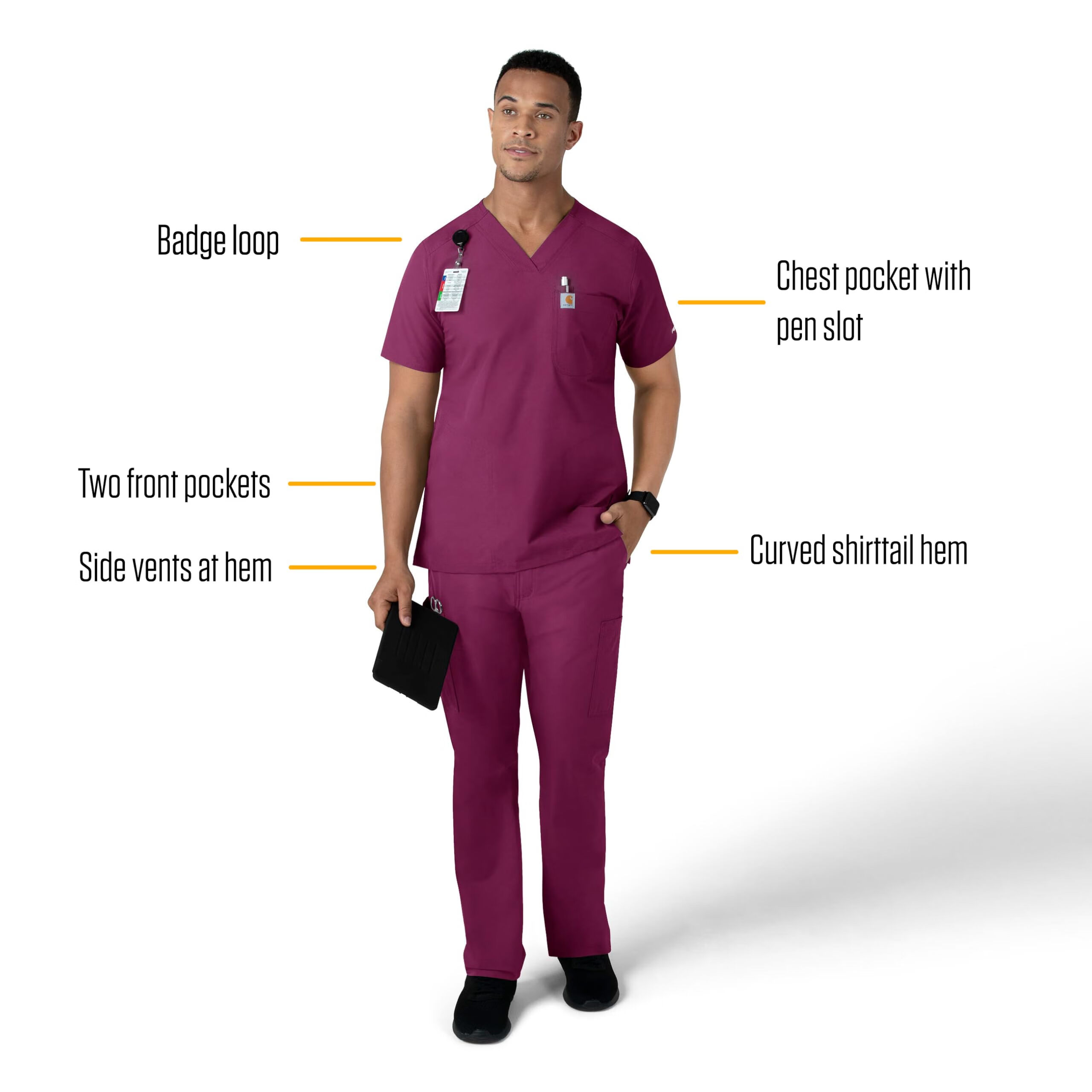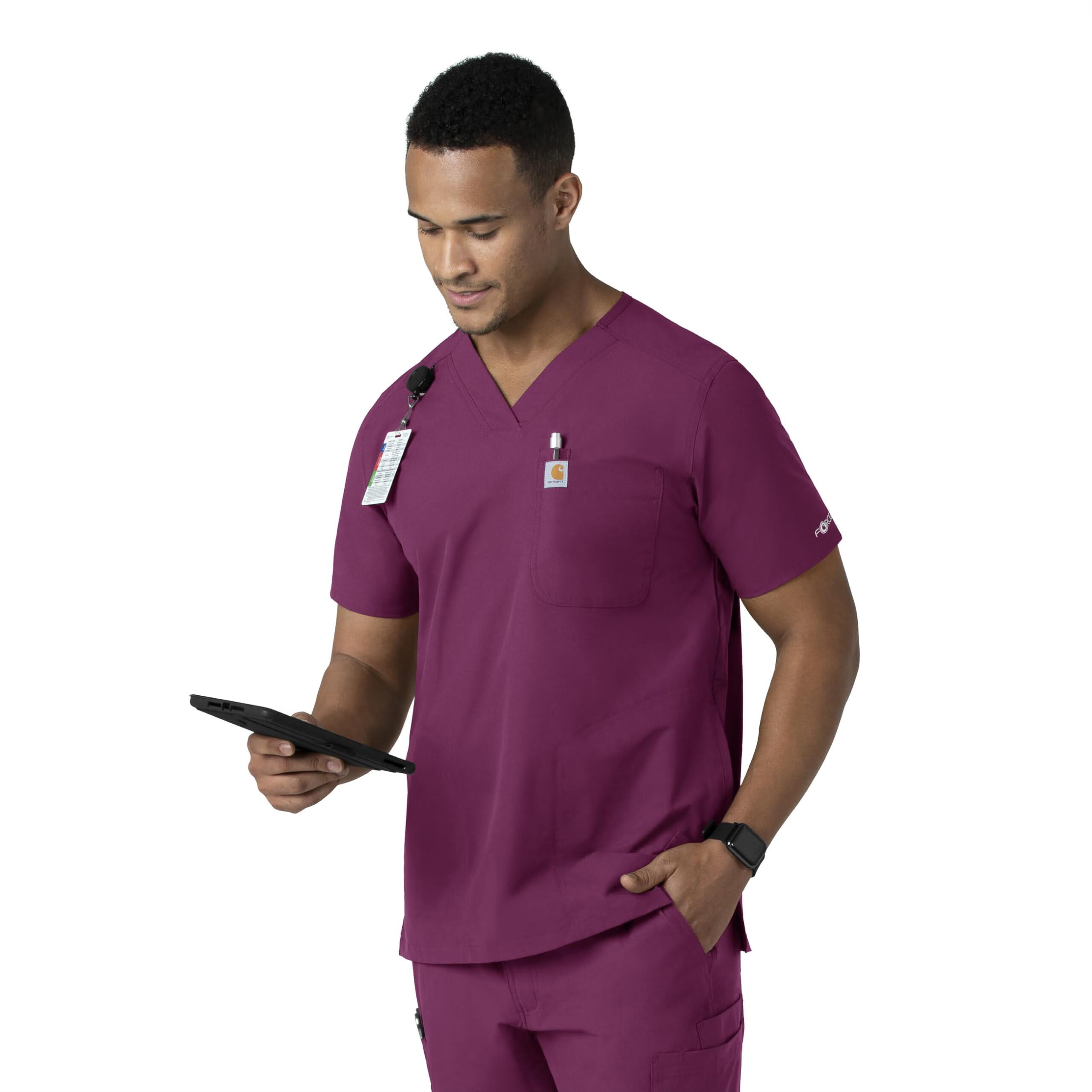 Carhartt卡哈特Carhartt 男式 Force V 领衬衫上衣, 葡萄酒色, XS 葡萄酒色 XS