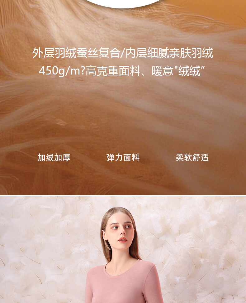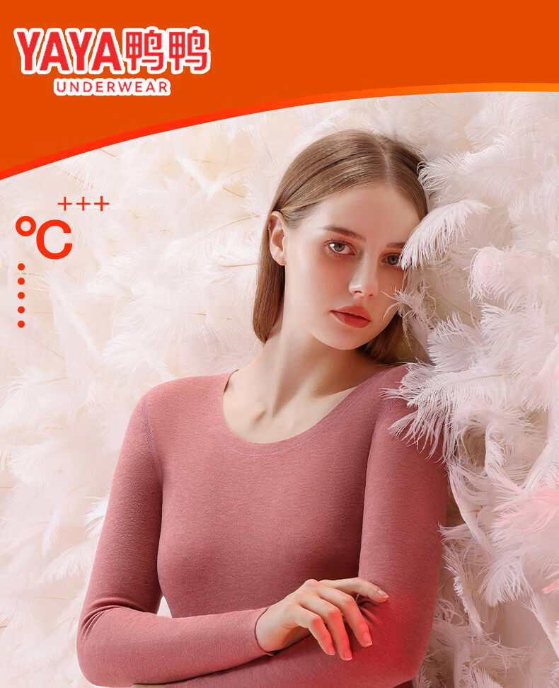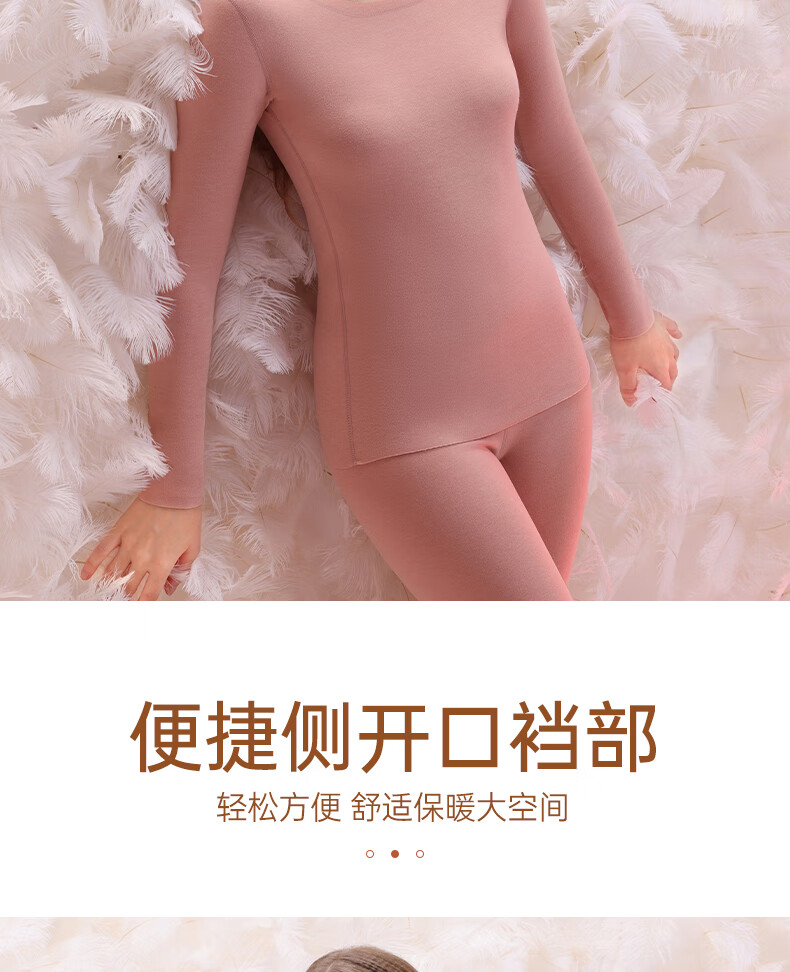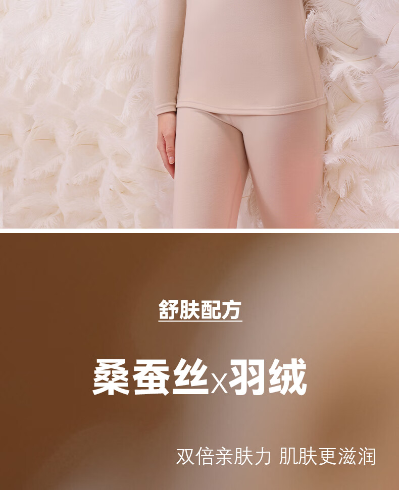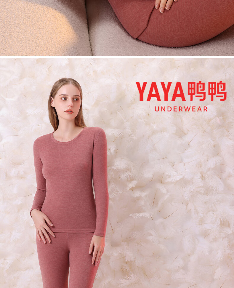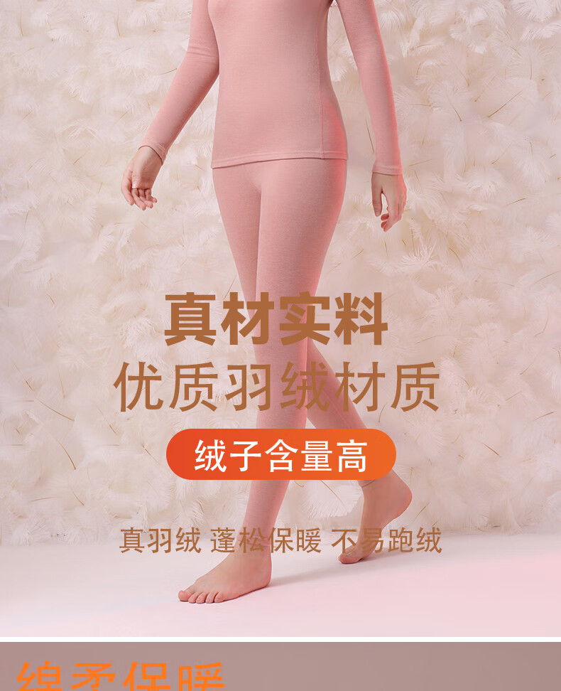 鸭鸭保暖内衣女300g鹅绒天丝套装加绒加厚德绒发热无痕打底秋衣秋裤