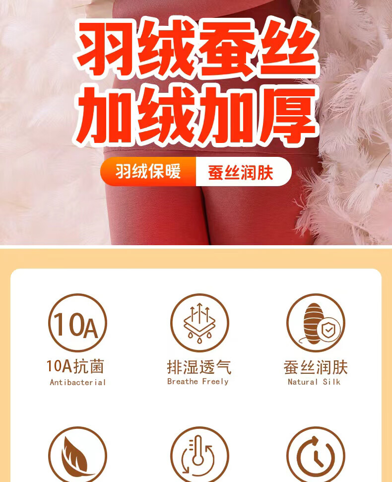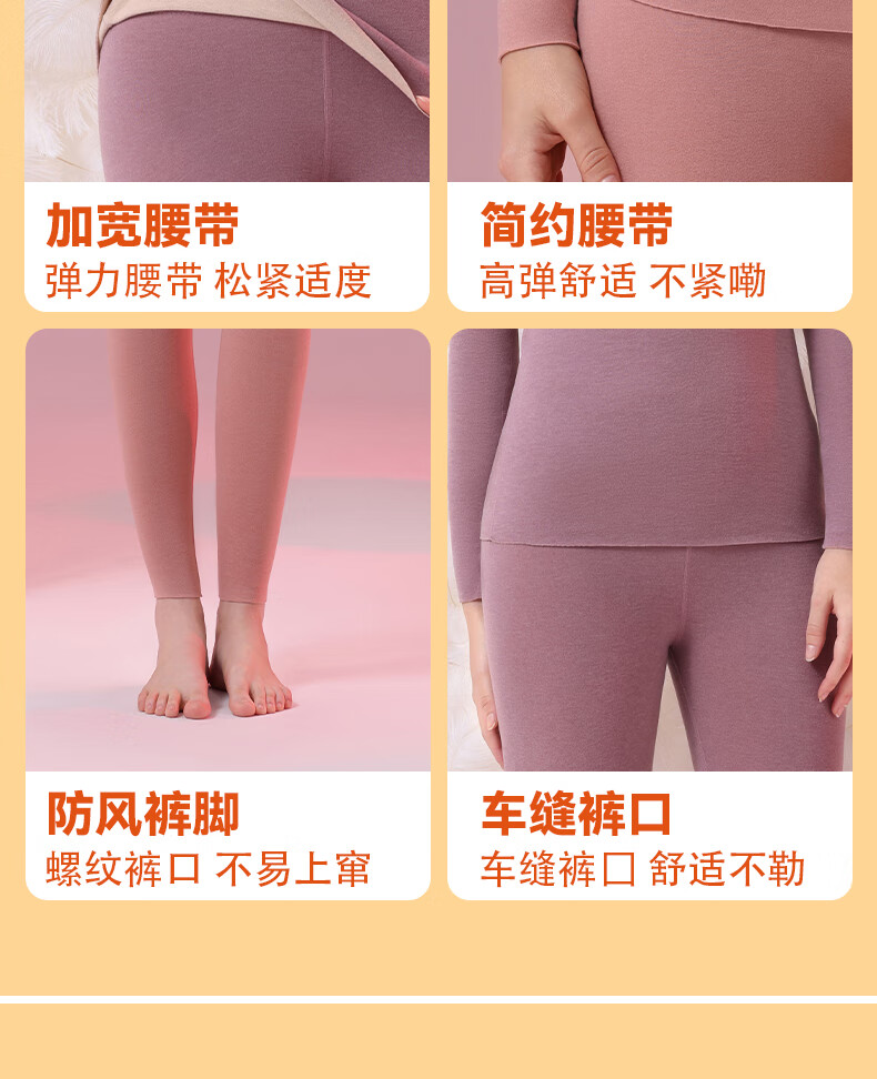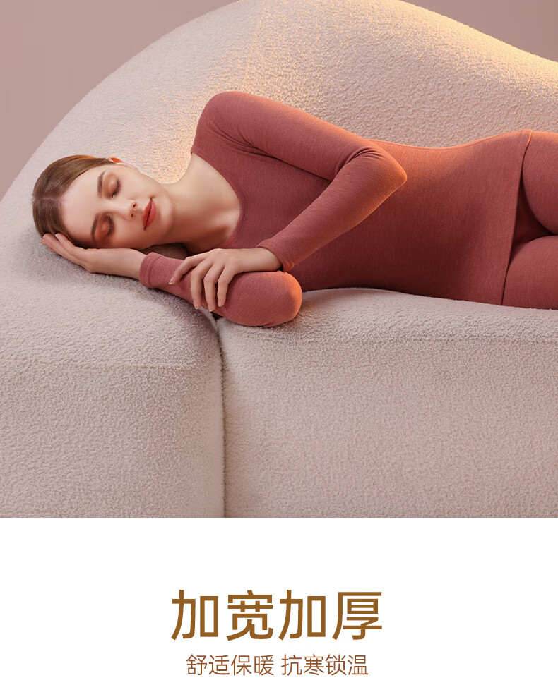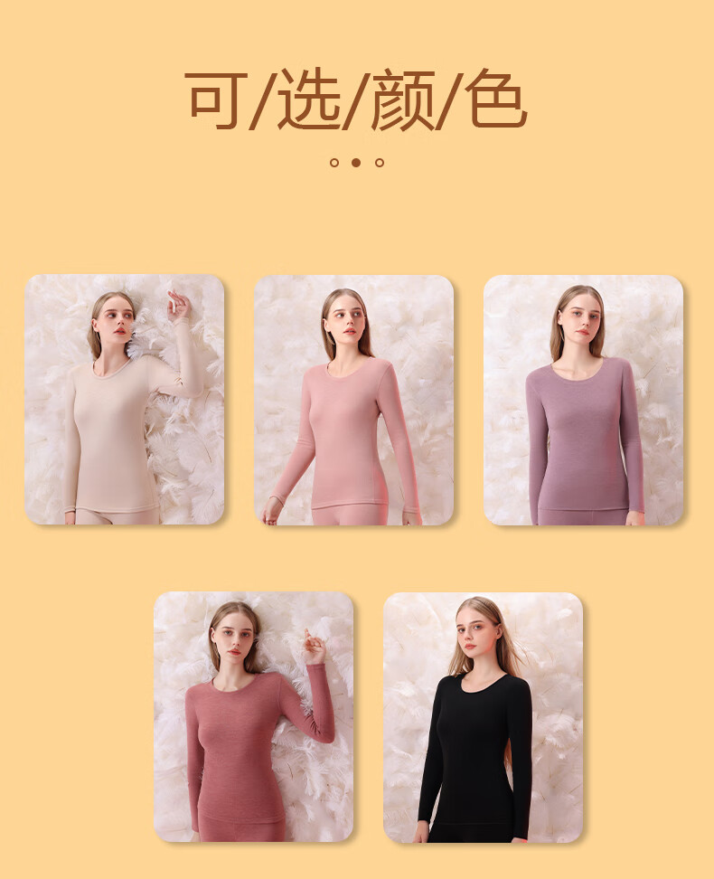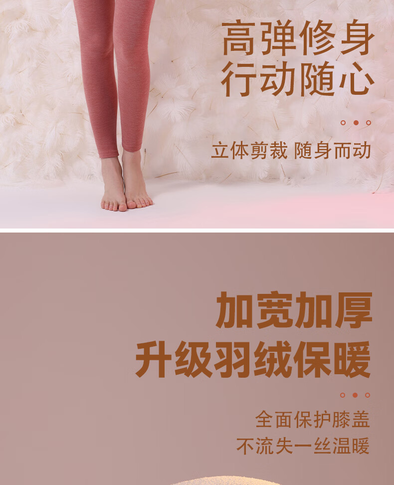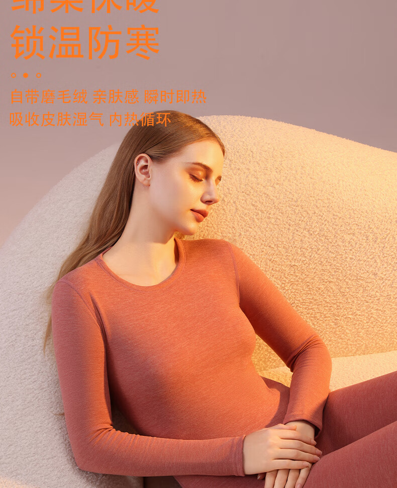 鸭鸭保暖内衣女300g鹅绒天丝套装加绒加厚德绒发热无痕打底秋衣秋裤