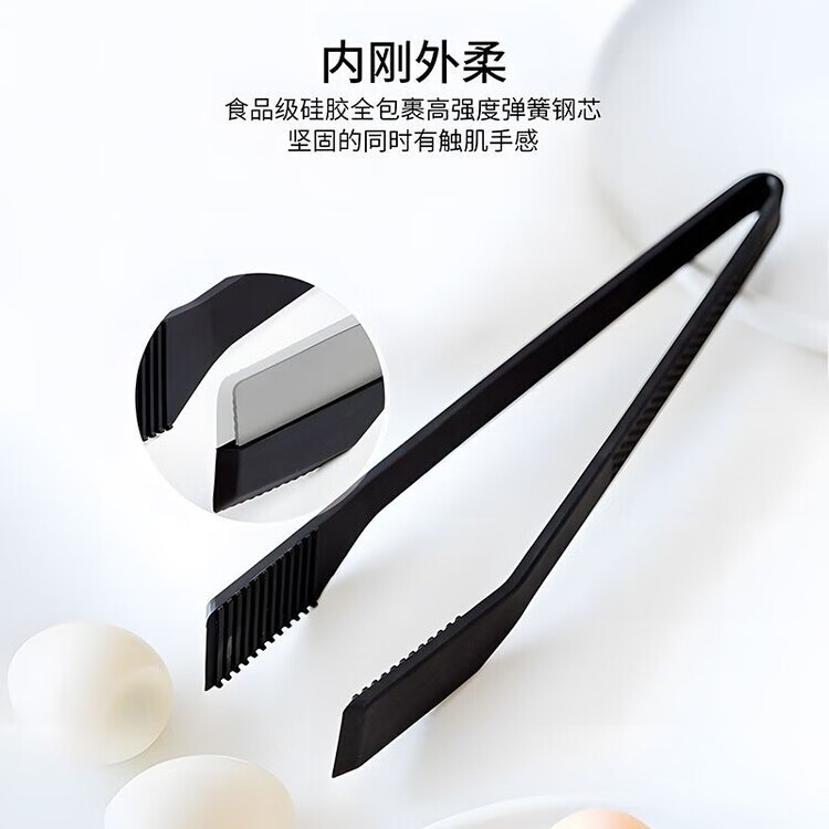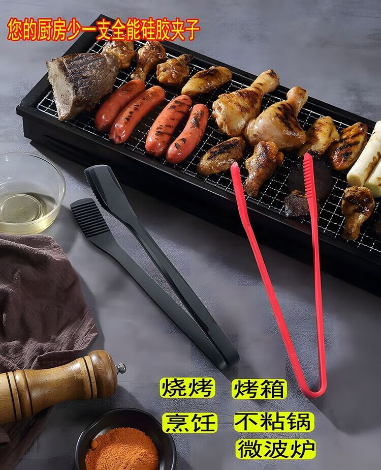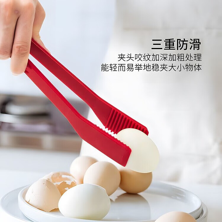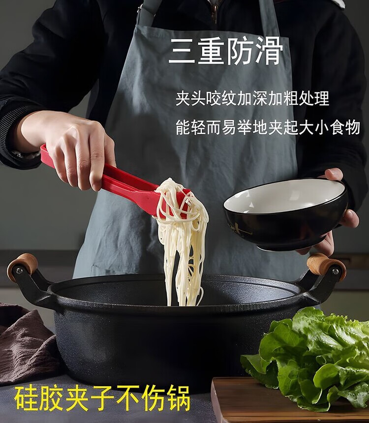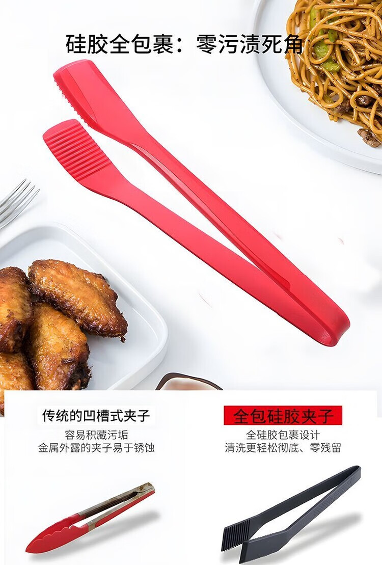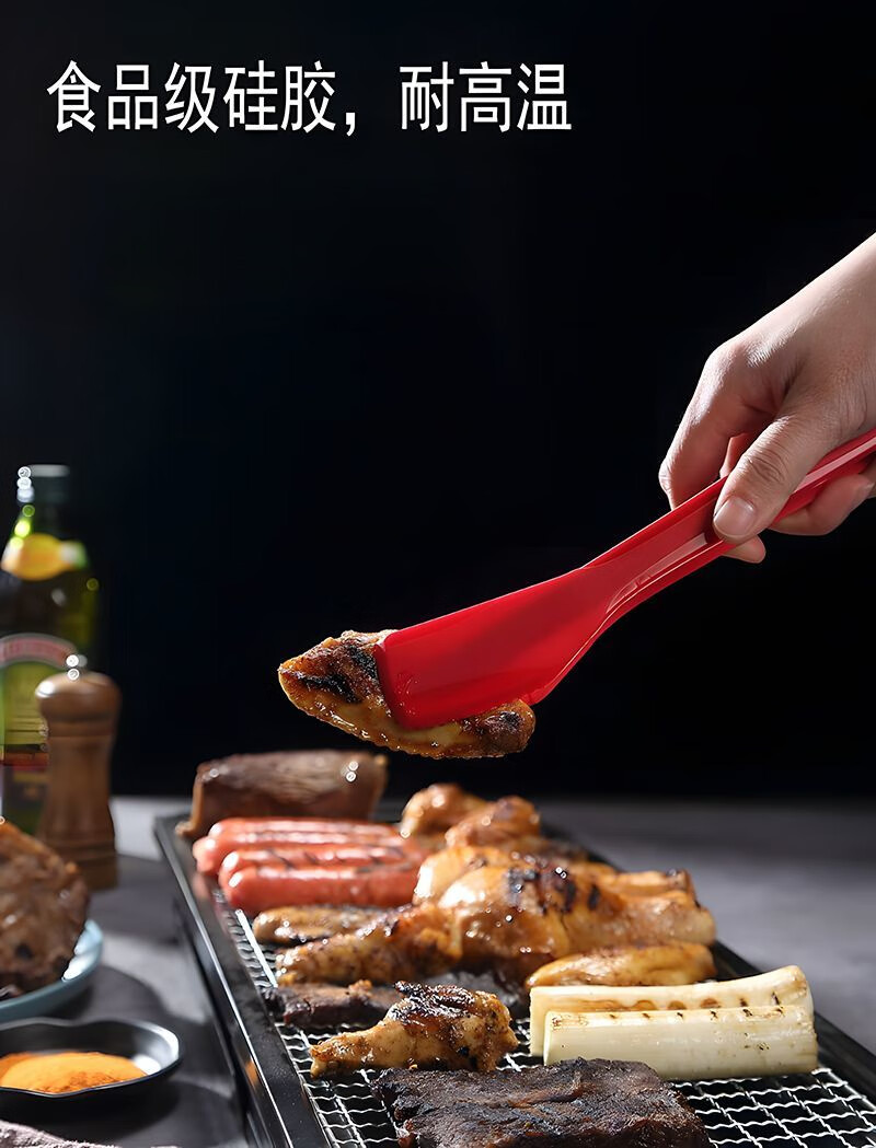 简漾食品级耐高温硅胶烤夹厨房烧烤牛排面包专用 食品级红色 全包食物夹