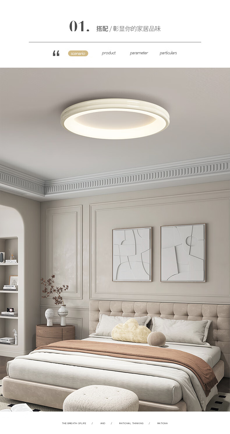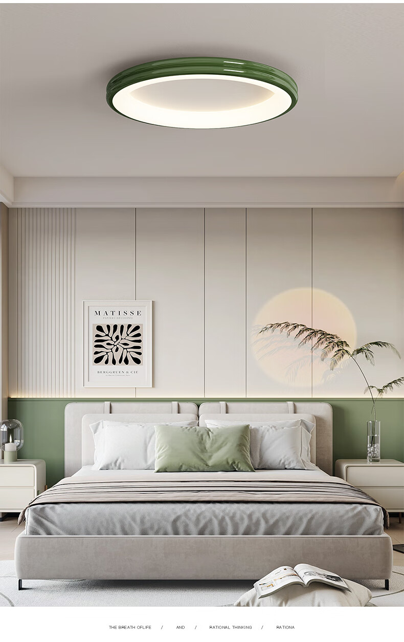 源氏木语卧室吸顶灯具现代简约彩色儿童房间灯全光谱护眼书房灯圆灯 白色40CM全光谱高亮-三色变光