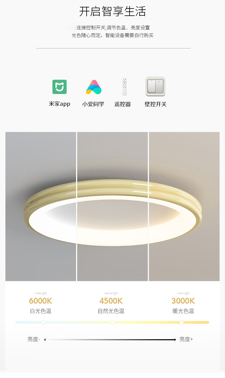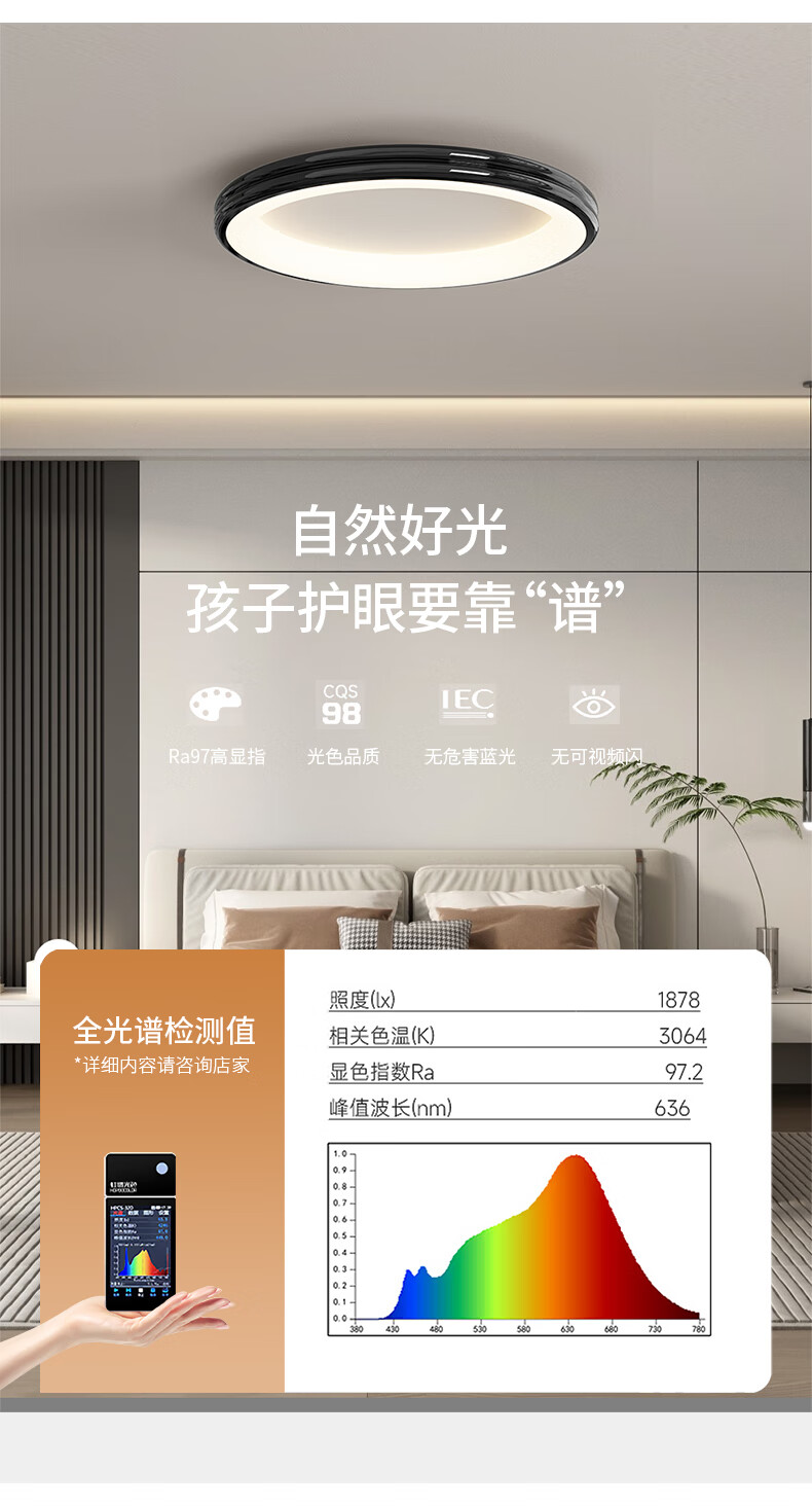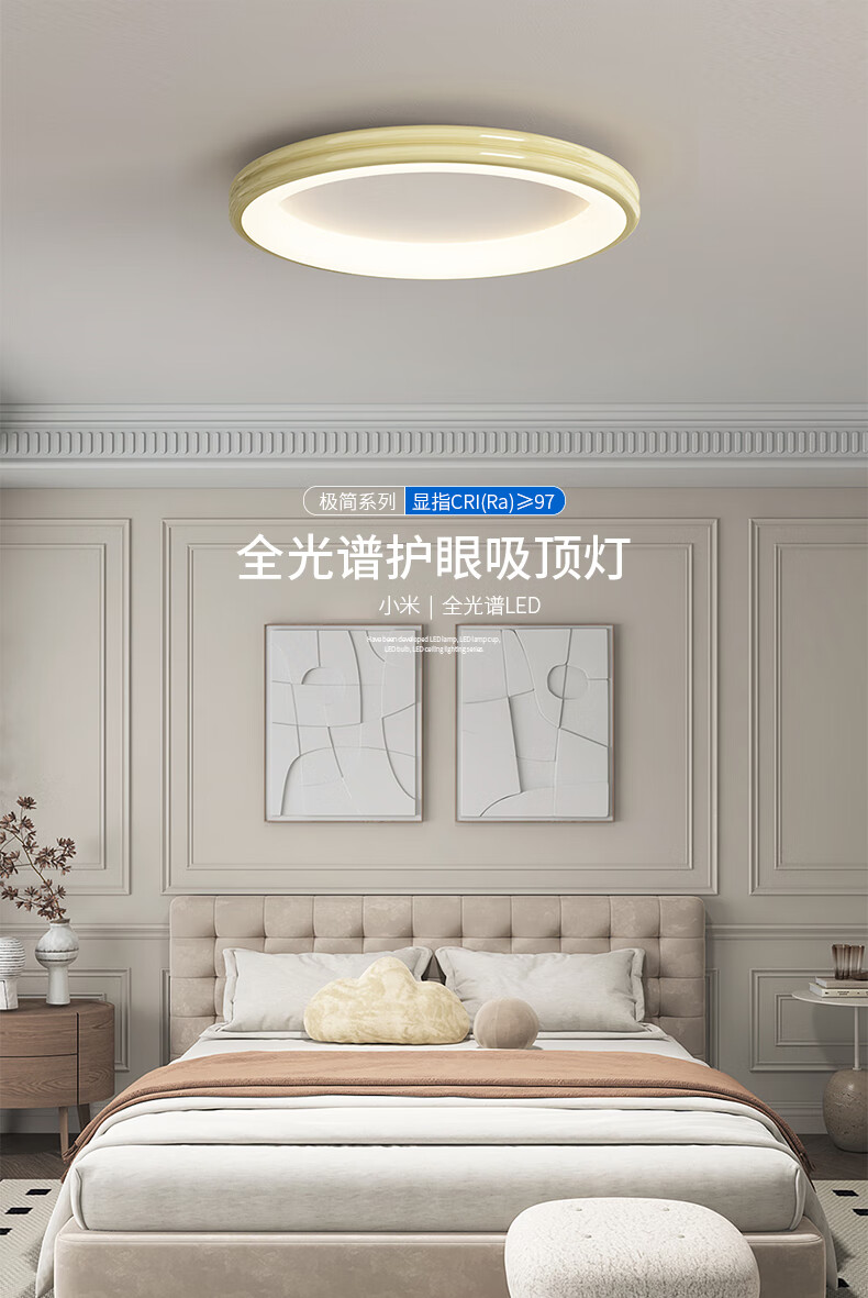 惠普普瑞护眼超薄无缝隙卧室吸顶灯智能儿童房灯中山灯具晨之光包安装