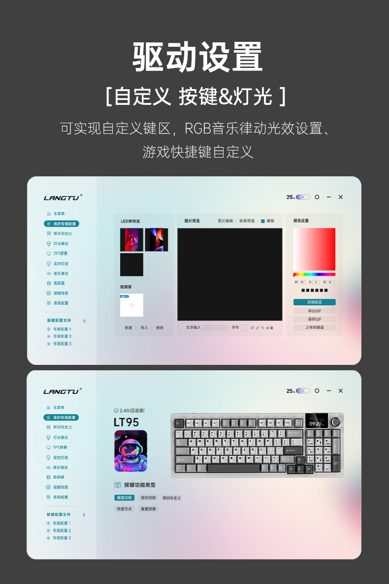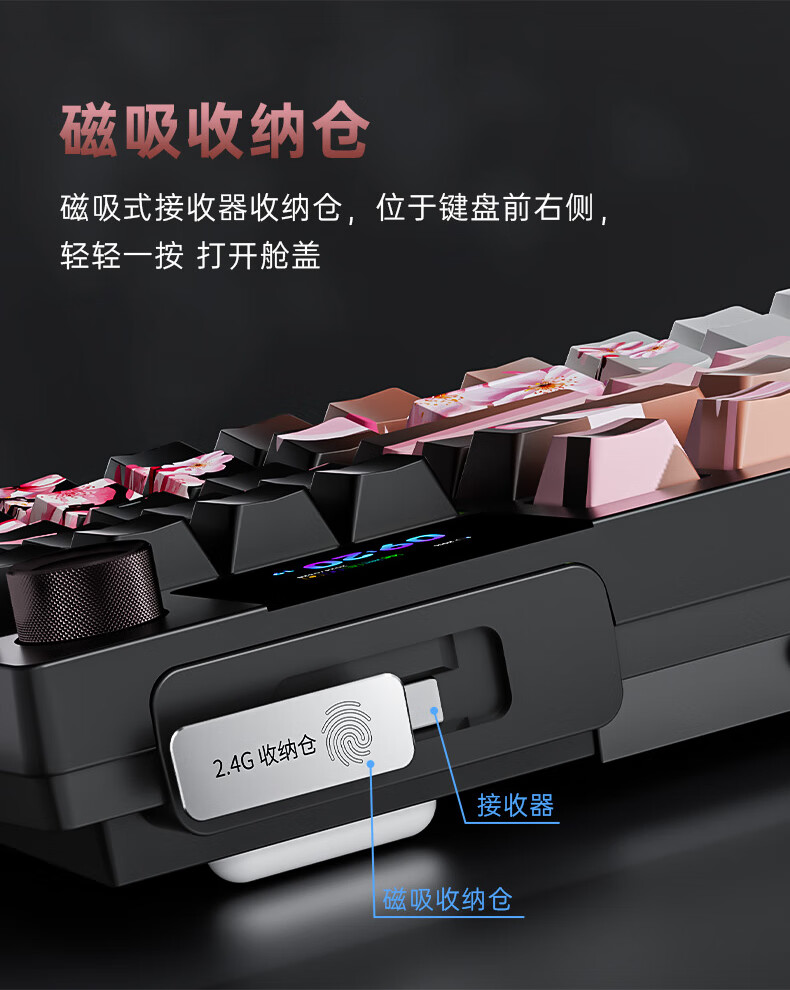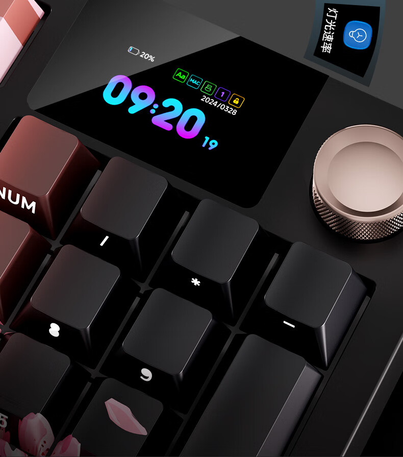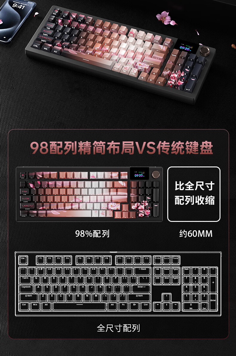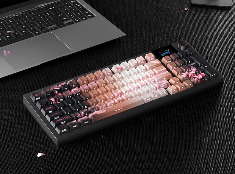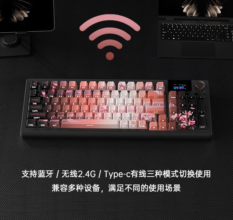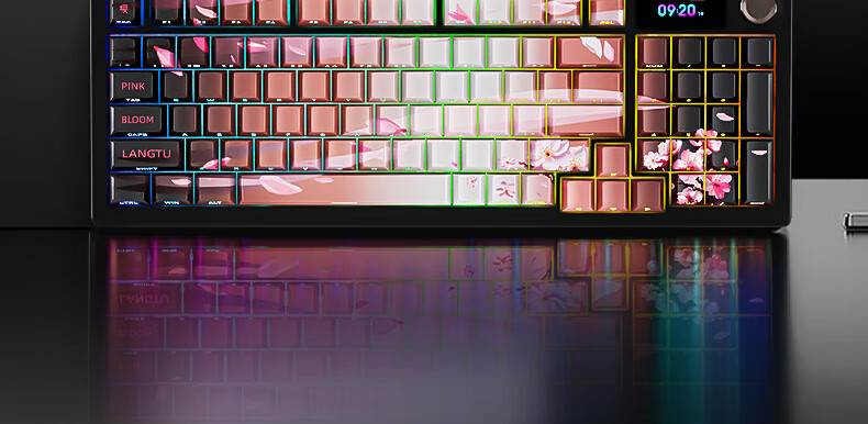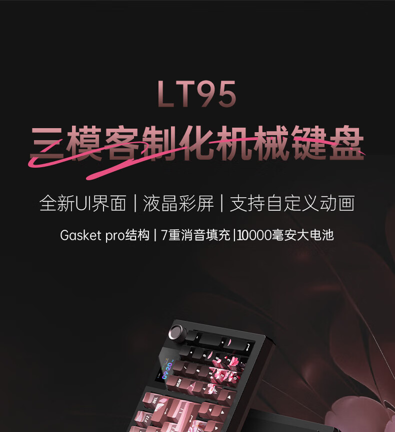 狼途(Langtu)LT95夜樱 有线/无线/蓝牙三模机械键盘 Gasket结构 RGB灯效 液晶彩屏 10000mAh 翠音轴