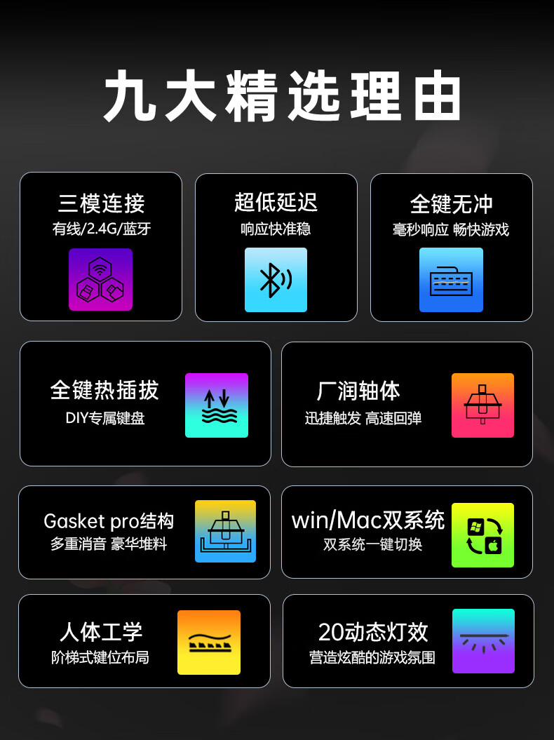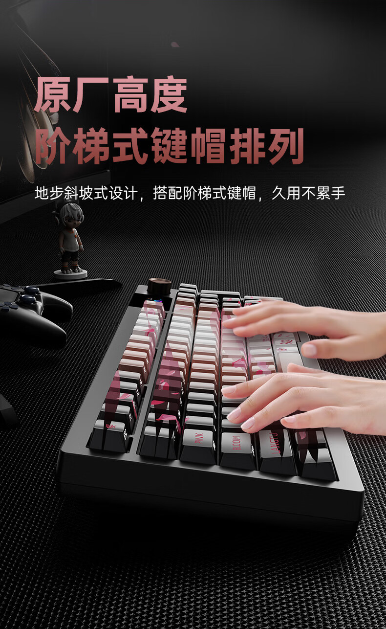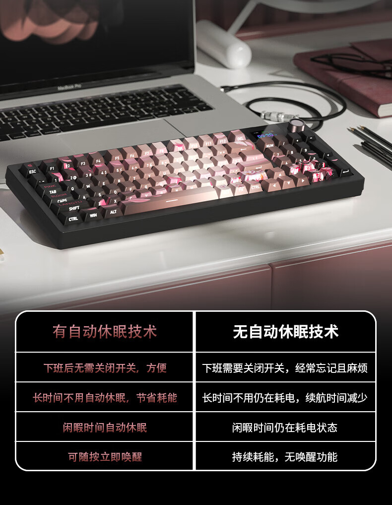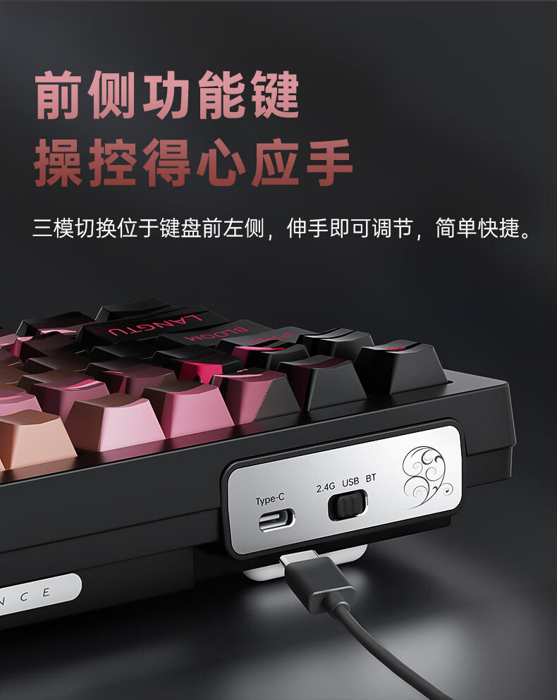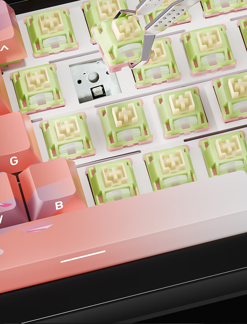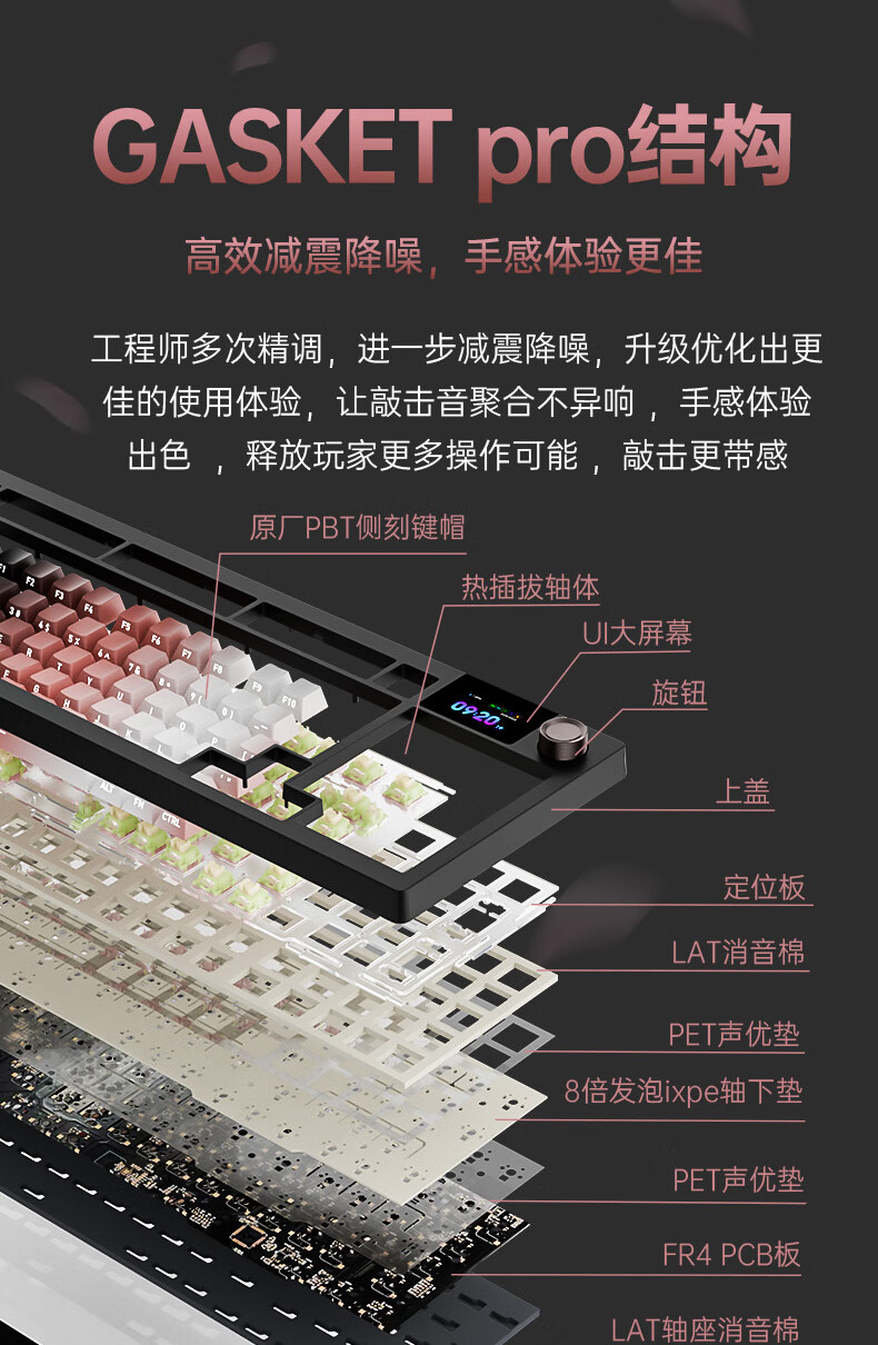 狼途(Langtu)LT95夜樱 有线/无线/蓝牙三模机械键盘 Gasket结构 RGB灯效 液晶彩屏 10000mAh 翠音轴