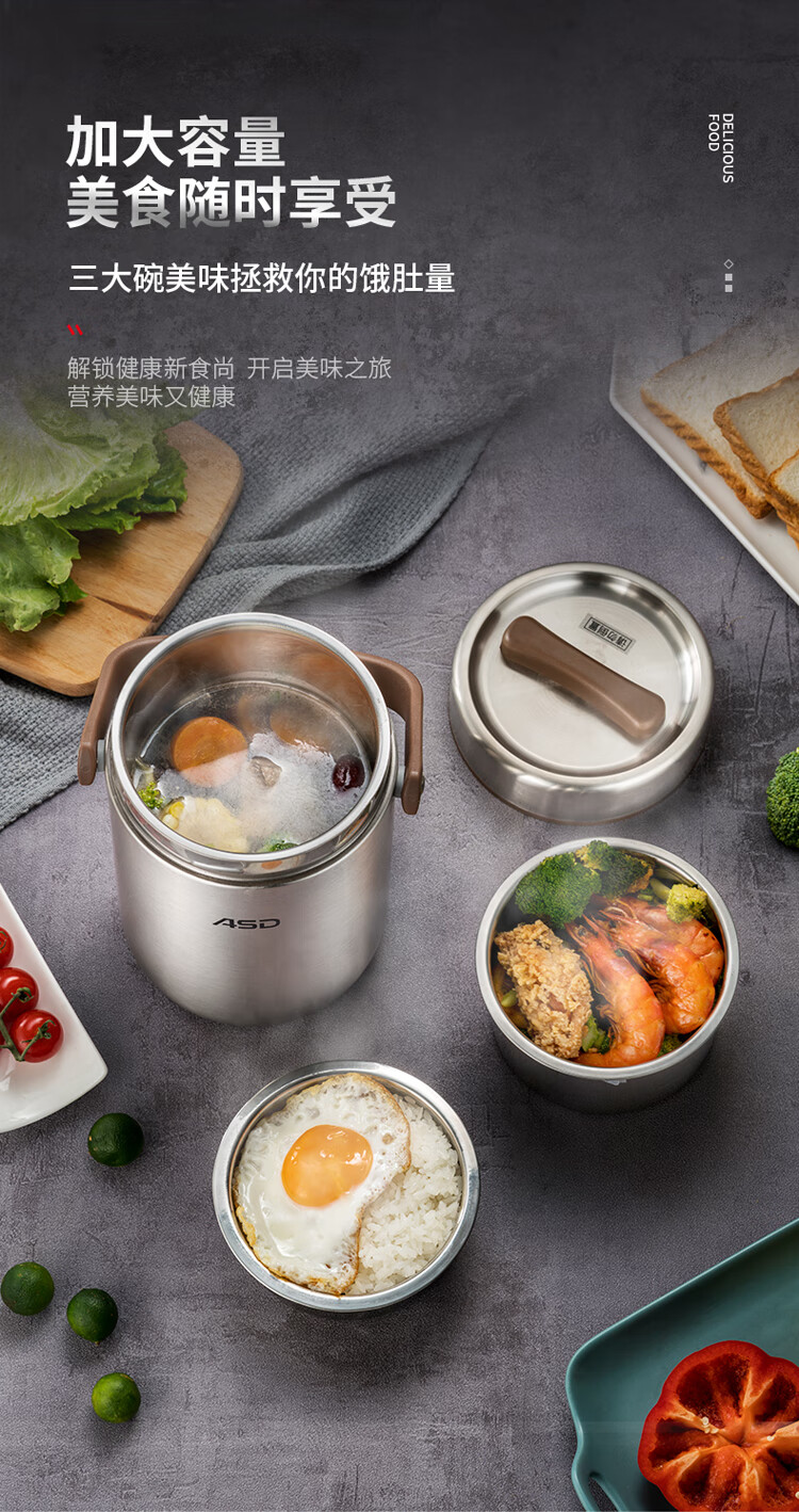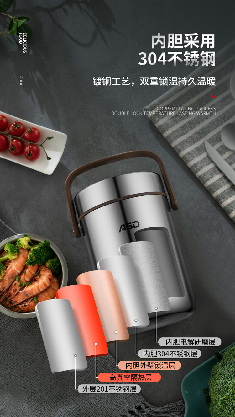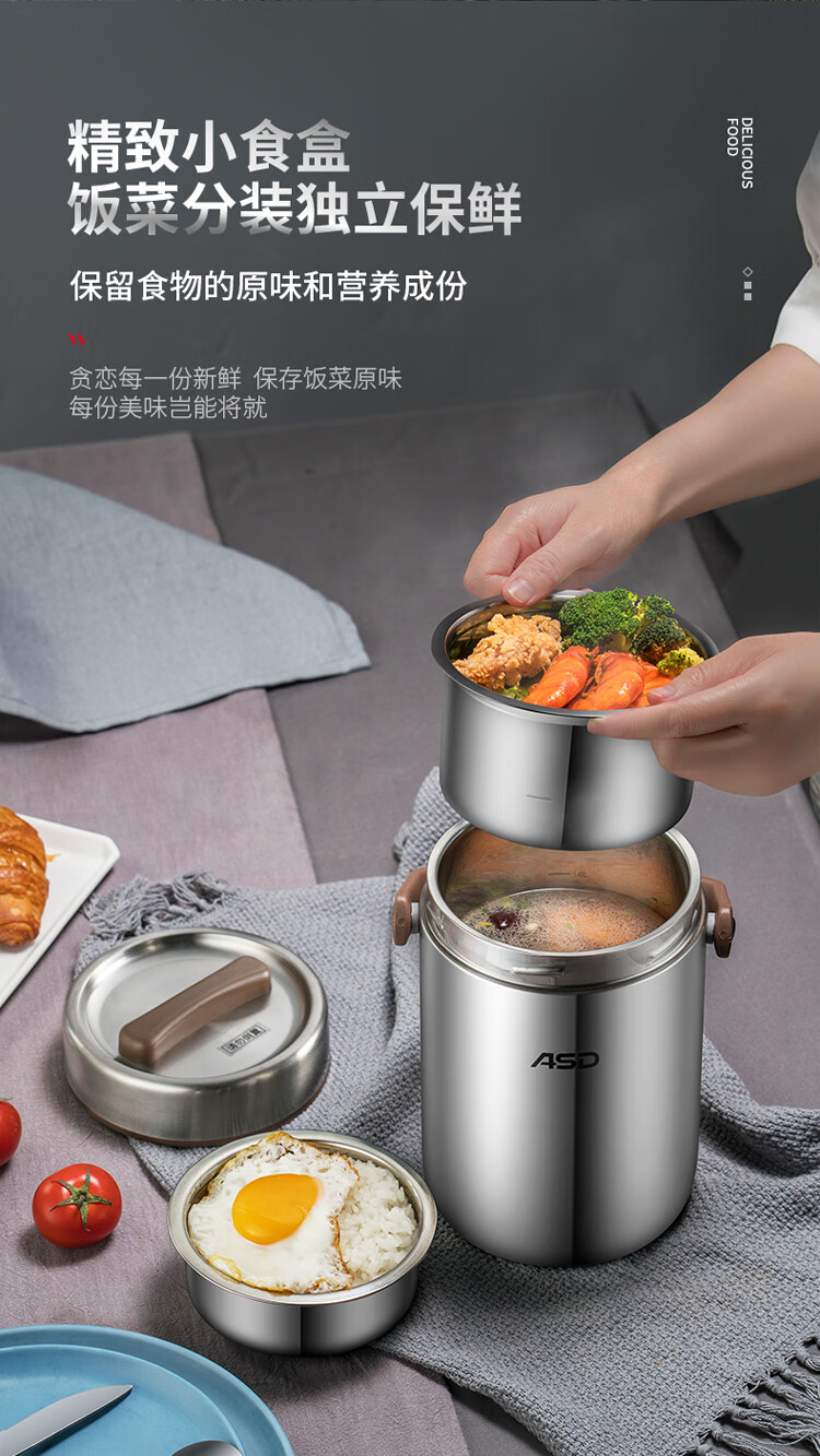 爱仕达饭盒保温提锅304不锈钢真空保温桶2L便携保温便当盒 RWS20T3WG-T