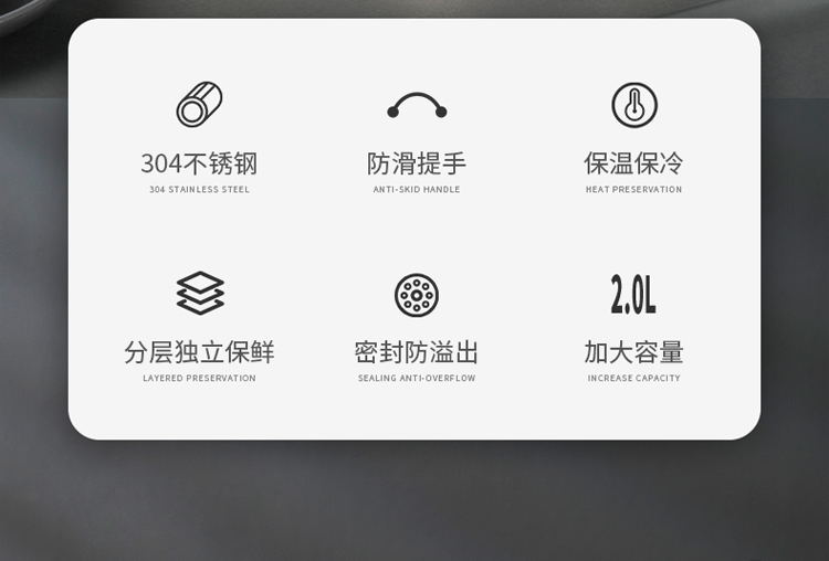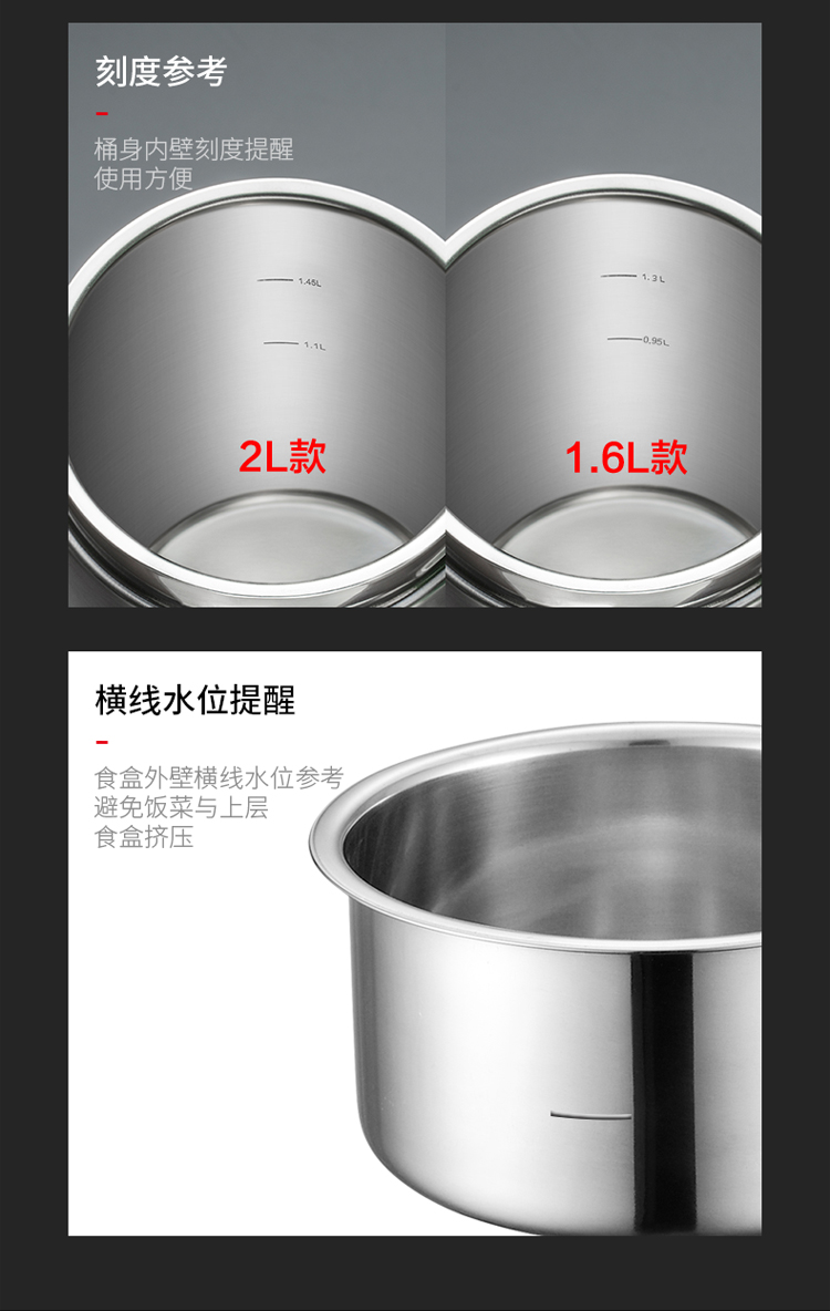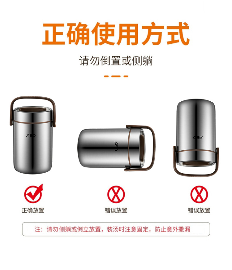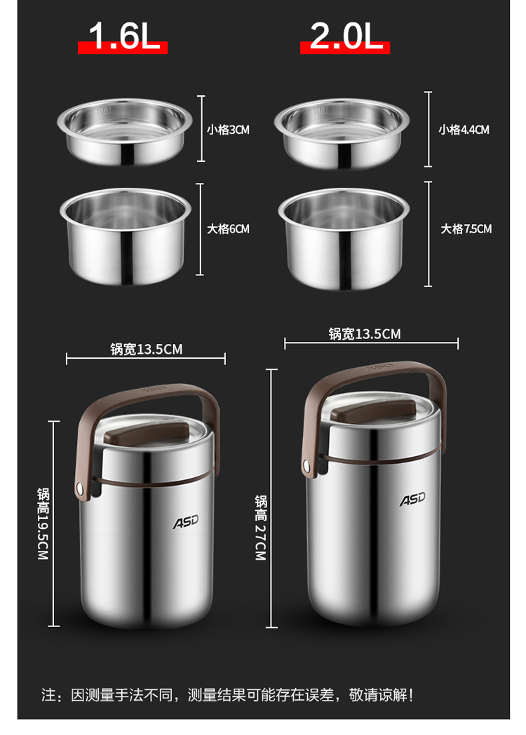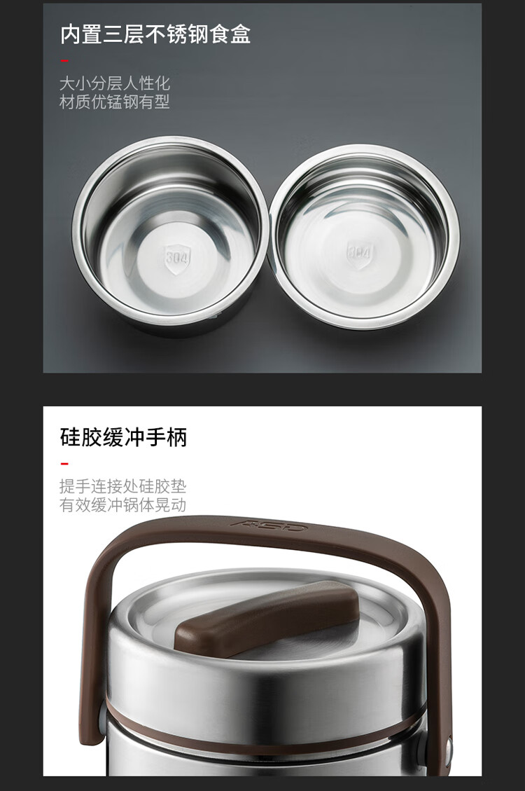 爱仕达饭盒保温提锅304不锈钢真空保温桶2L便携保温便当盒 RWS20T3WG-T