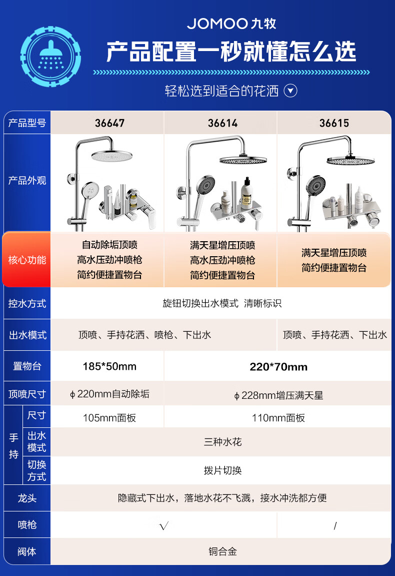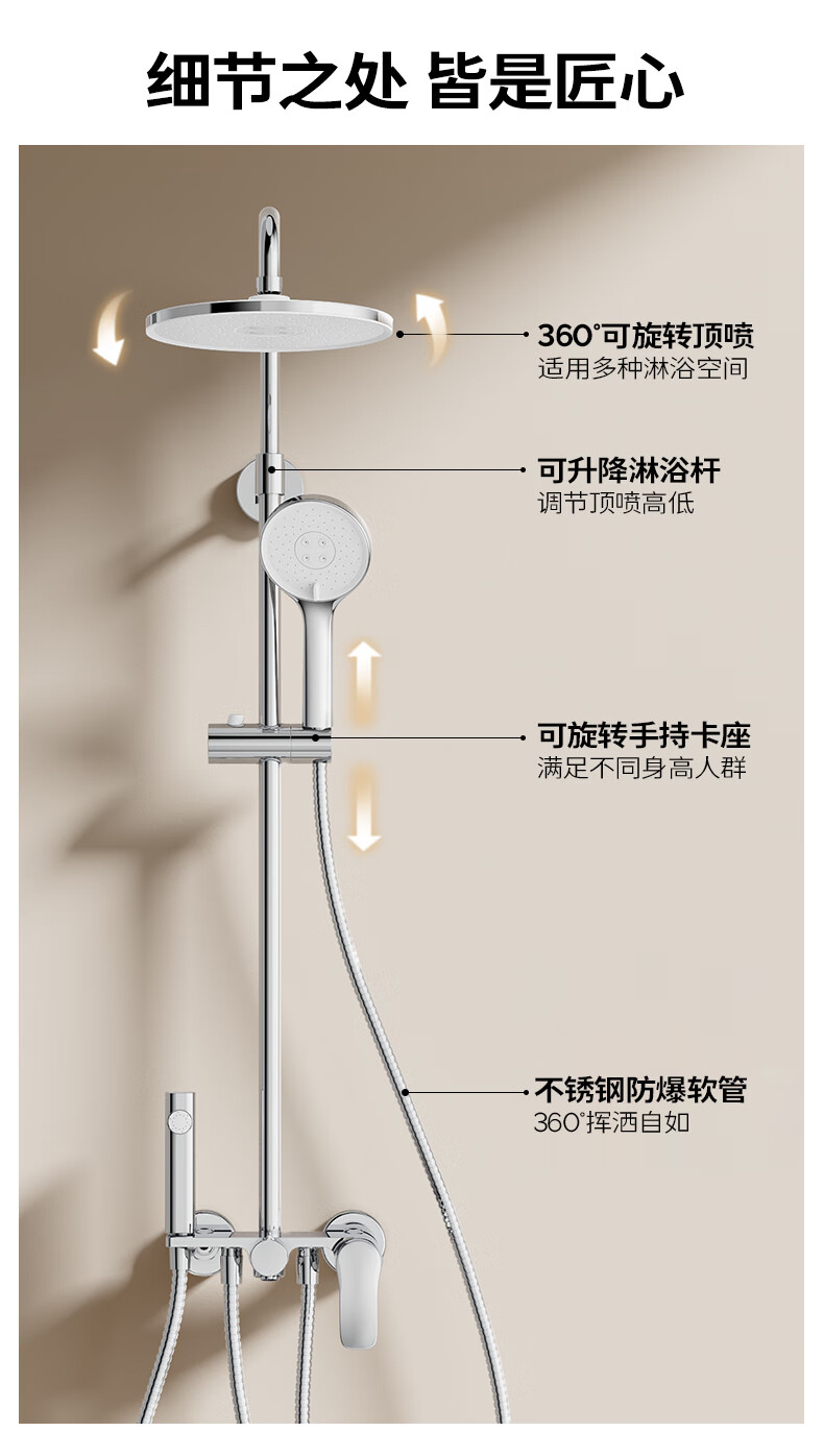 九牧(JOMOO)淋浴花洒套装喷头防爆龙头升降淋浴器花洒全套 【自洁顶喷】36647喷枪款