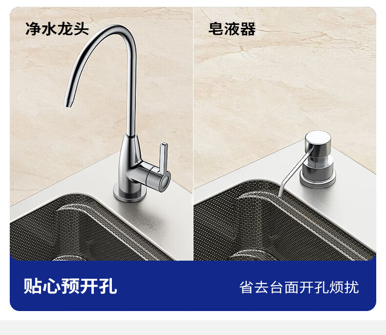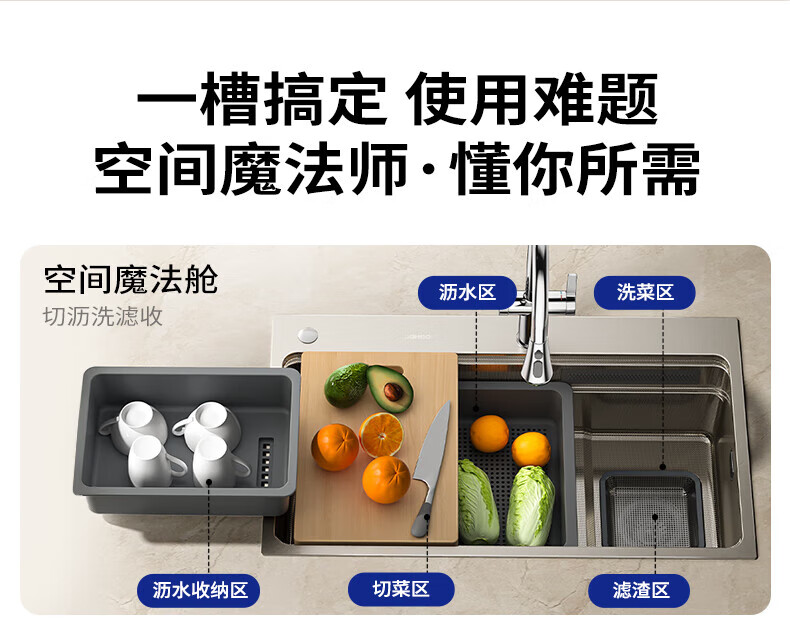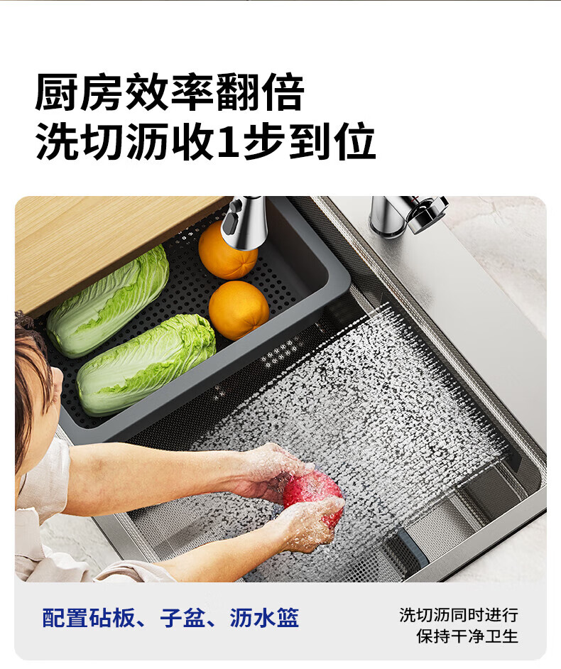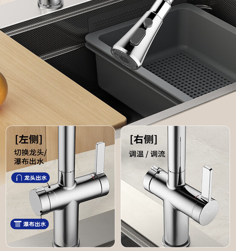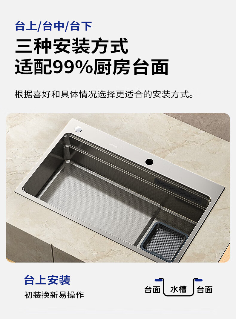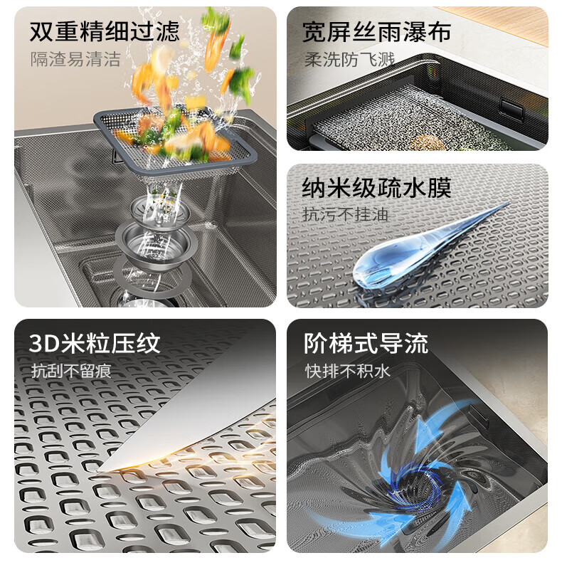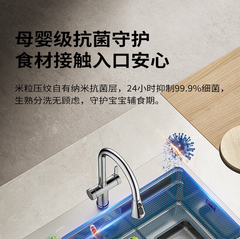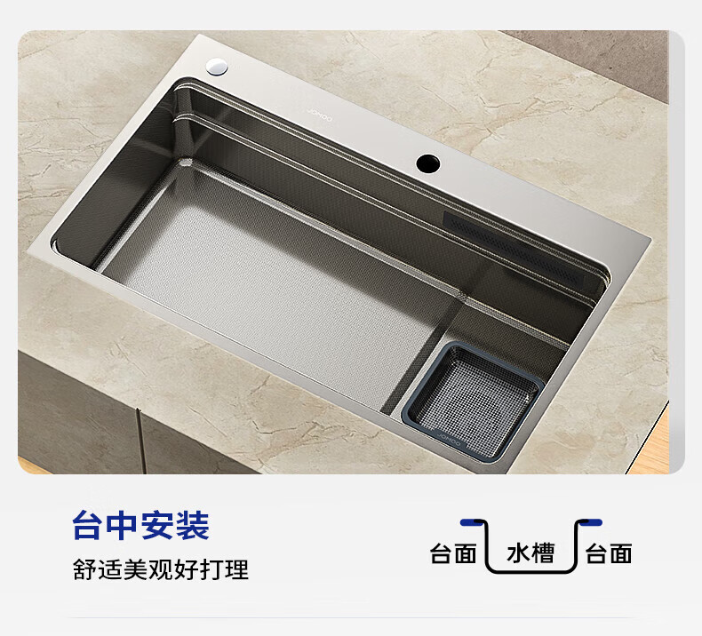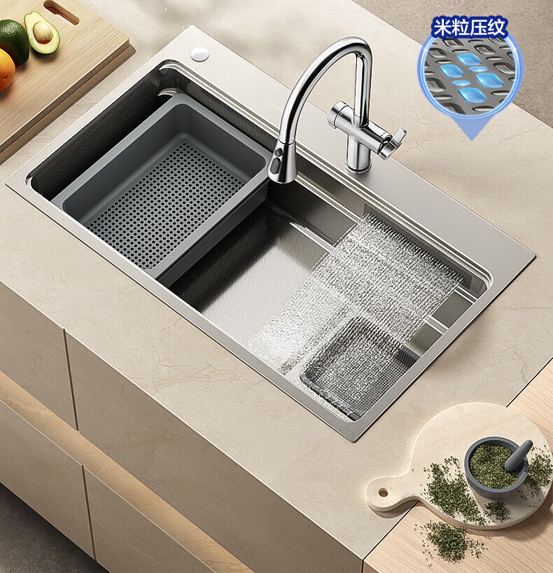 九牧(JOMOO)水槽大单槽飞雨瀑布厨房水槽抗刮压纹洗菜盆一体盆不锈钢洗碗槽 70*48纳米压纹【飞雨瀑布】含龙头