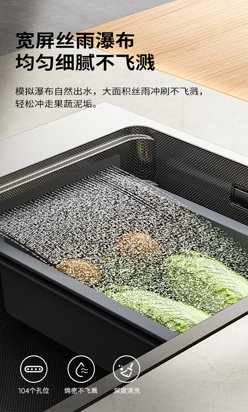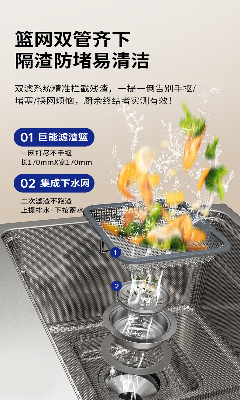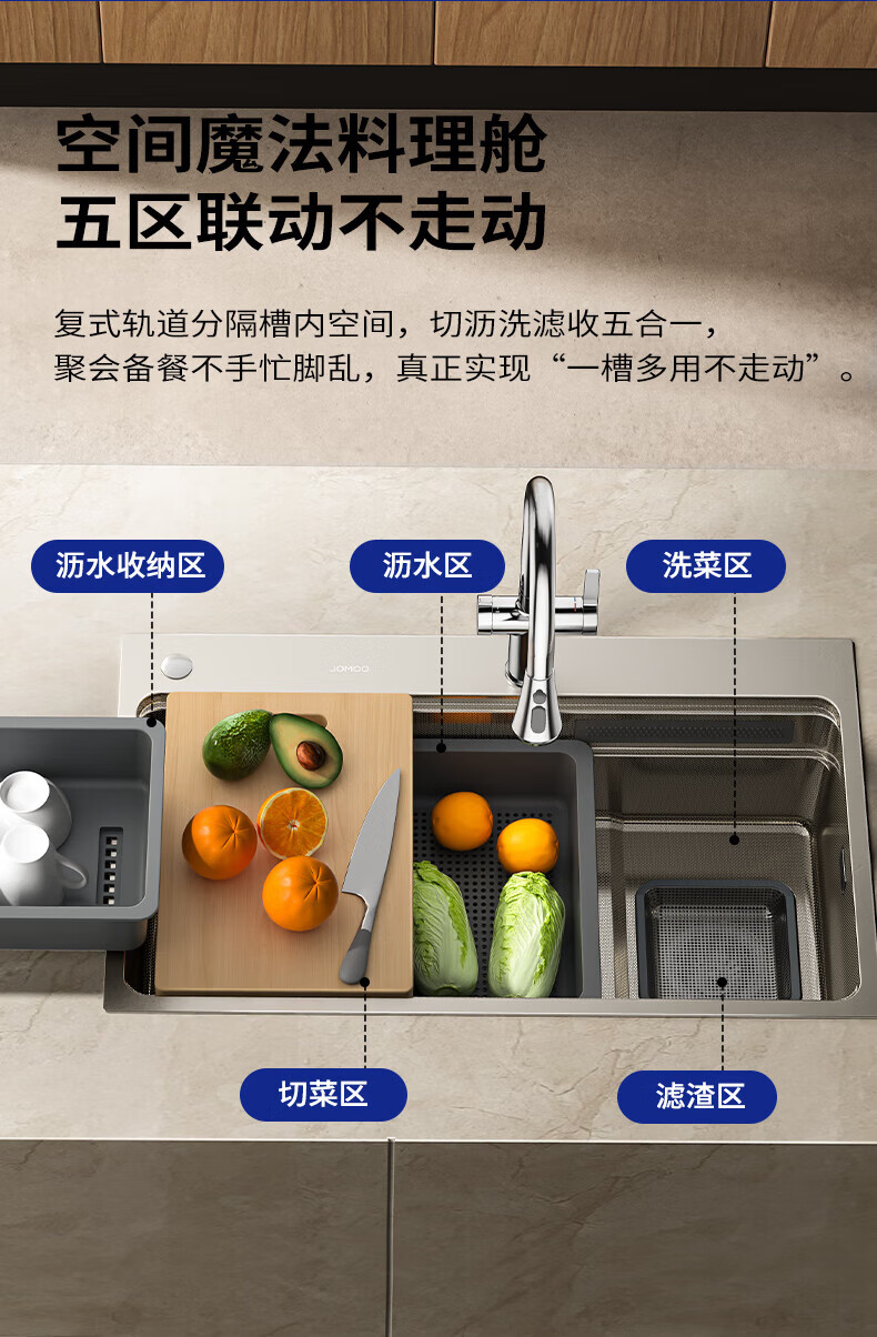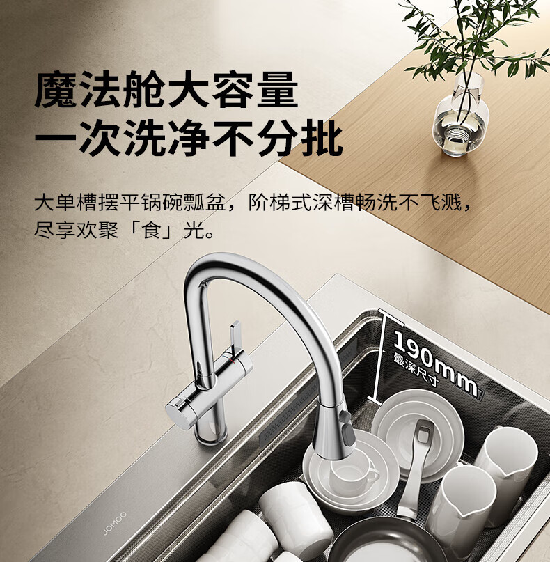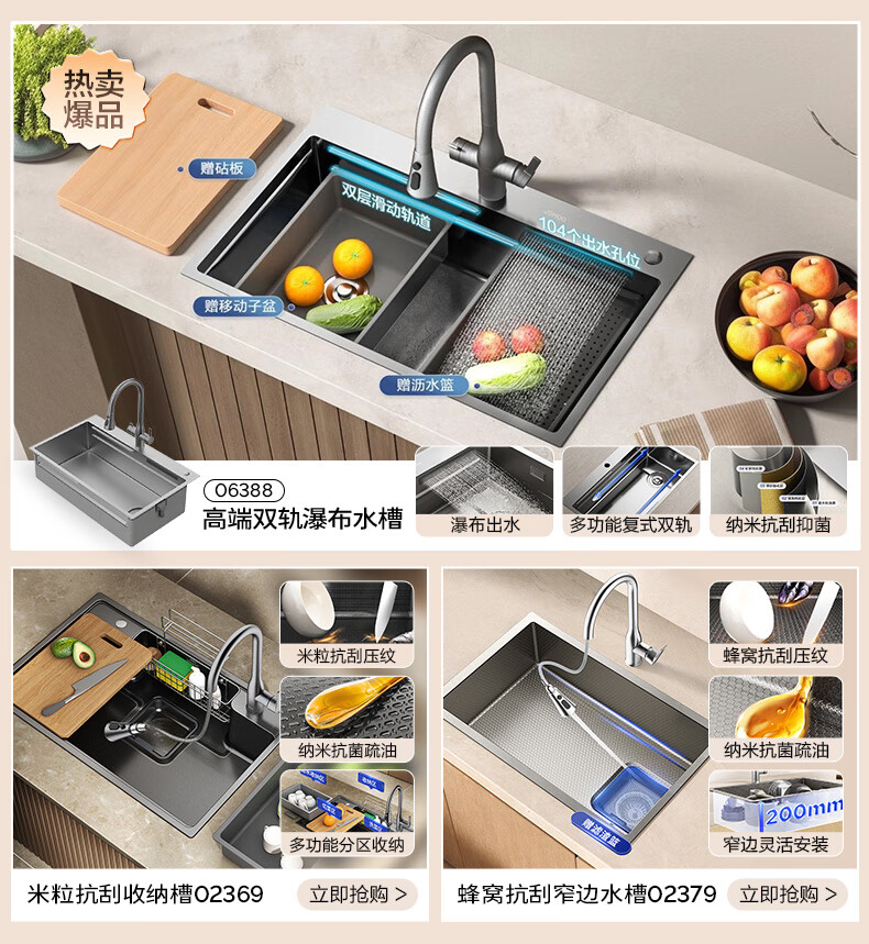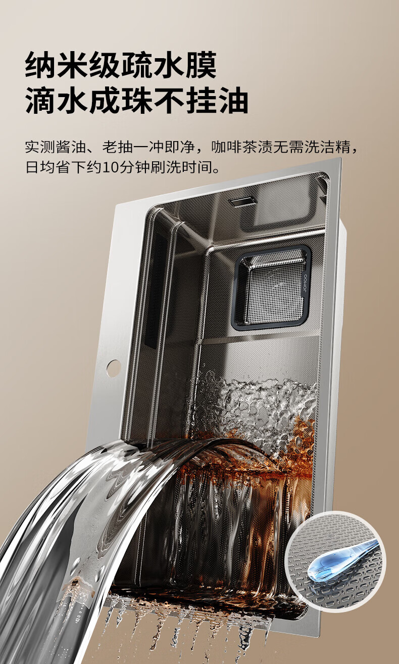 九牧(JOMOO)水槽大单槽飞雨瀑布厨房水槽抗刮压纹洗菜盆一体盆不锈钢洗碗槽 70*48纳米压纹【飞雨瀑布】含龙头