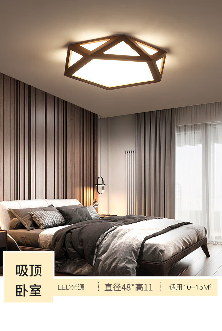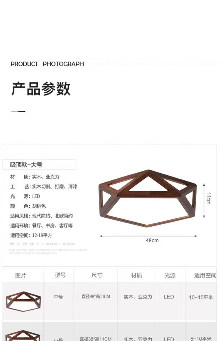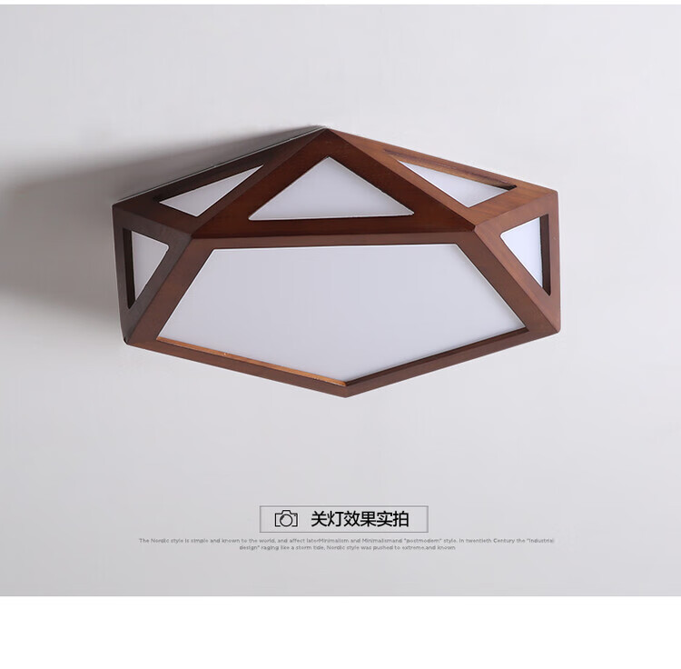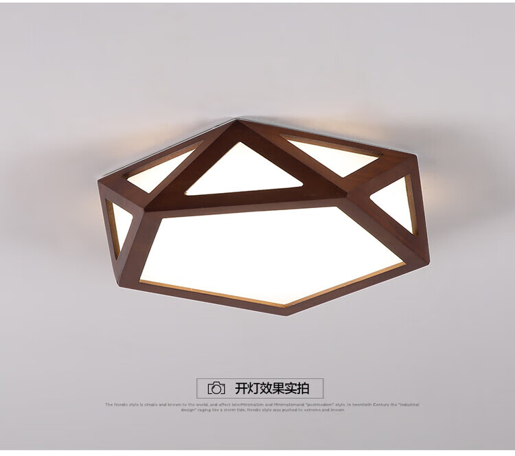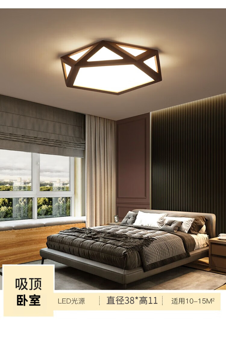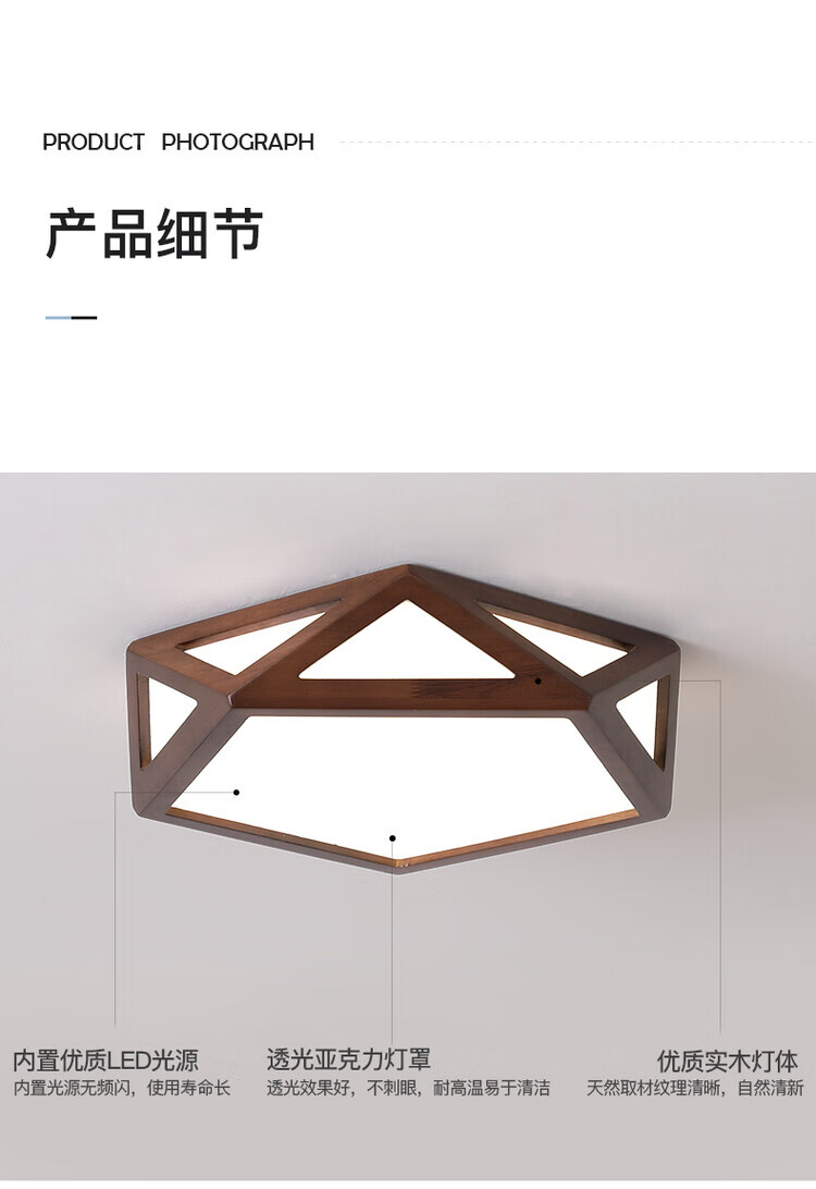 大自然照明吸顶灯卧室灯中古风现代胡桃木色实木几何房间主卧灯【不议价】 钻石全镂空-胡桃色-38cm 三色变光