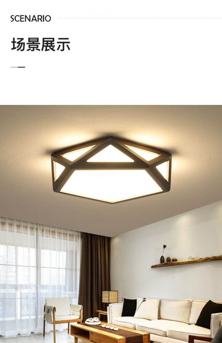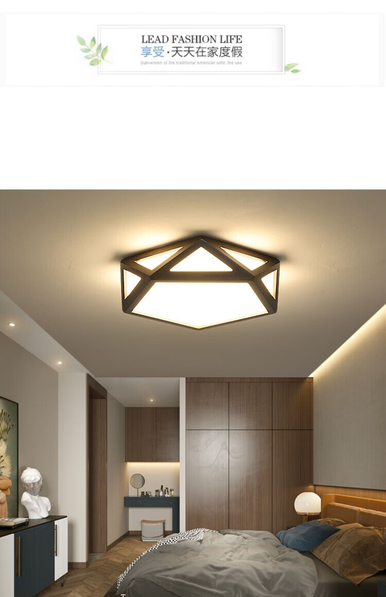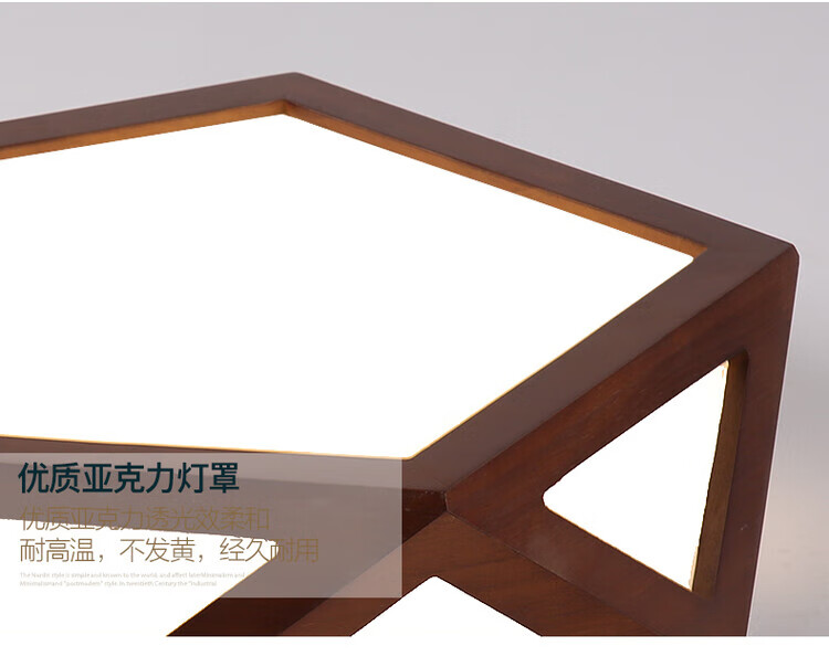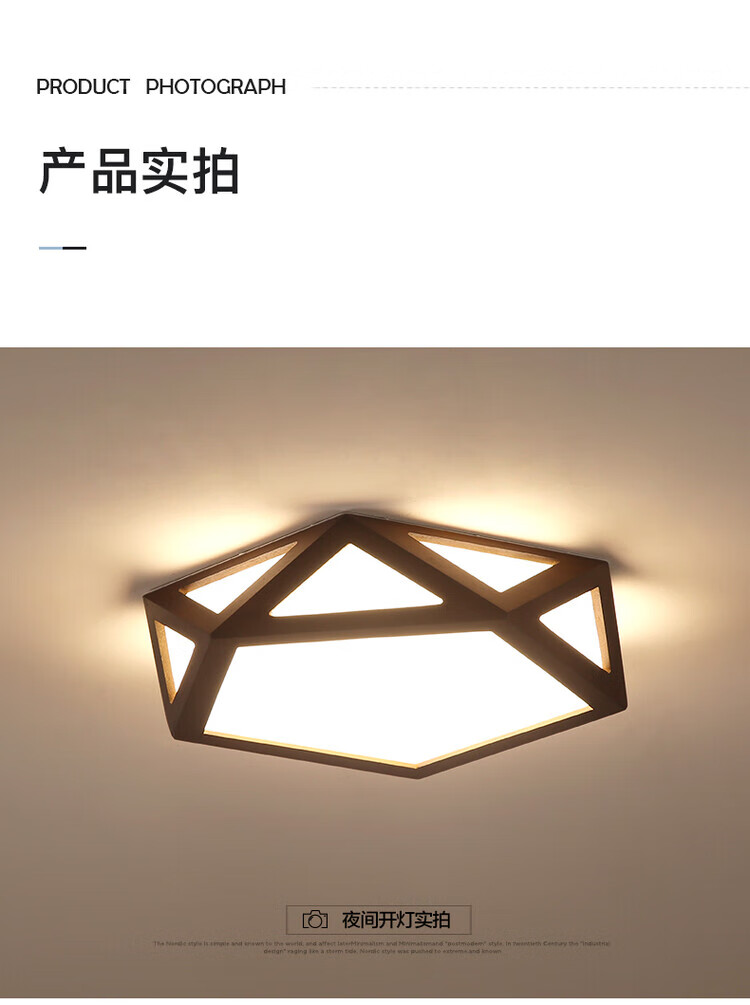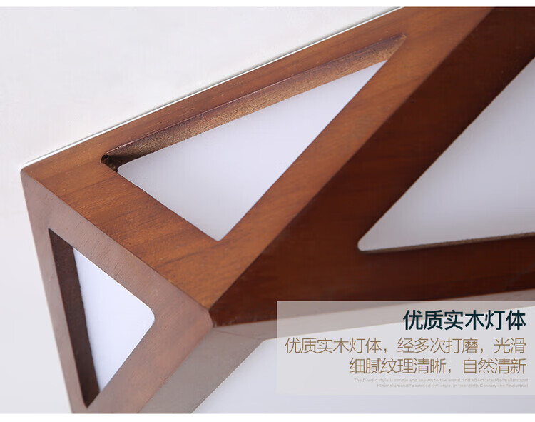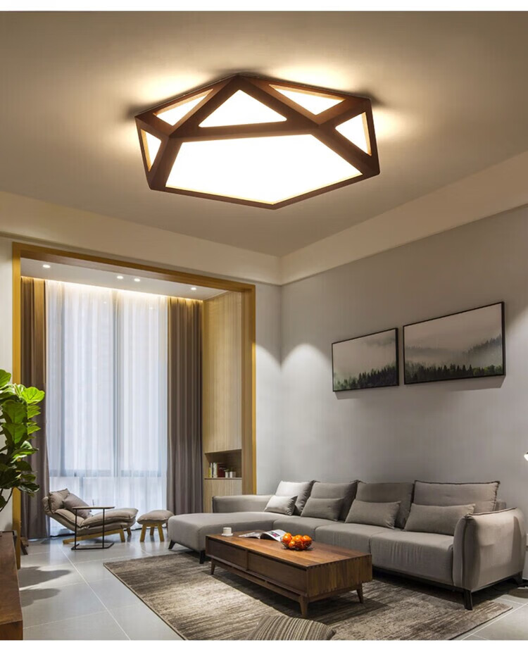 大自然照明吸顶灯卧室灯中古风现代胡桃木色实木几何房间主卧灯【不议价】 钻石全镂空-胡桃色-38cm 三色变光