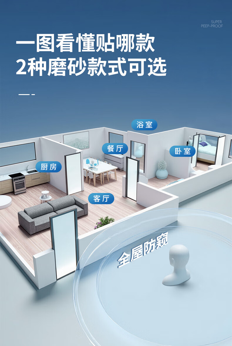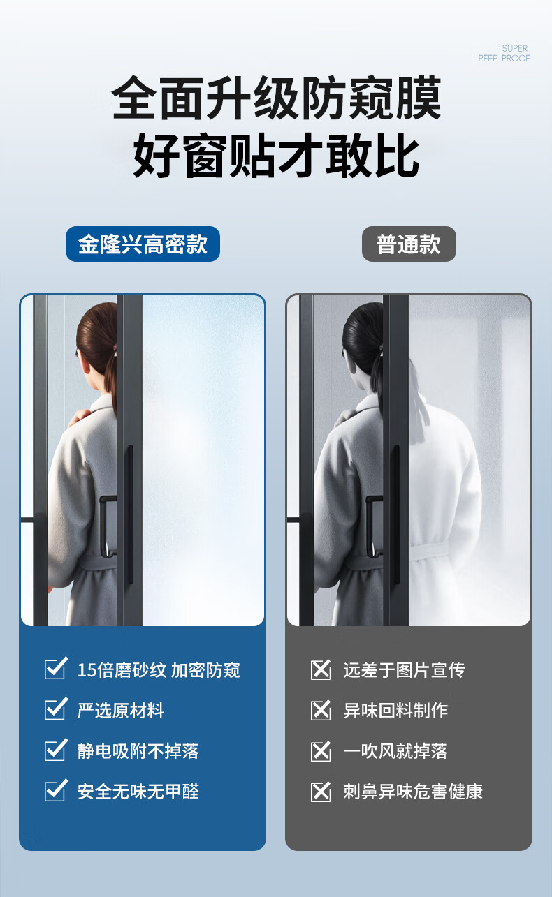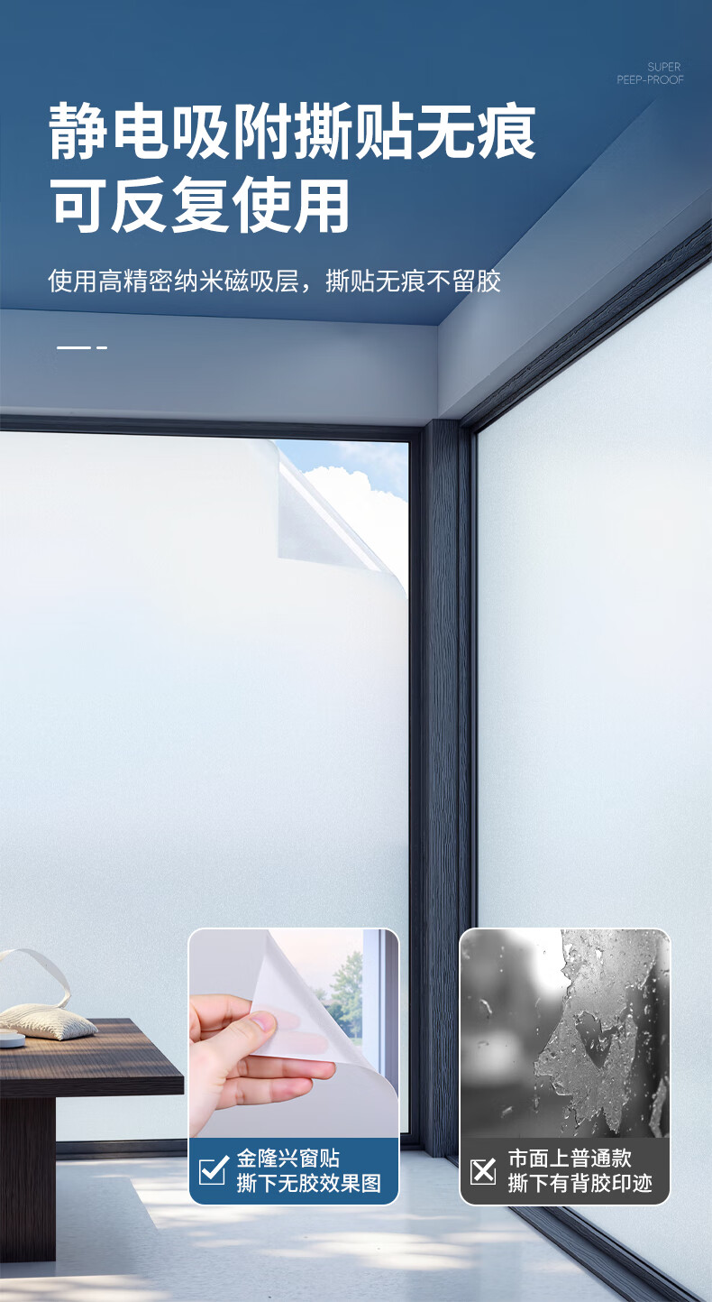 金隆兴磨砂玻璃隐私贴膜窗户防窥贴膜卫生间浴室厕所透光不透明0.6*2米