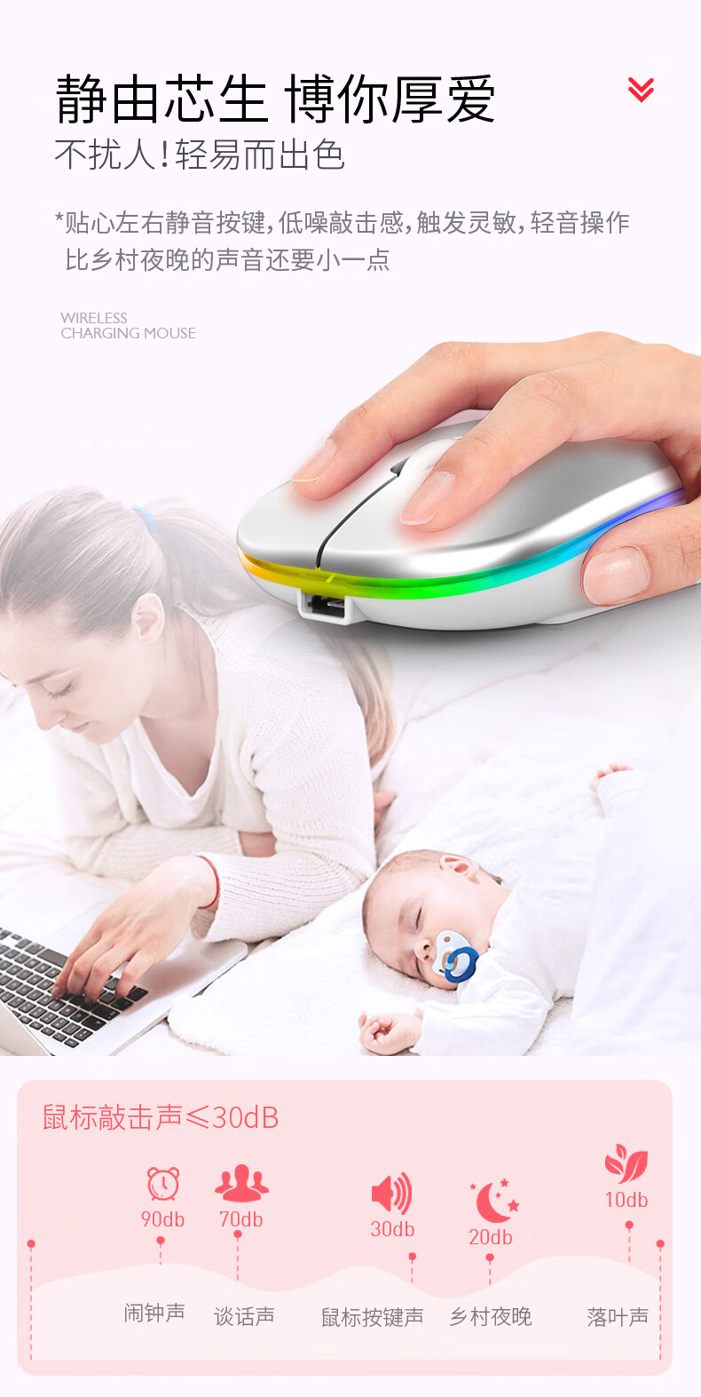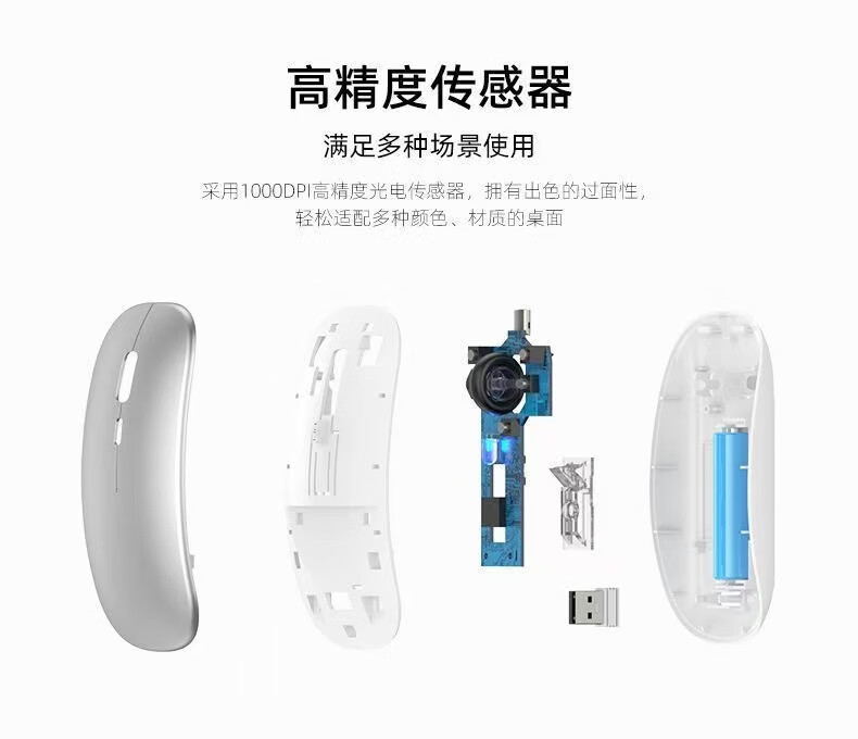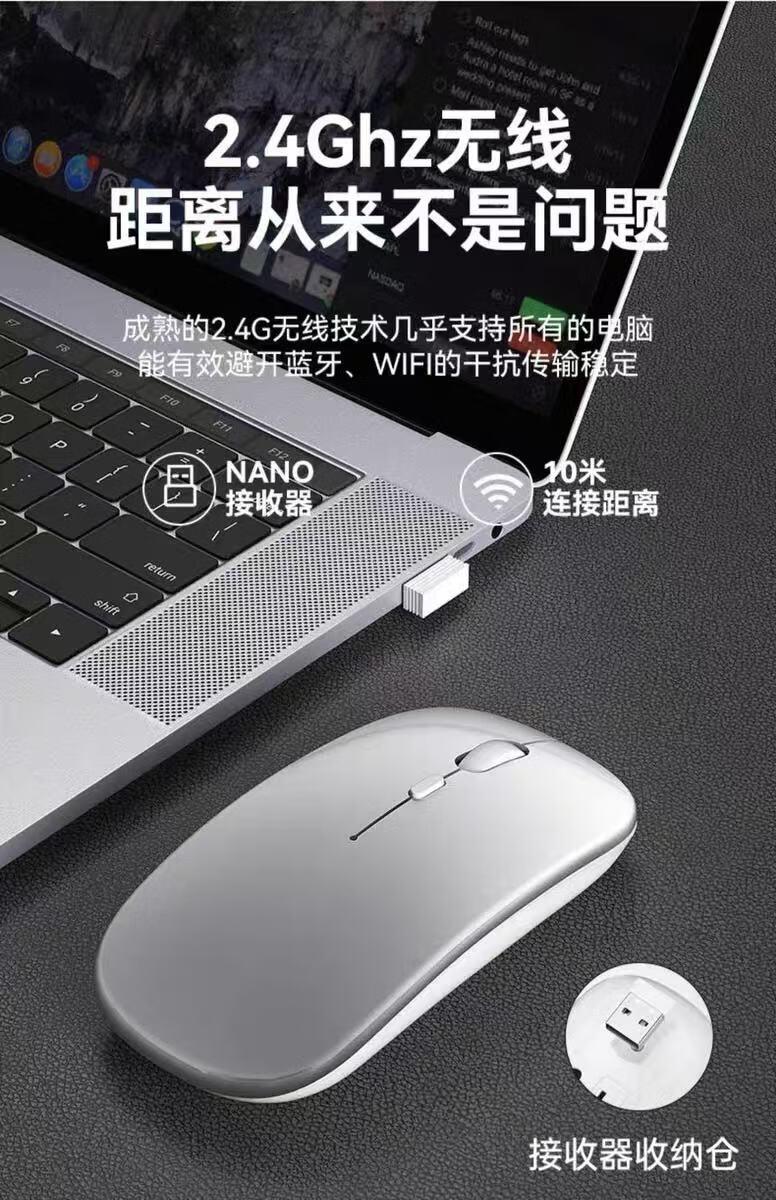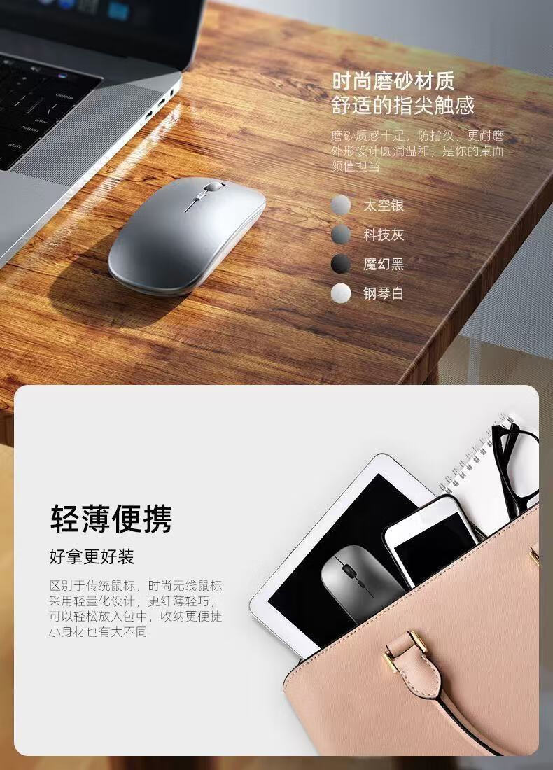 【京东物流】无线鼠标办公笔记本电脑通用游戏云电脑可选蓝牙充电电池鼠标 皎月银