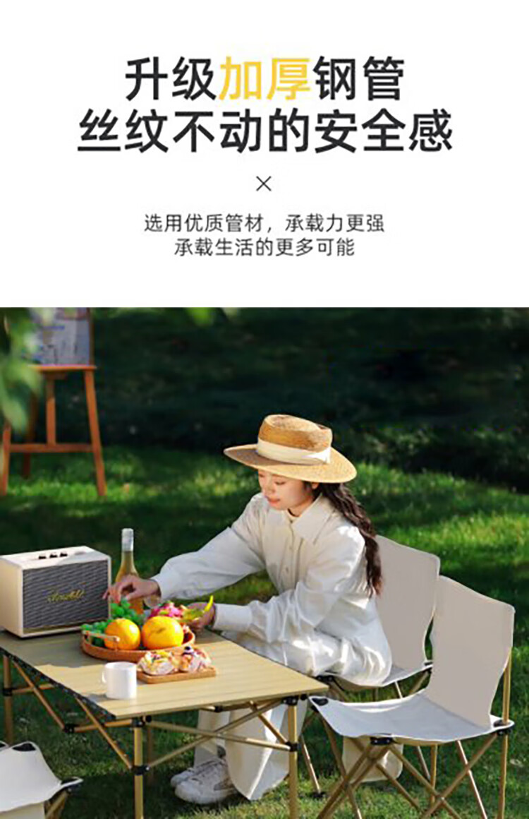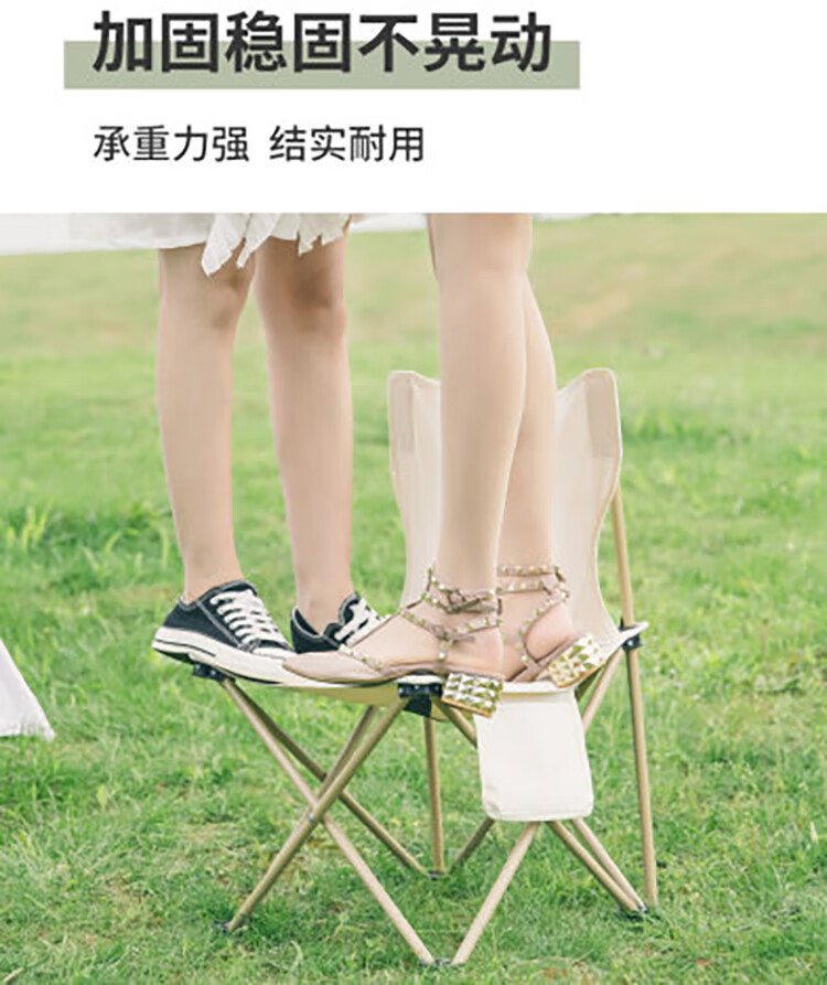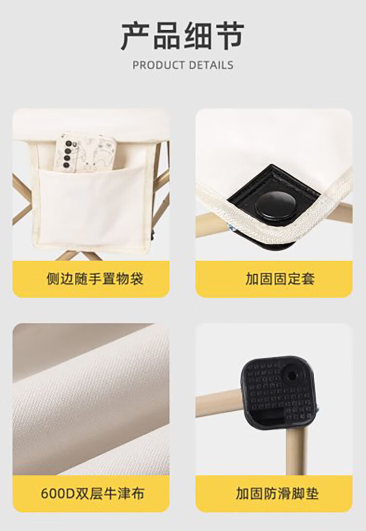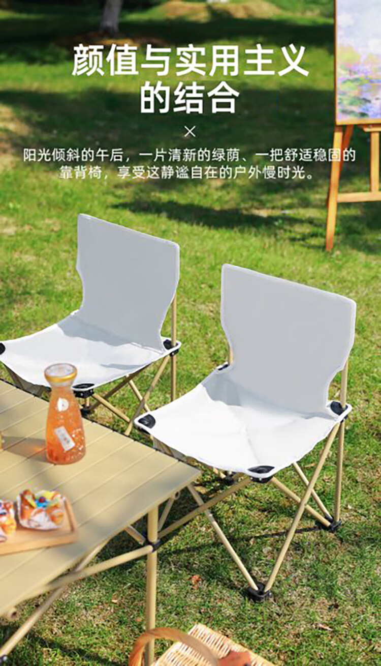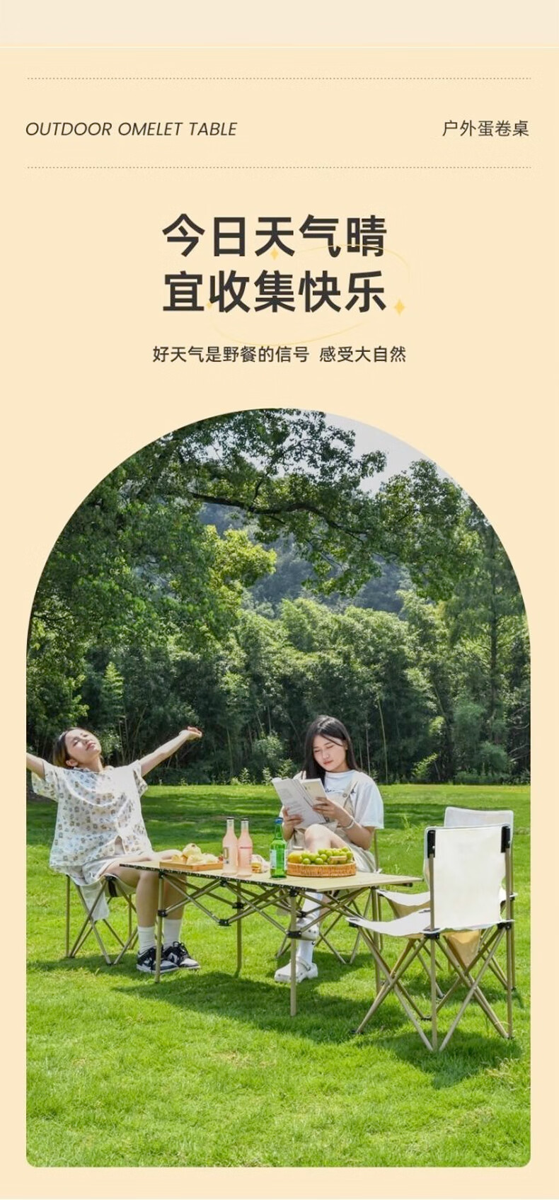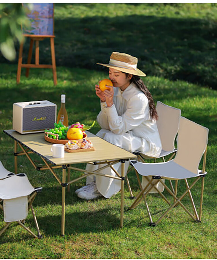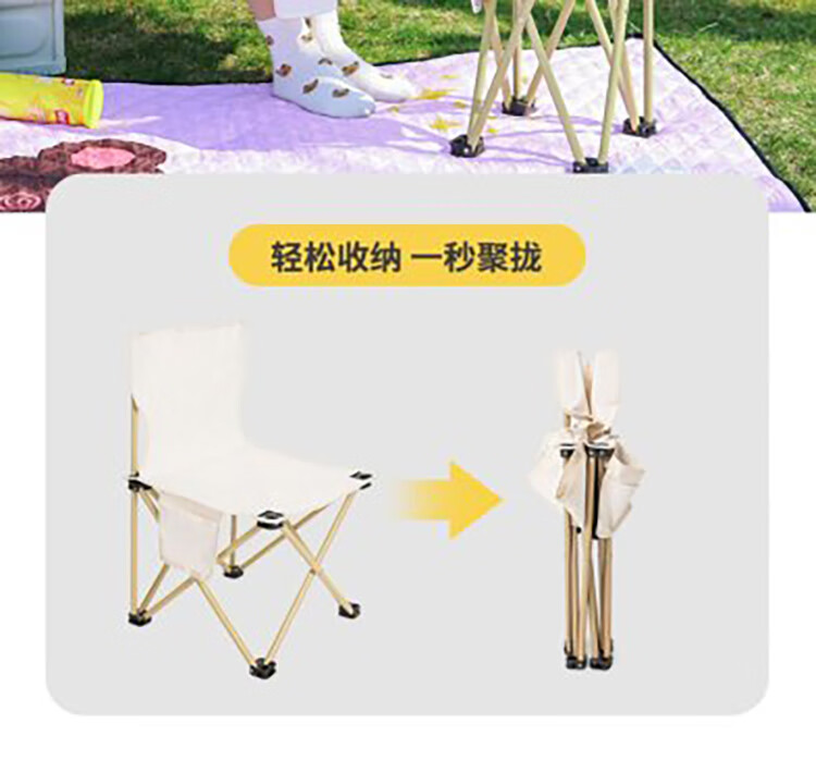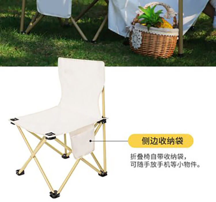 户外折叠桌椅便携式蛋卷桌野餐烧烤露营桌折叠椅 米白色-小号折叠椅【1把装】
