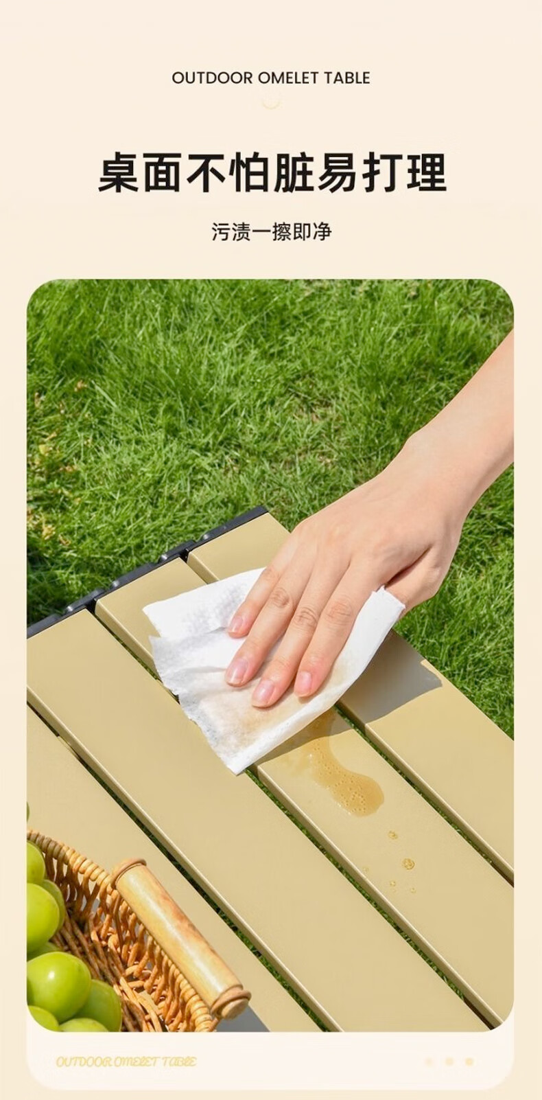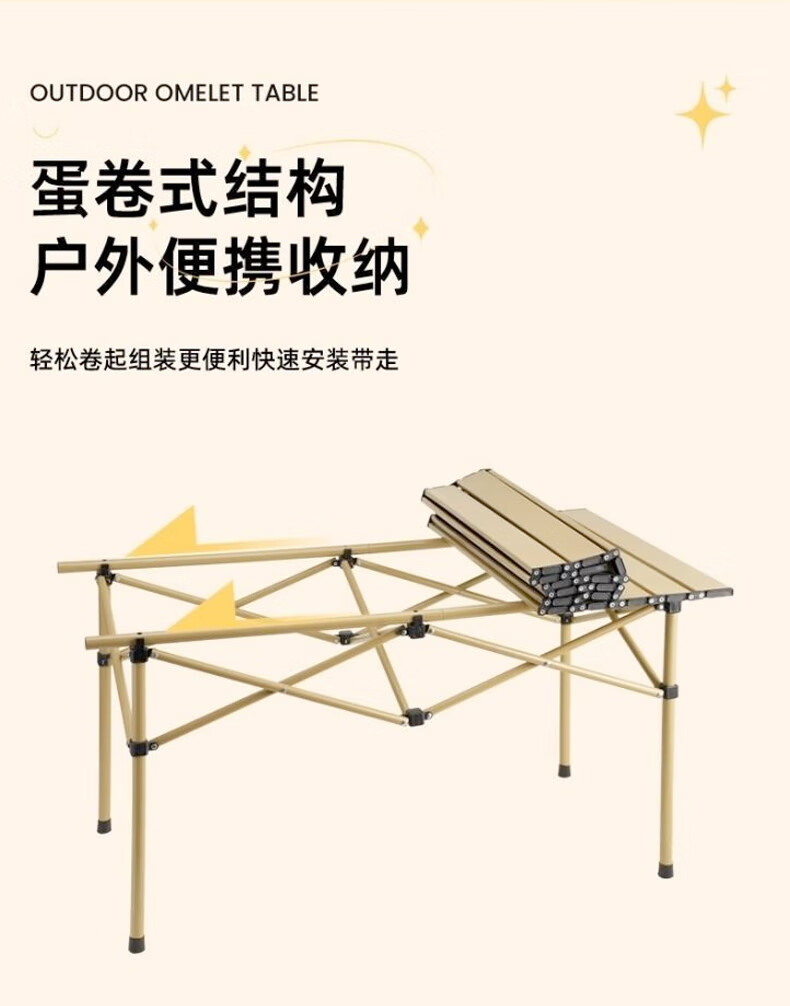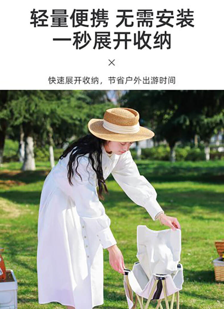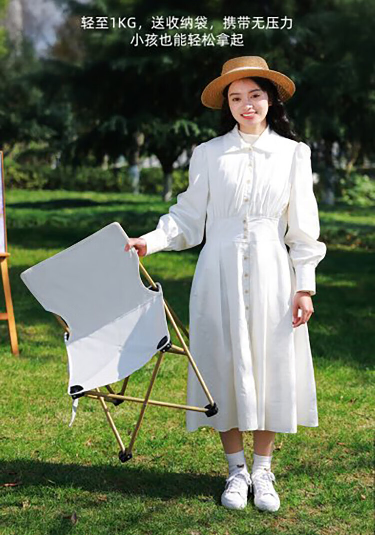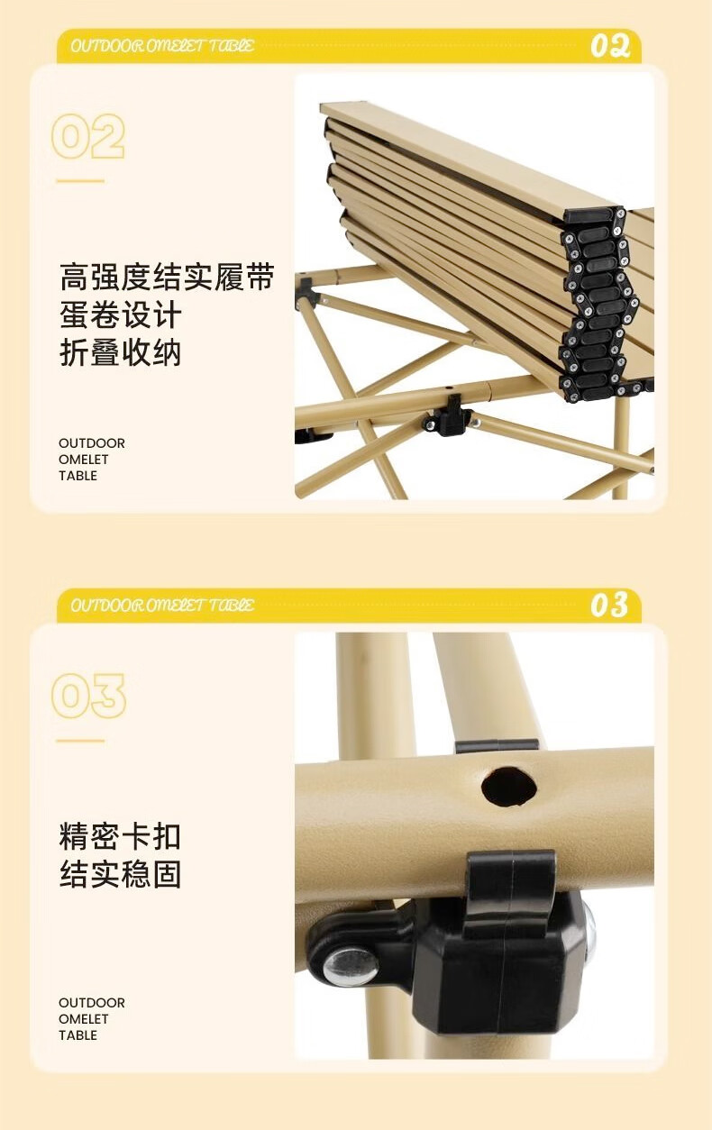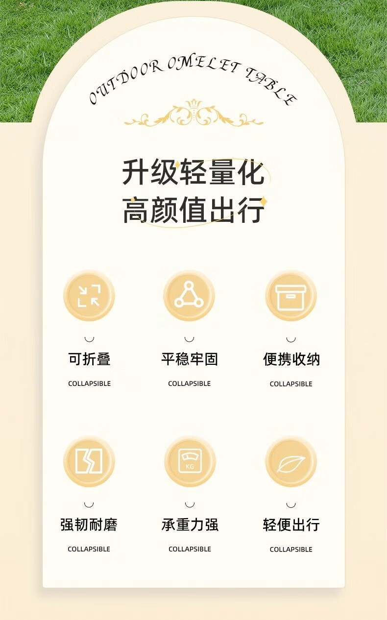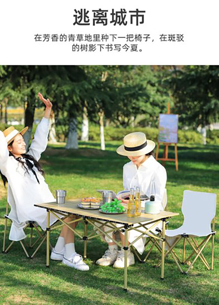 户外折叠桌椅便携式蛋卷桌野餐烧烤露营桌折叠椅 米白色-小号折叠椅【1把装】