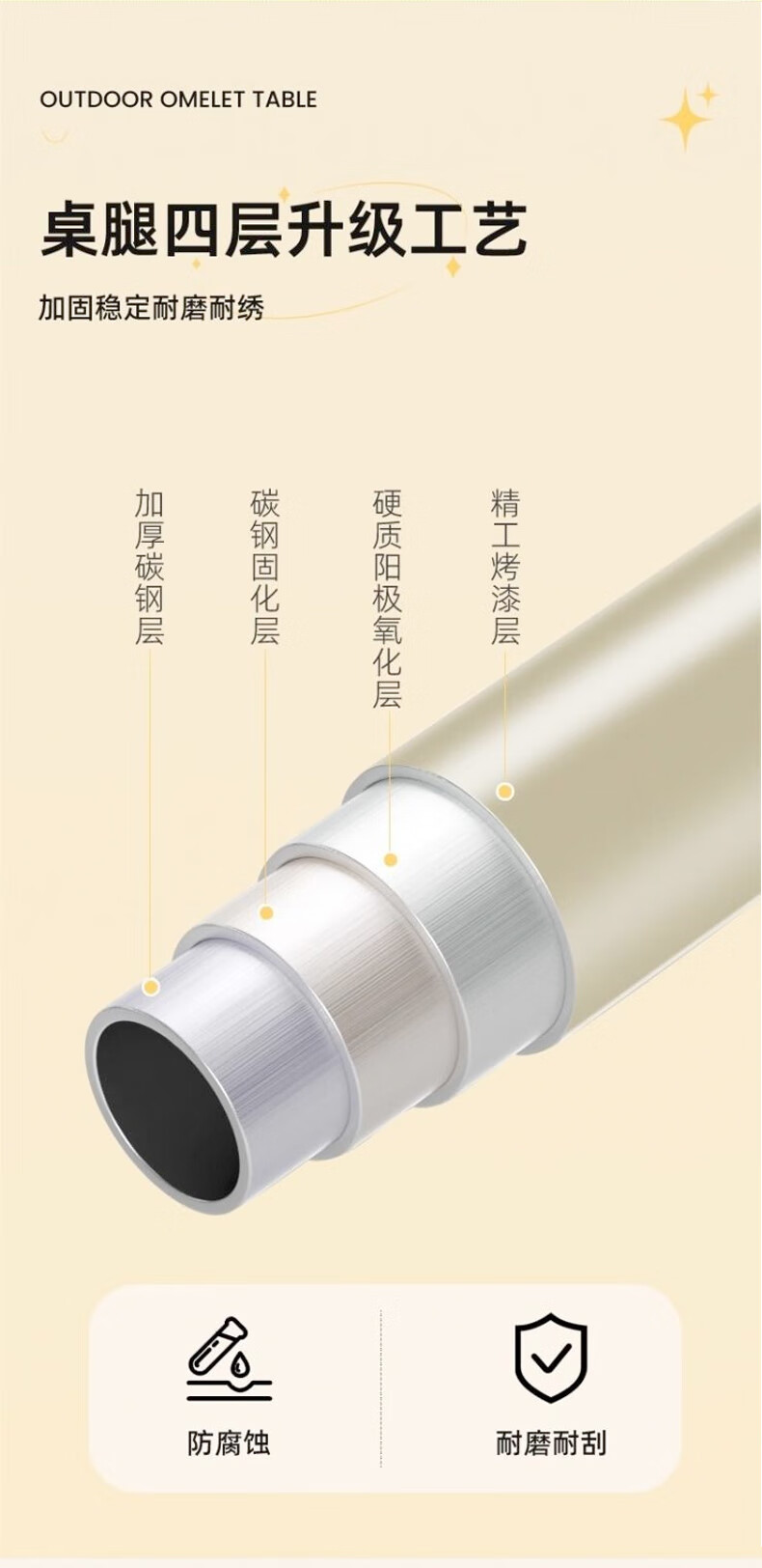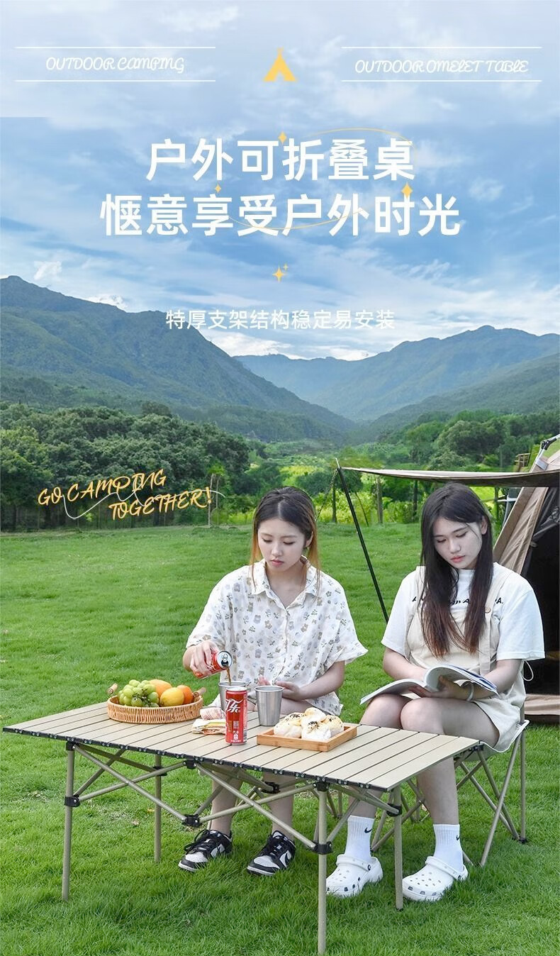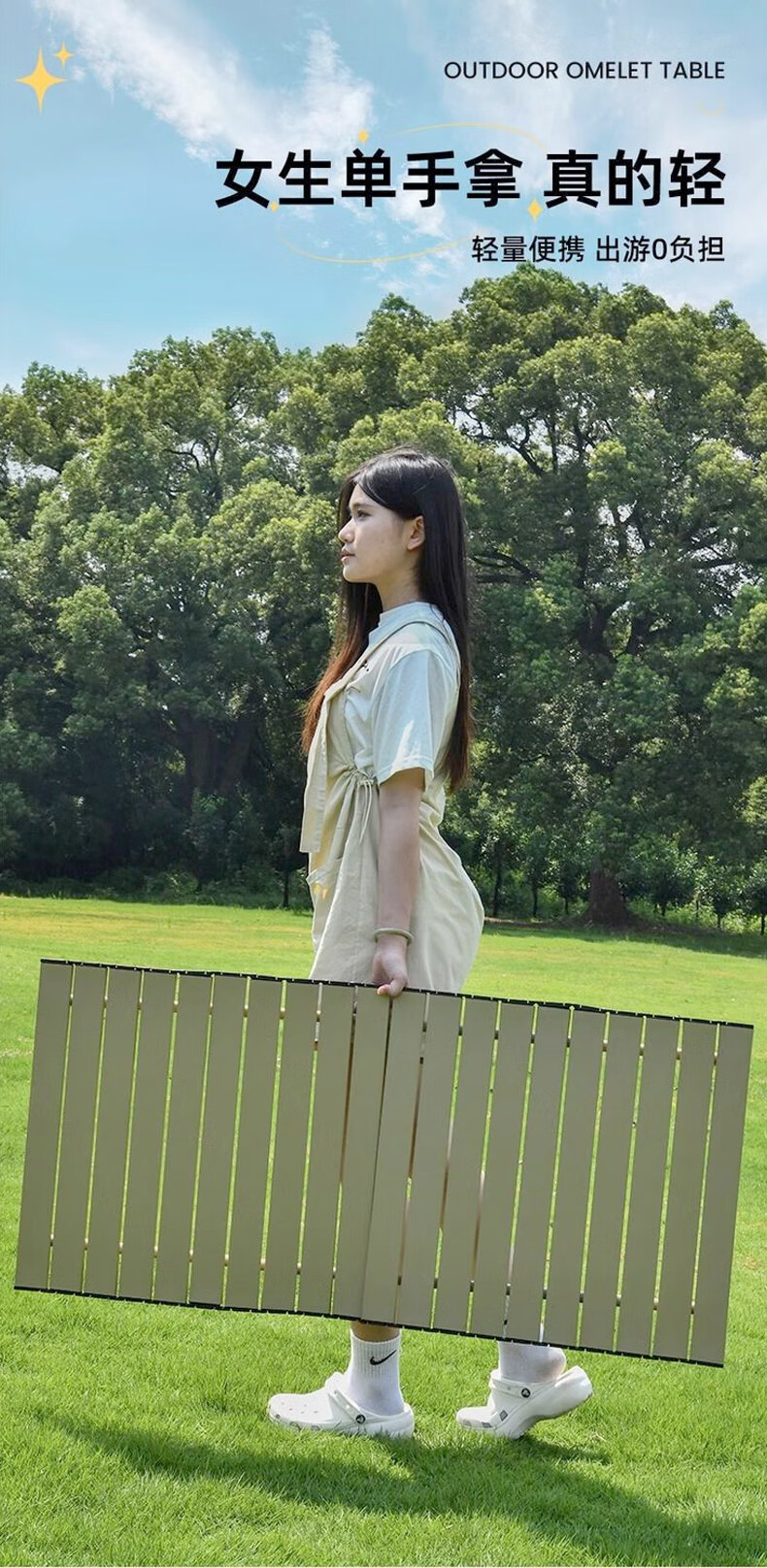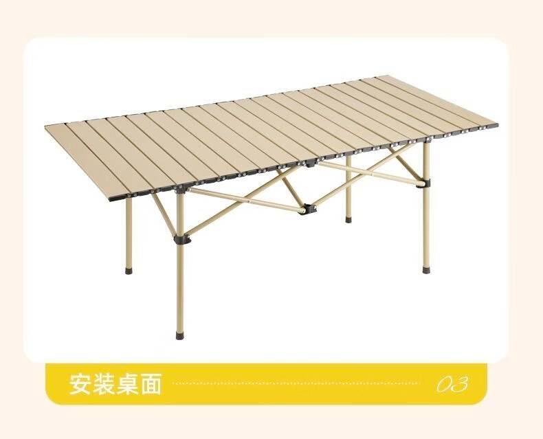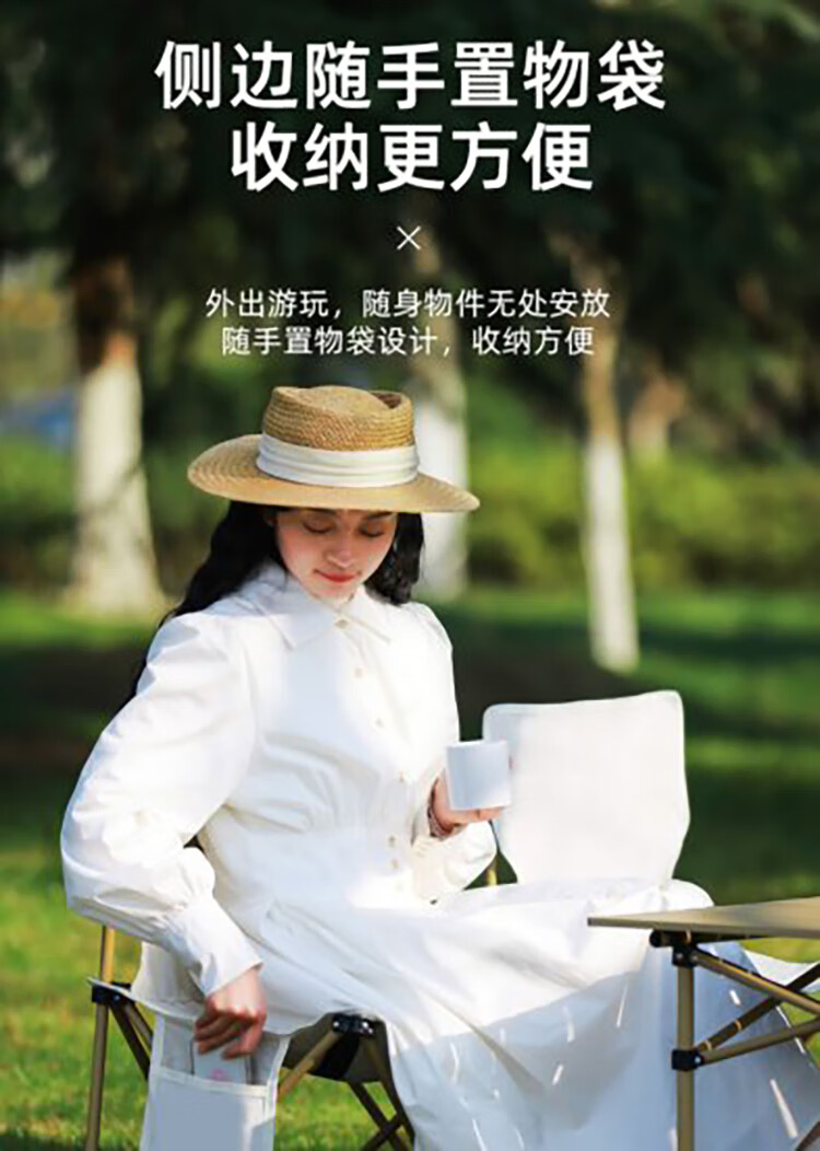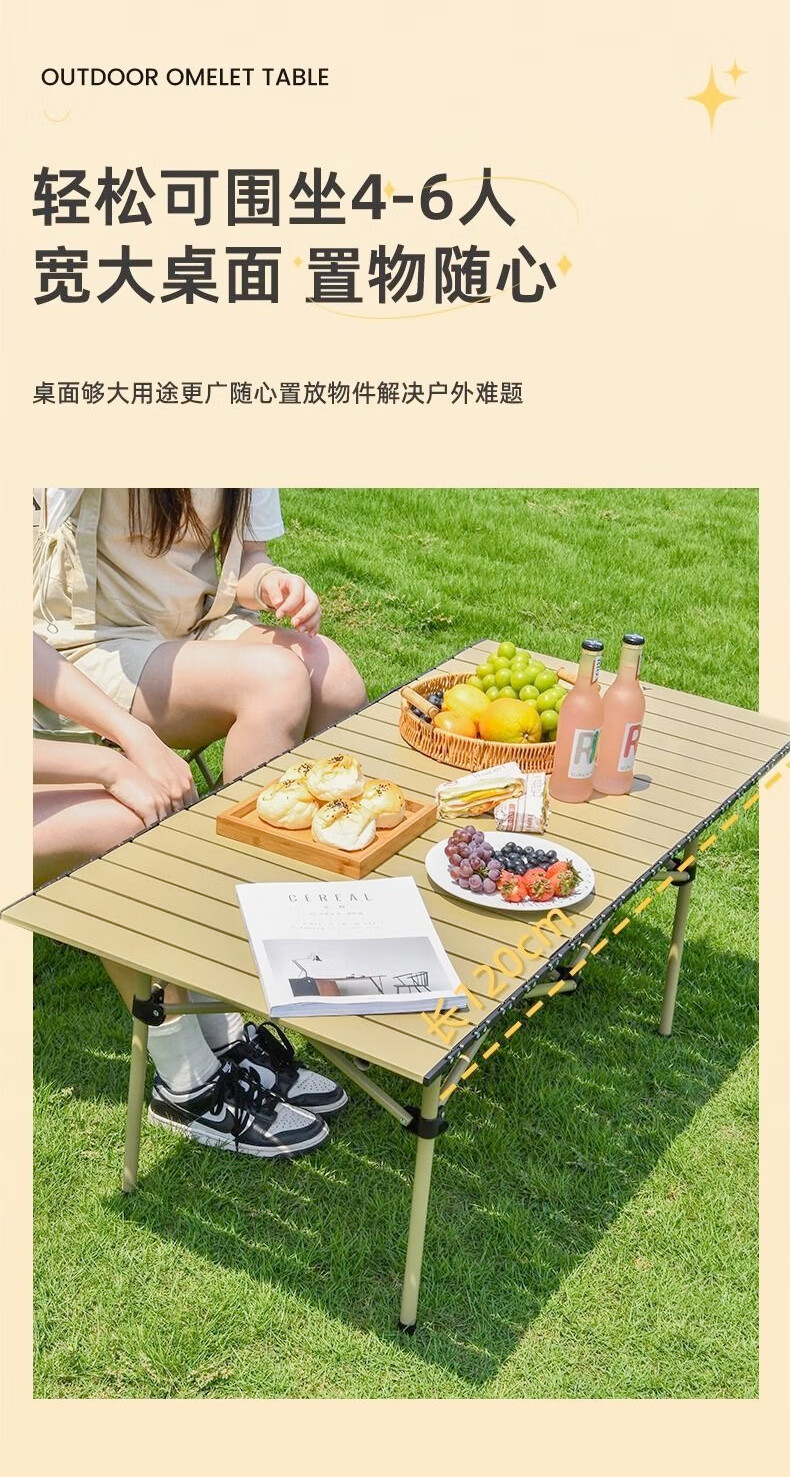 户外折叠桌椅便携式蛋卷桌野餐烧烤露营桌折叠椅 米白色-小号折叠椅【1把装】